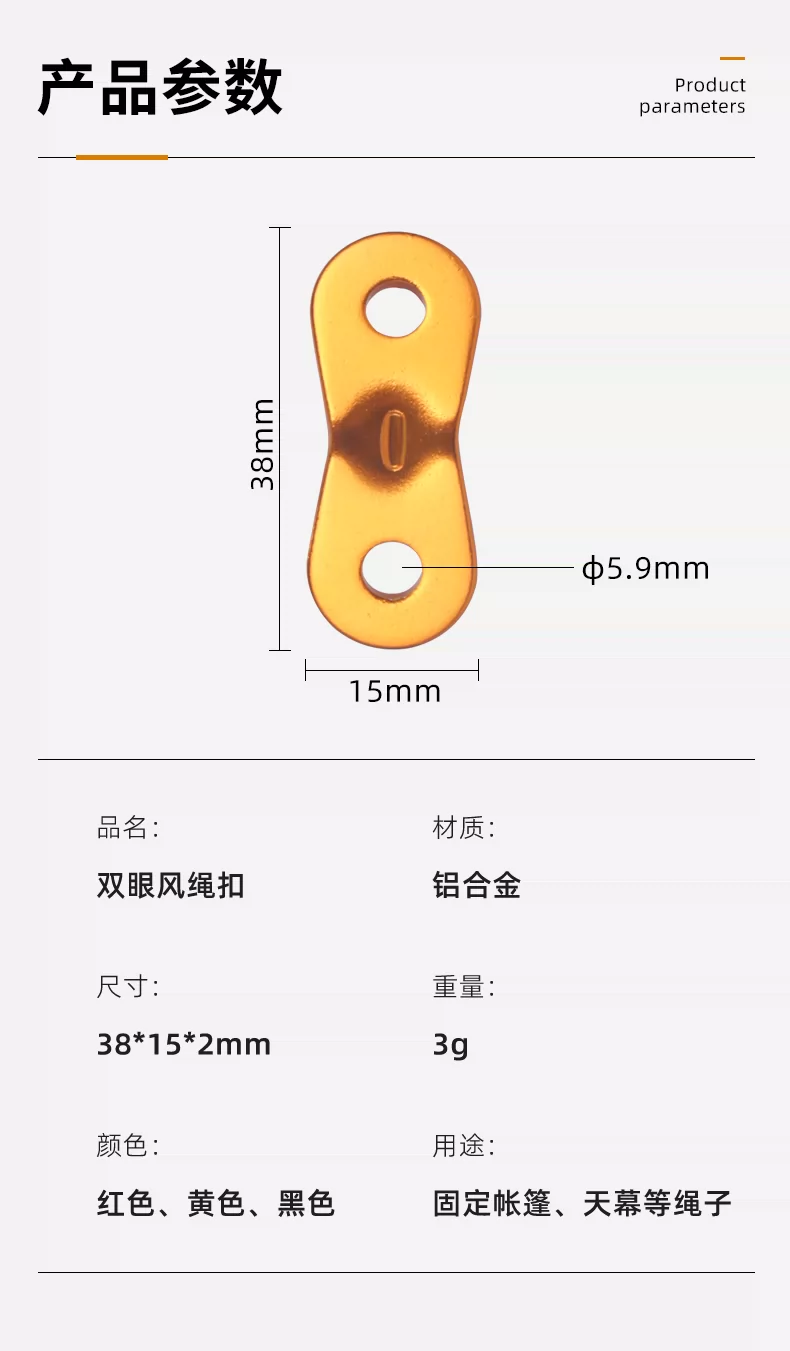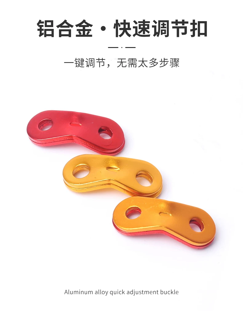 - Khóa điều chỉnh chiều dài dây gió bằng hợp kim nhôm, khóa chống trượt cho dây dù mái hiên lều ngoài trời, khóa đôi mắt, khóa cố định dây dù