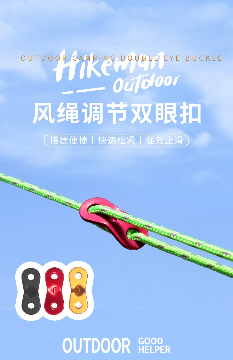 Khóa điều chỉnh chiều dài dây gió bằng hợp kim nhôm, khóa chống trượt cho dây dù mái hiên lều ngoài trời, khóa đôi mắt, khóa cố định dây dù