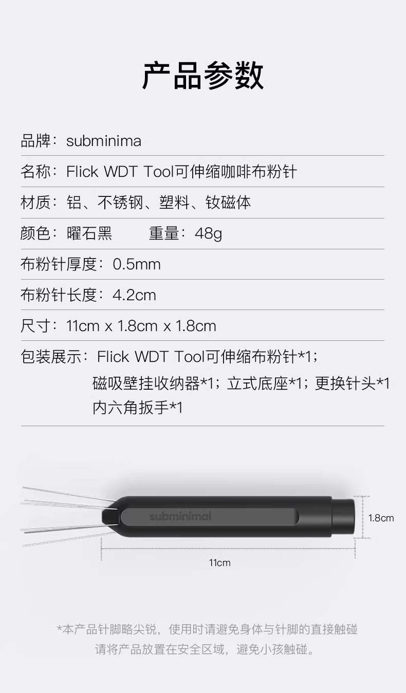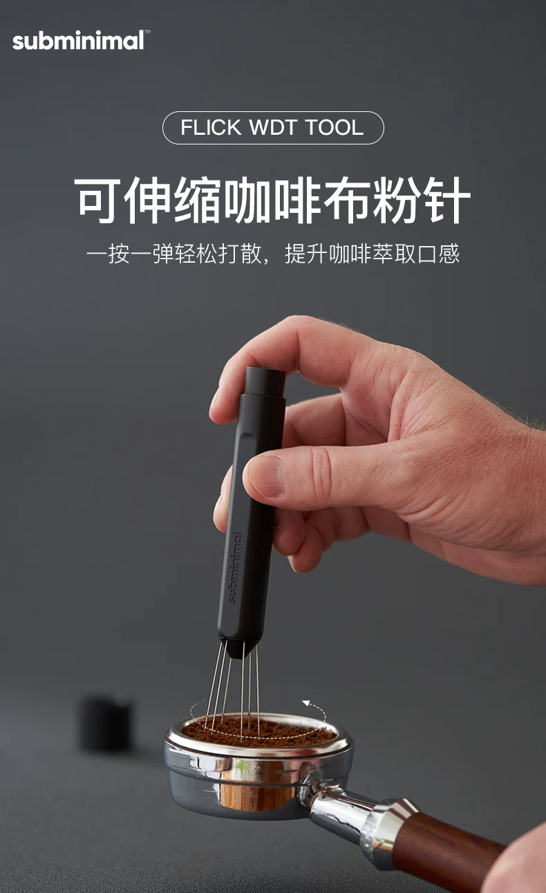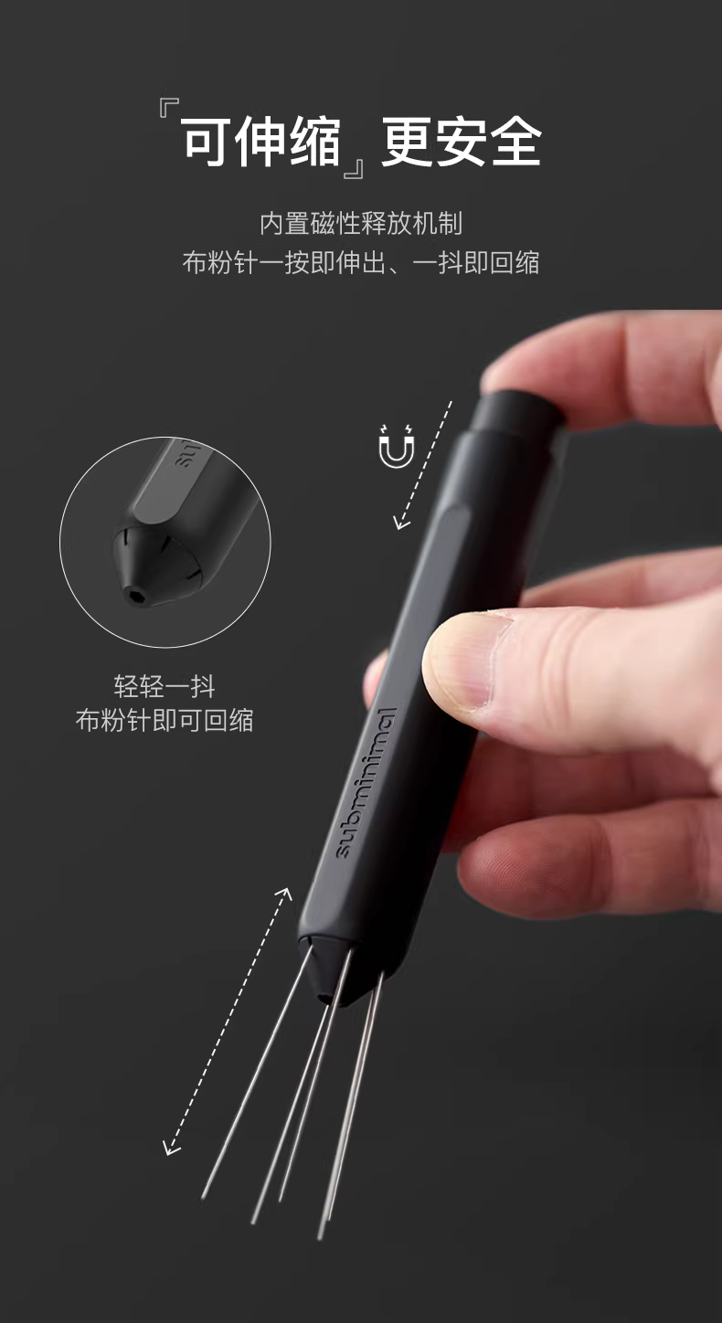 Kim phân phối bột có thể thu vào tối thiểu dành cho cà phê pha bằng tay kiểu espresso, phá vỡ các cục bột và phân phối bột đều nhau.