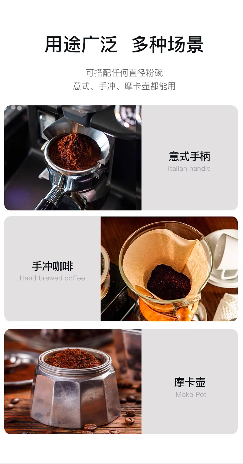 - Kim phân phối bột có thể thu vào tối thiểu dành cho cà phê pha bằng tay kiểu espresso, phá vỡ các cục bột và phân phối bột đều nhau.