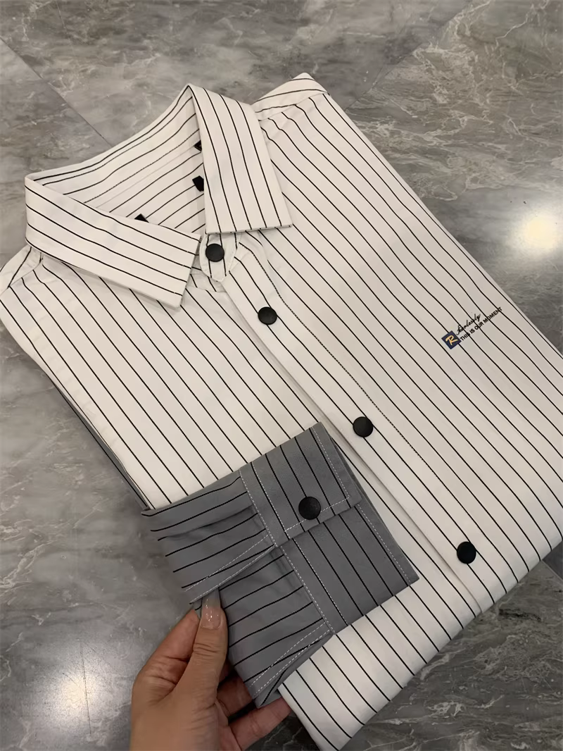 - Kỹ thuật phối màu Don Quixote! 100% cotton! Xu hướng áo sơ mi nam mùa hè có cổ, tay dài và tay ngắn, chất liệu có vân.
