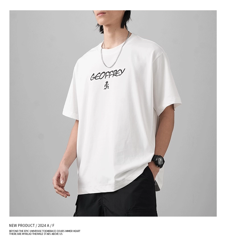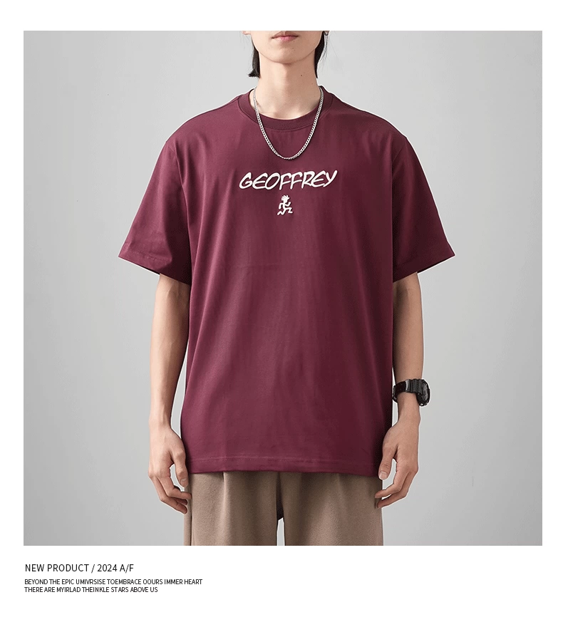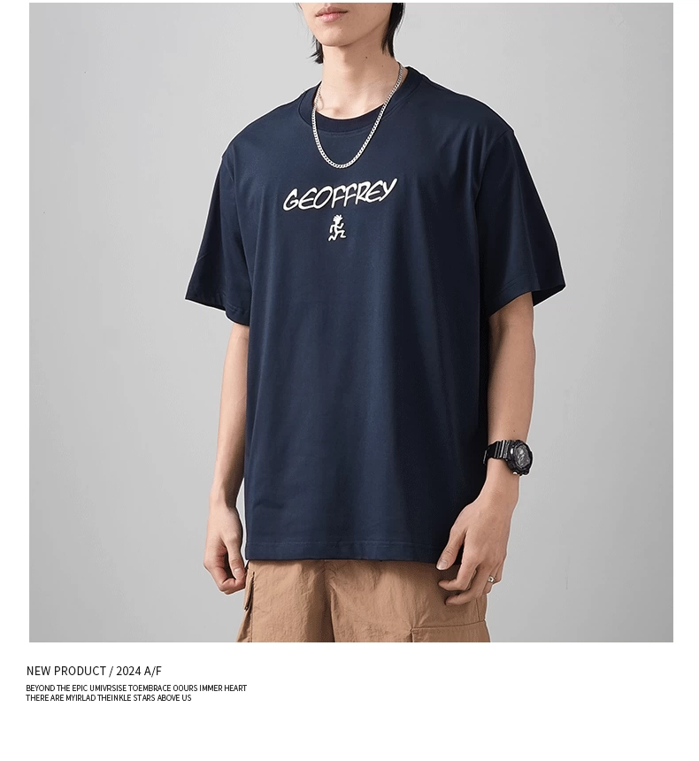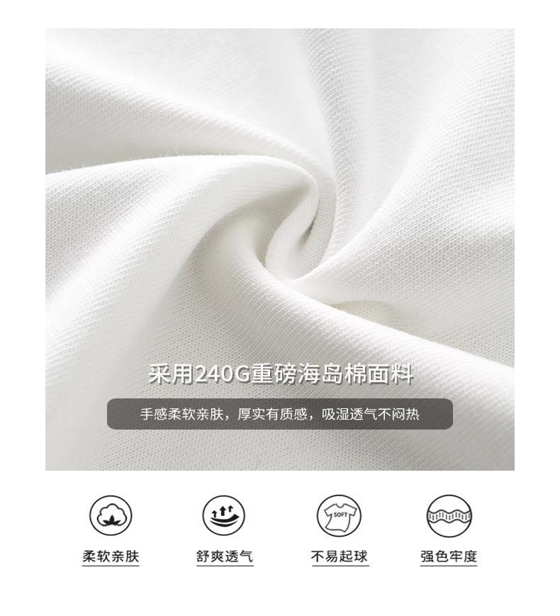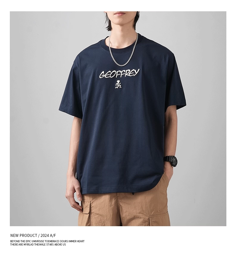 【Little Savage Embroidery】Áo thun ngắn tay hạng nặng 240G dành cho nam, Áo thun nửa tay cổ tròn bằng cotton Summer Island