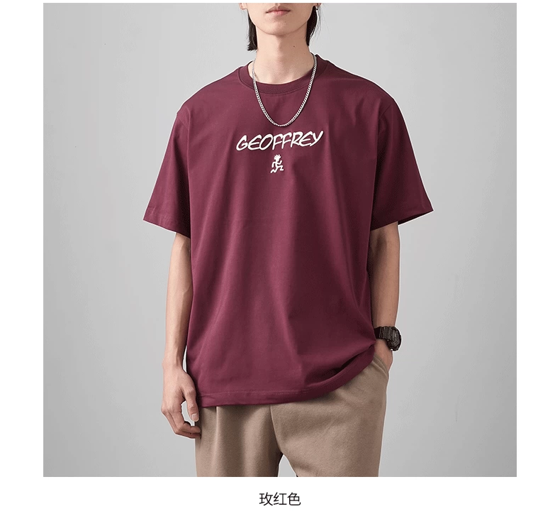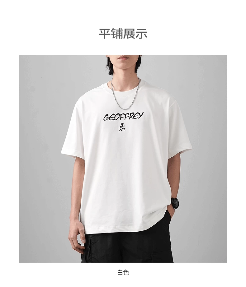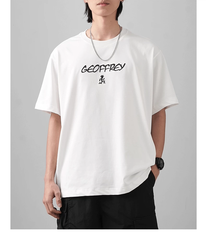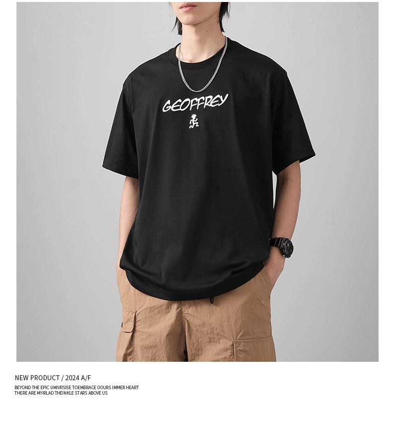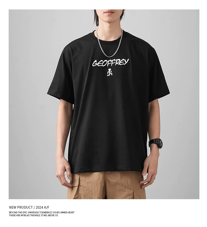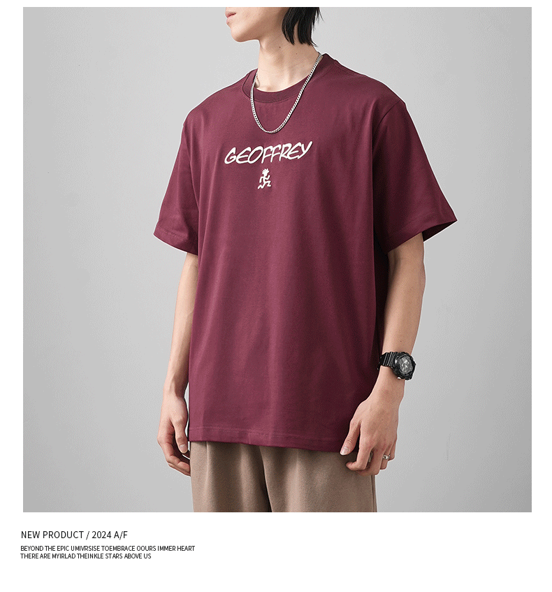 【Little Savage Embroidery】Áo thun ngắn tay hạng nặng 240G dành cho nam, Áo thun nửa tay cổ tròn bằng cotton Summer Island
