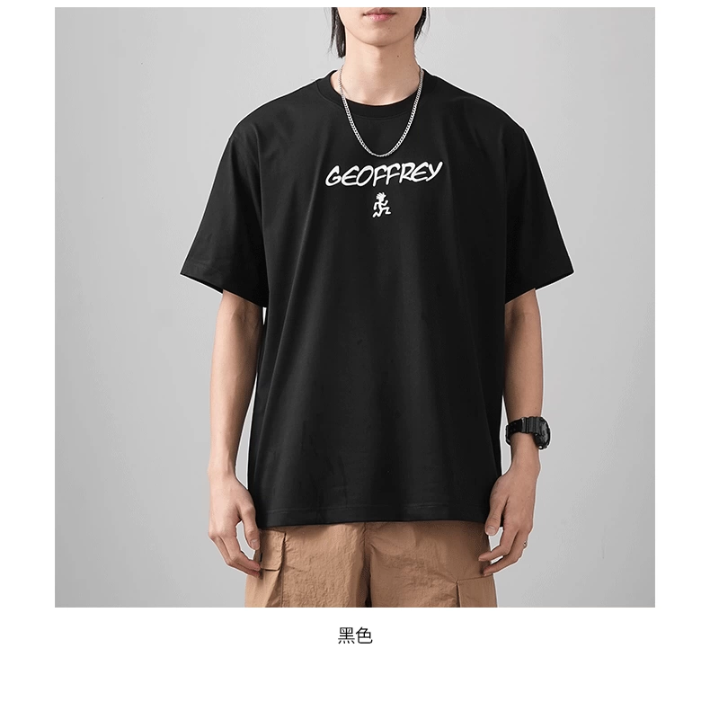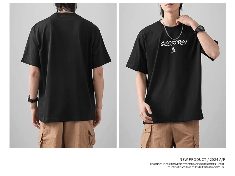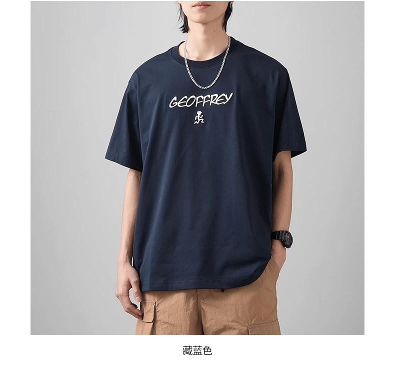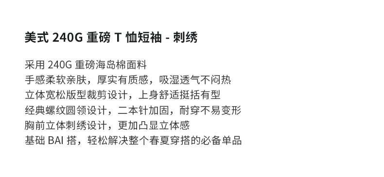 - 【Little Savage Embroidery】Áo thun ngắn tay hạng nặng 240G dành cho nam, Áo thun nửa tay cổ tròn bằng cotton Summer Island