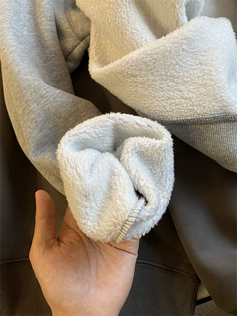 - Lớp lót giả lông cừu siêu bền của Don Quixote! Áo nỉ dáng rộng màu trơn đa năng cơ bản dành cho nam mùa thu đông.
