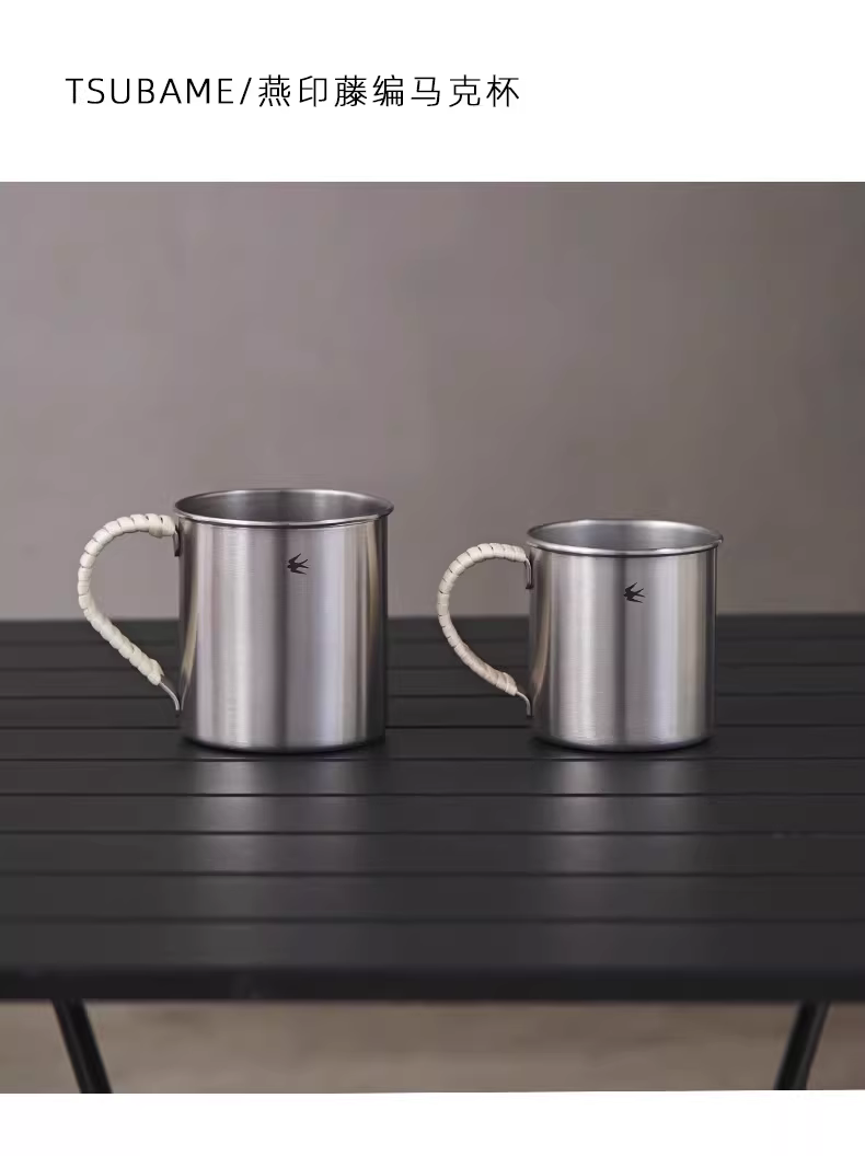 - Ly nước bằng thép không gỉ kiểu Nhật Bản TSUBAME, chất liệu mây tre đan, dùng ngoài trời, cắm trại, kiểu dáng chim én, dùng uống cà phê