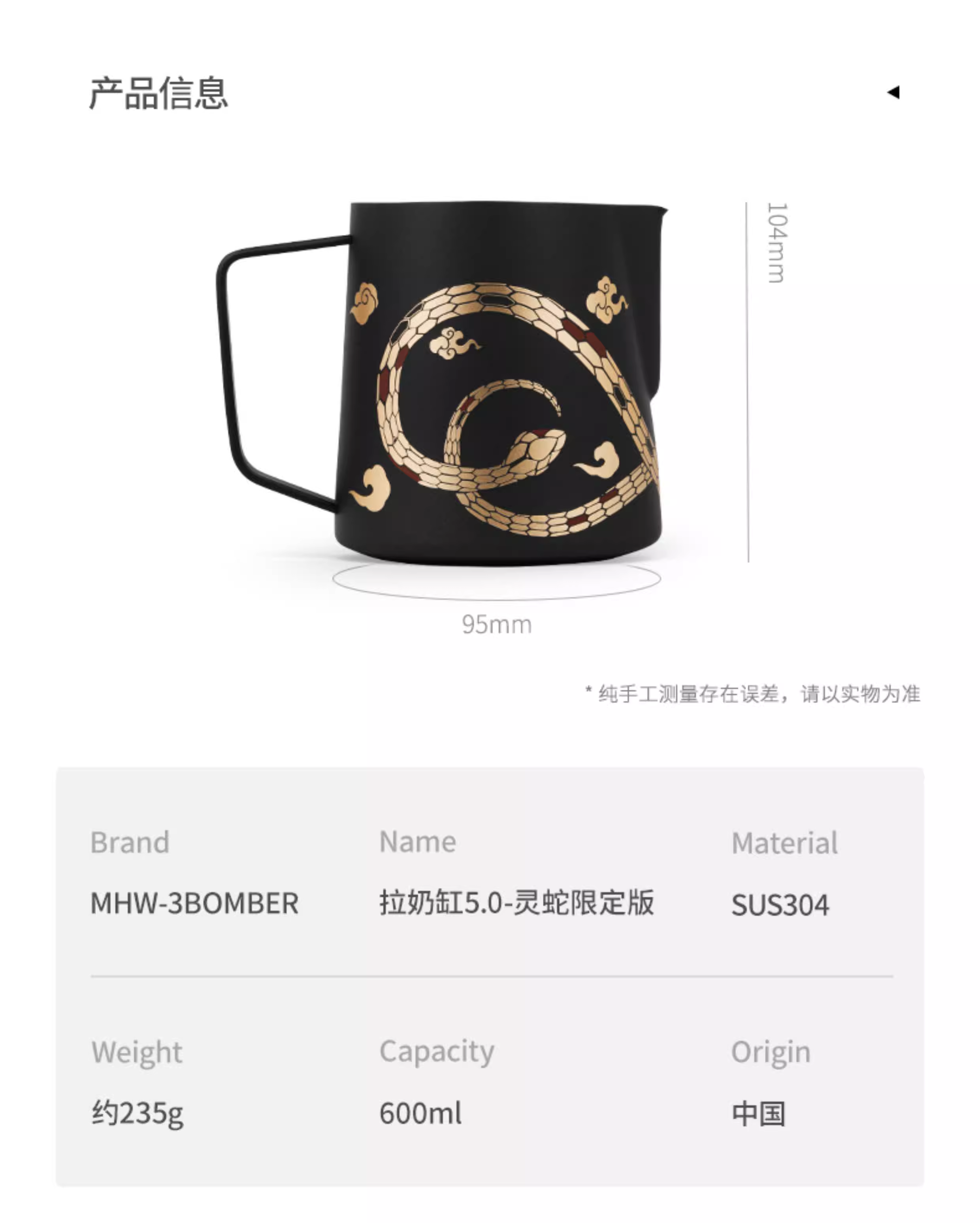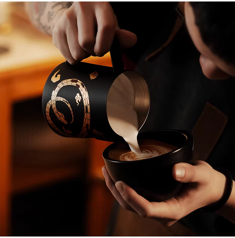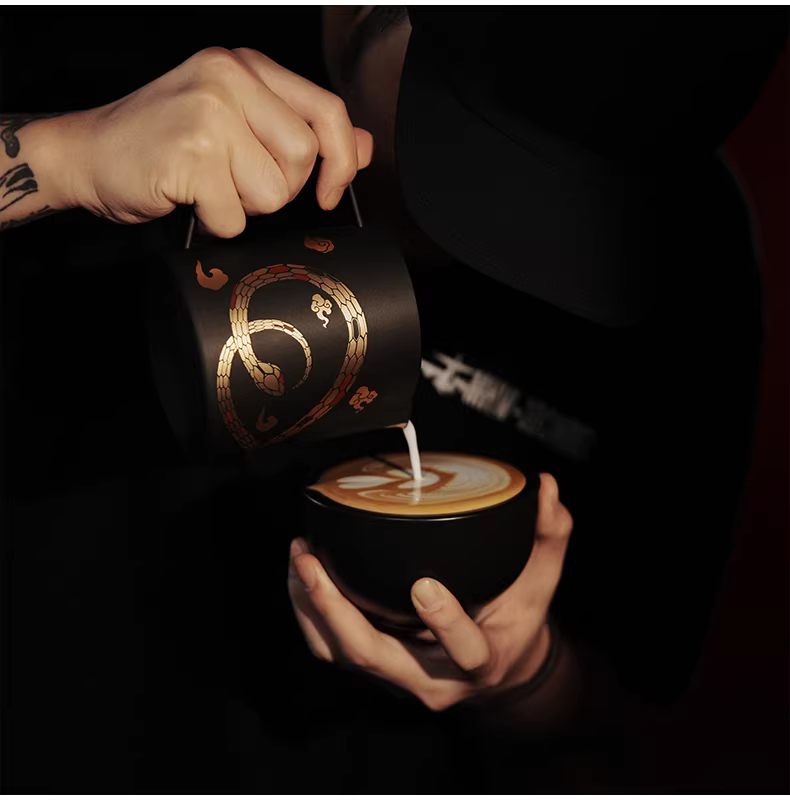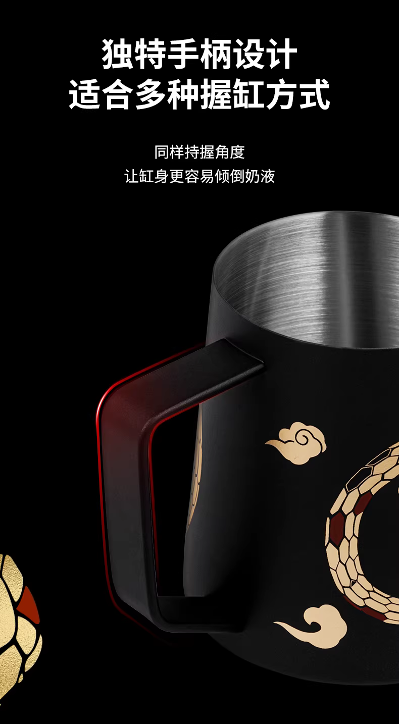 - Ly tạo bọt sữa chuyên nghiệp Year of the Snake Limited Edition | Bomber MHW Latte Art Cylinder Turbo, vòi tạo bọt hình cá sấu, ly tạo bọt sữa nổi 5.0