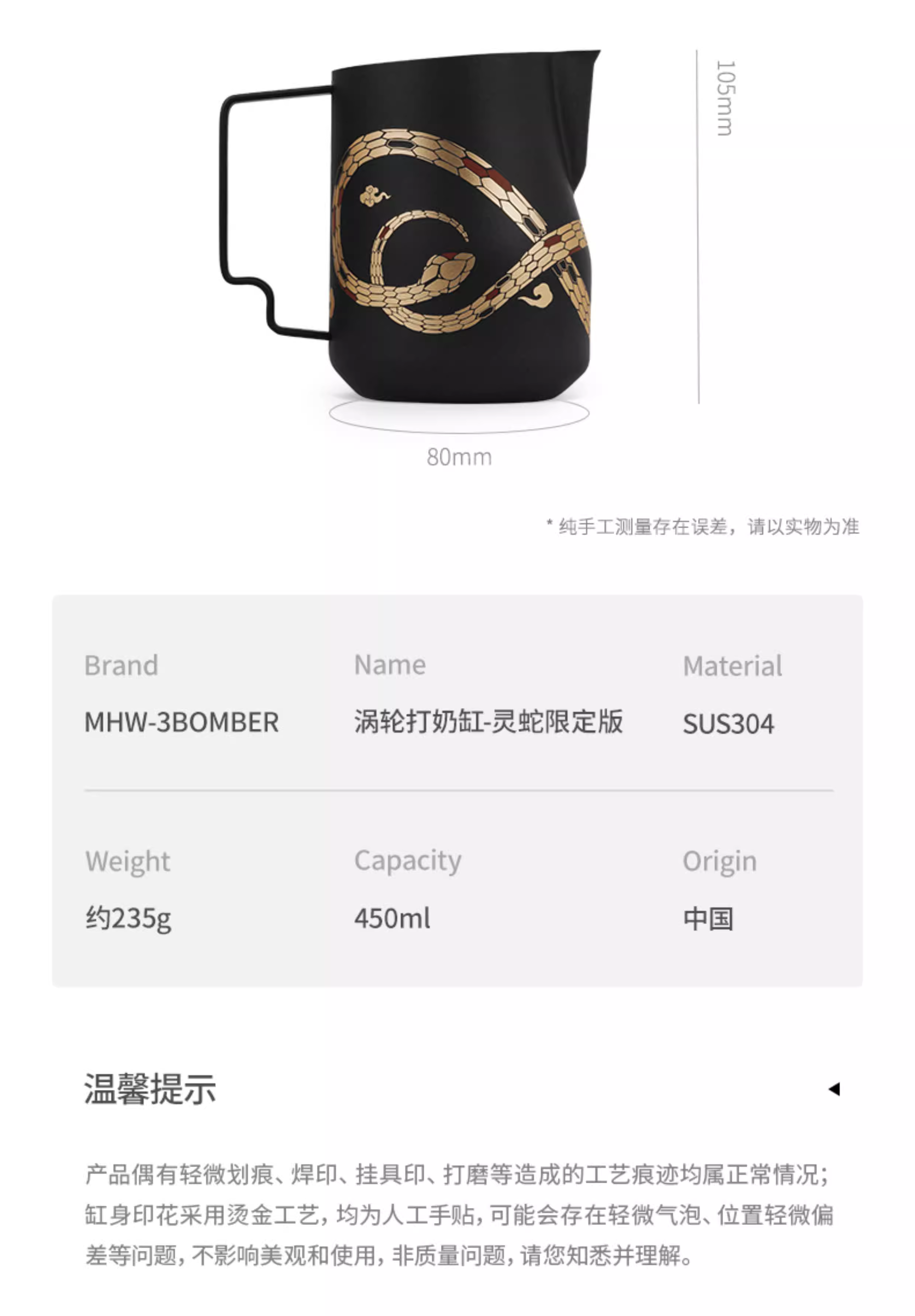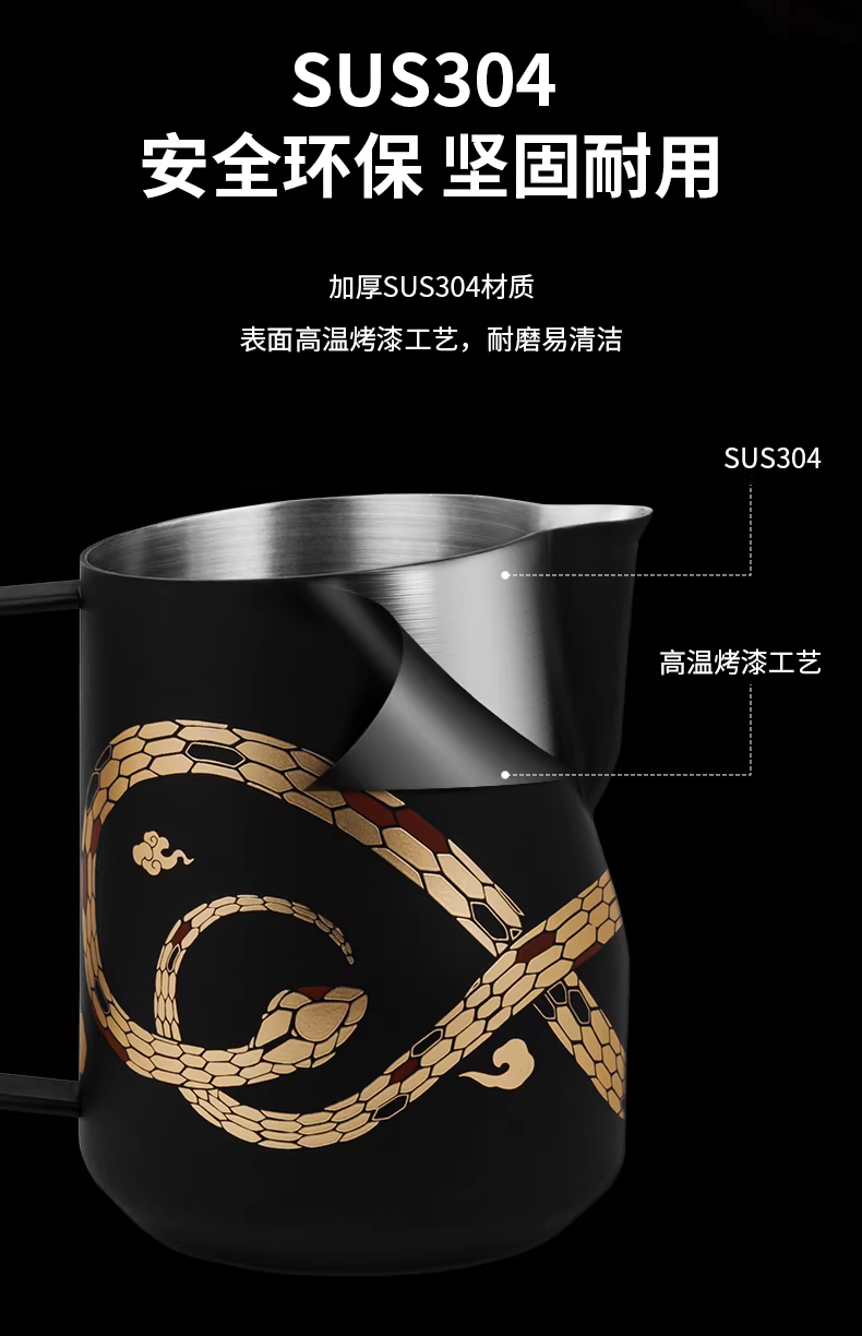 Ly tạo bọt sữa chuyên nghiệp Year of the Snake Limited Edition | Bomber MHW Latte Art Cylinder Turbo, vòi tạo bọt hình cá sấu, ly tạo bọt sữa nổi 5.0