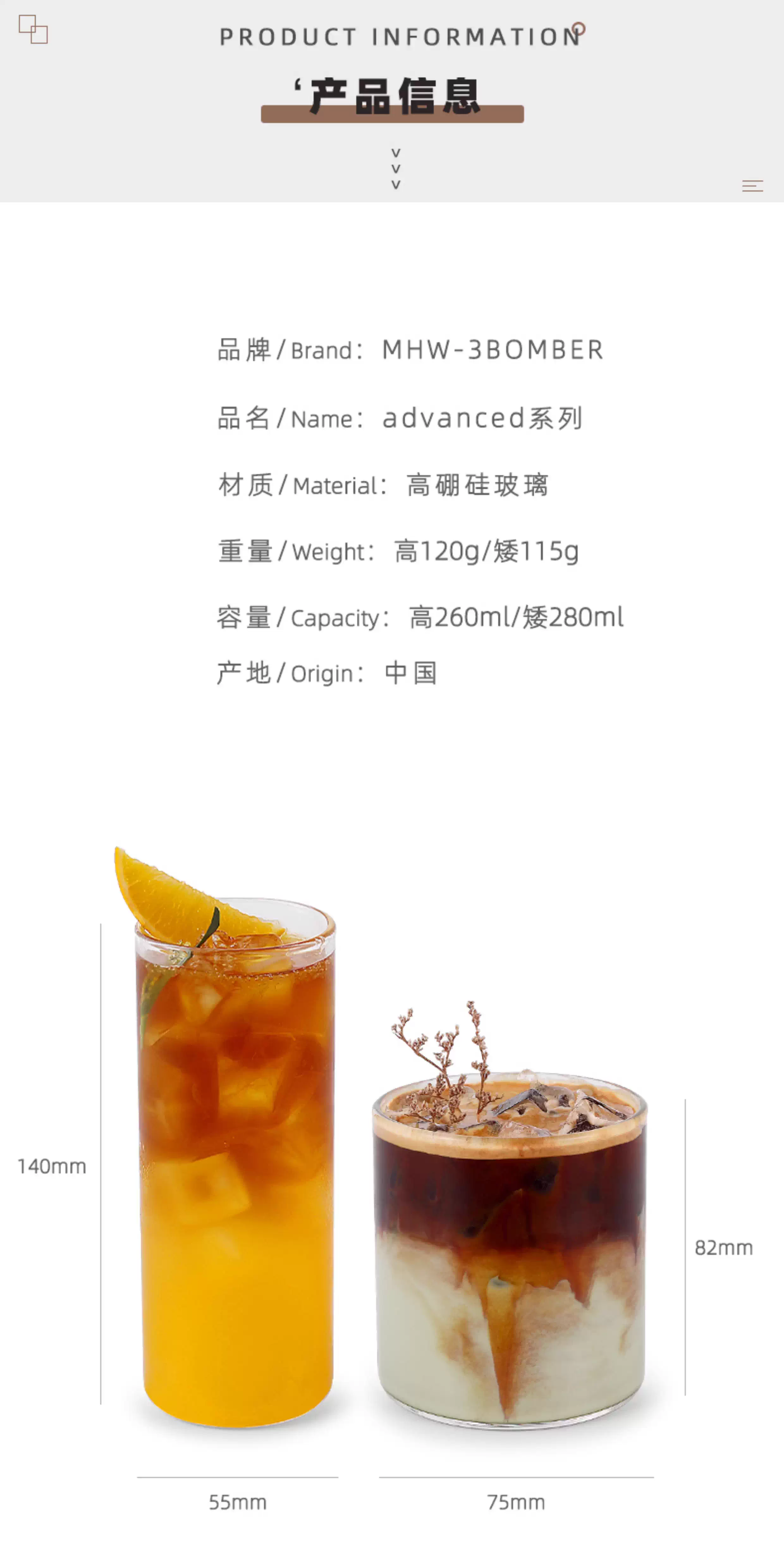 - Ly thủy tinh cao cấp dùng cho quán cà phê, làm đá xay latte sữa Mỹ, cà phê KINTO, 280ml