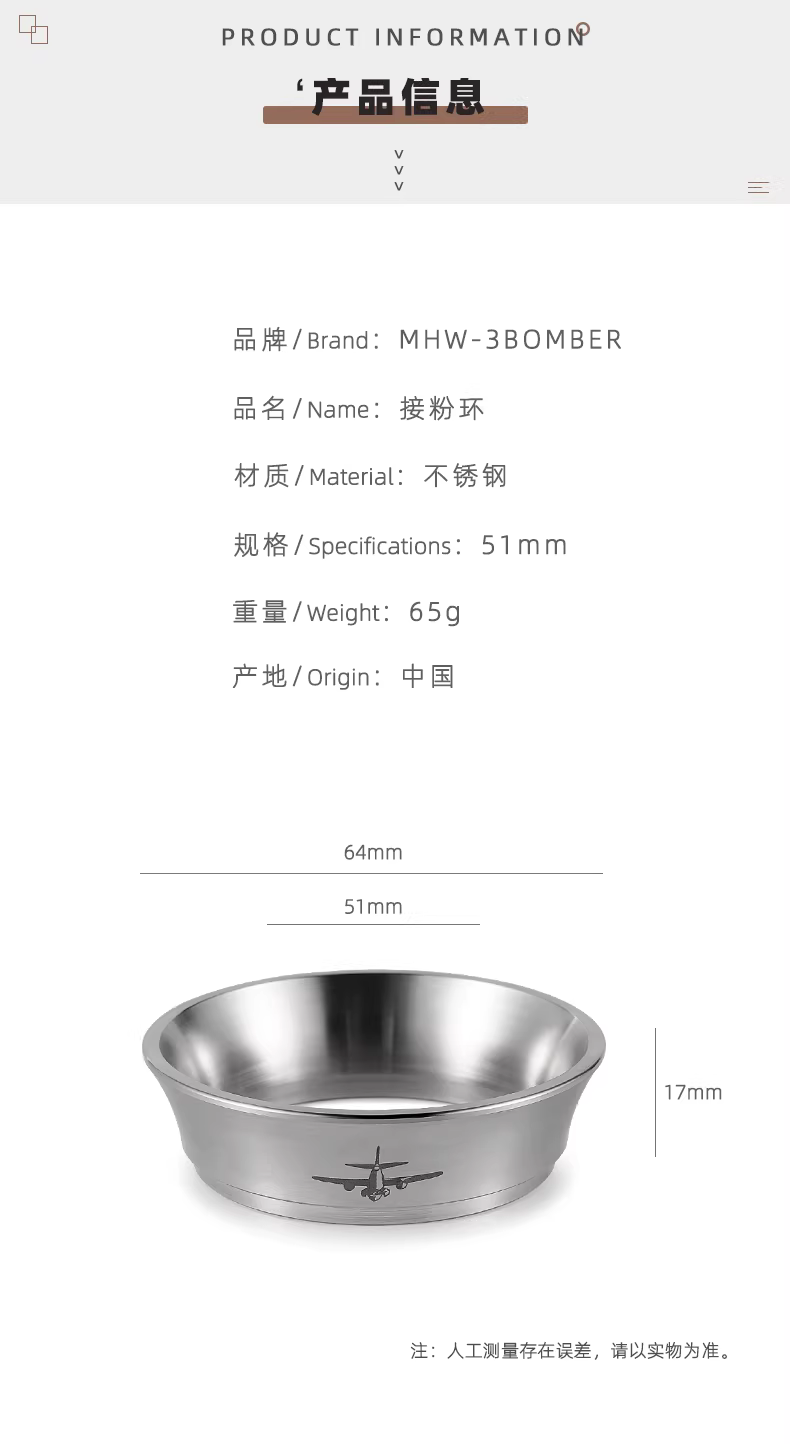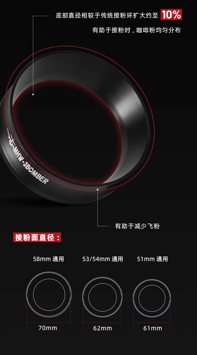 - Máy lọc bột cà phê MHW Bomber dành cho máy pha cà phê Espresso, Máy lọc bột từ tính, Vòng phân phối 51/53/58mm, Chống bắn bột