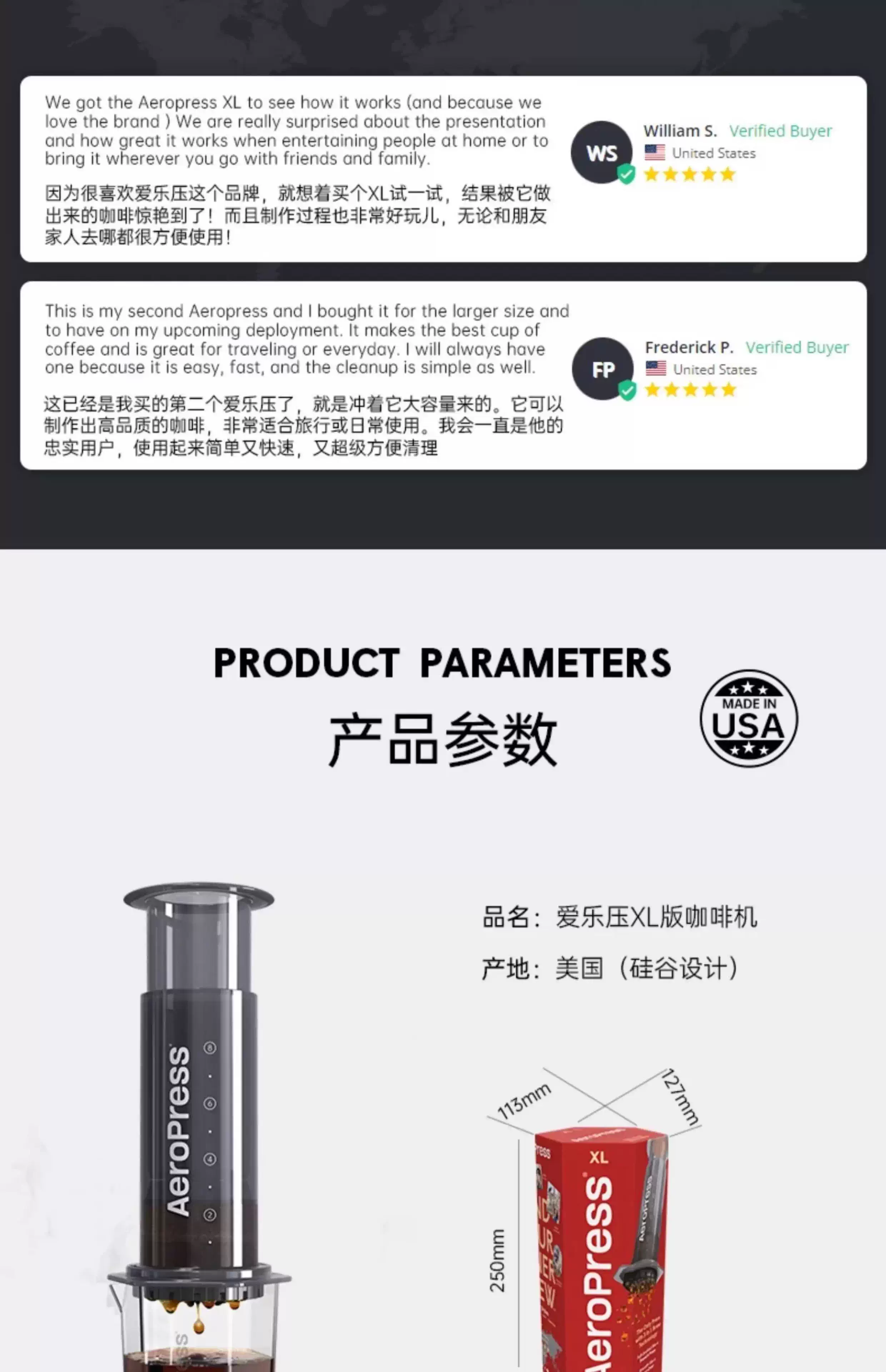 - Máy pha cà phê bằng tay Aeropress XL phiên bản lớn, kiểu Ý, kiểu Pháp, pha cà phê Espresso, dùng ngoài trời