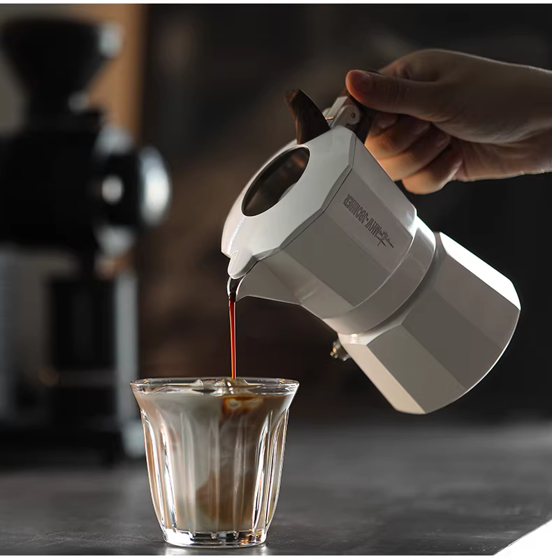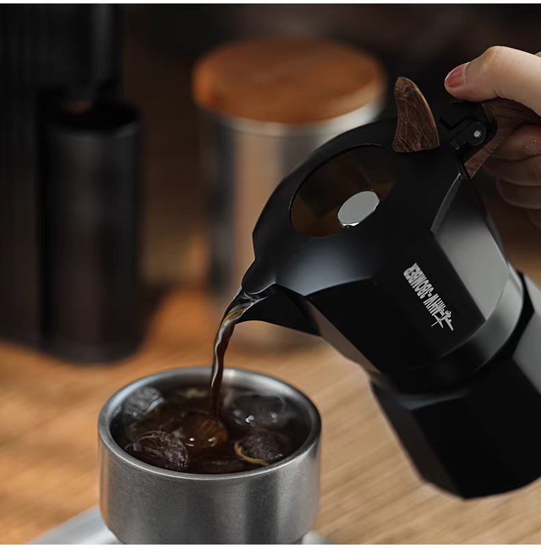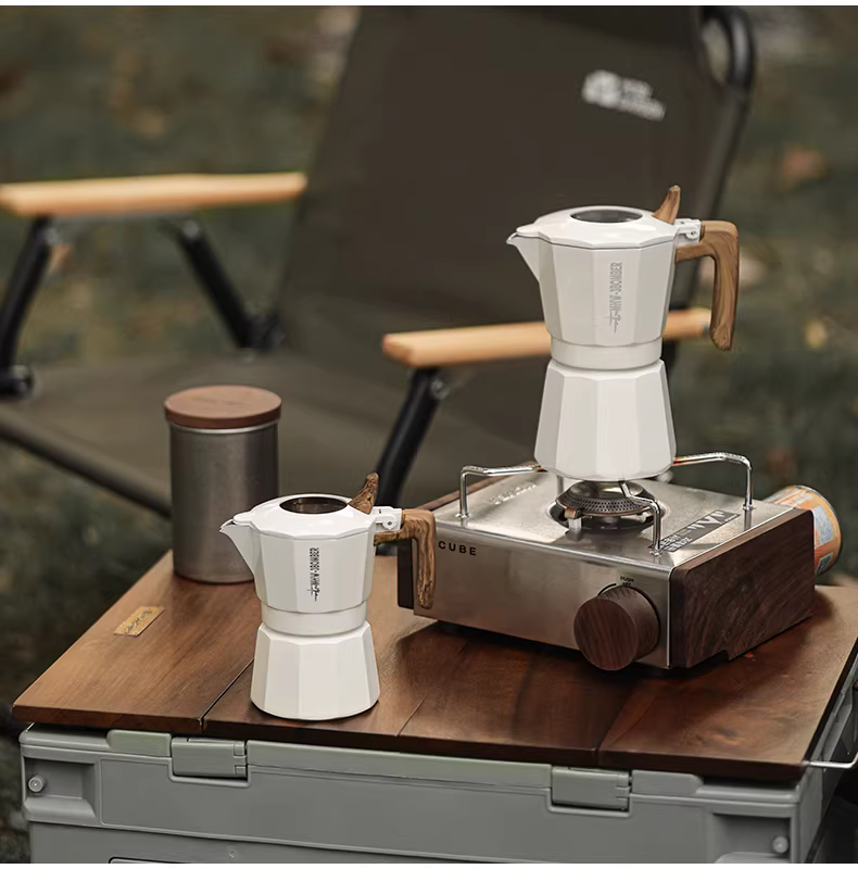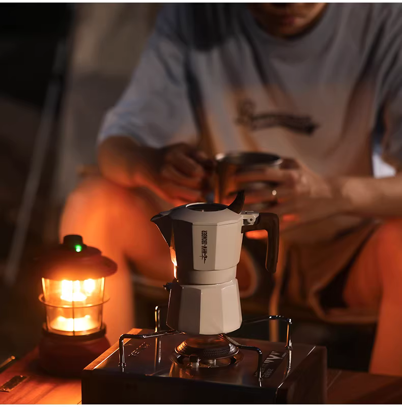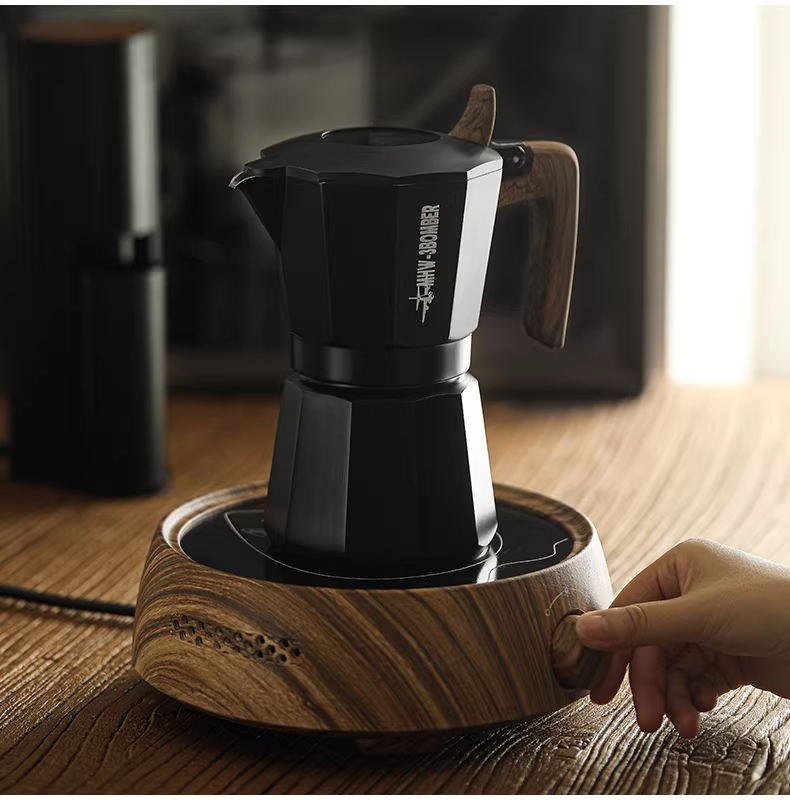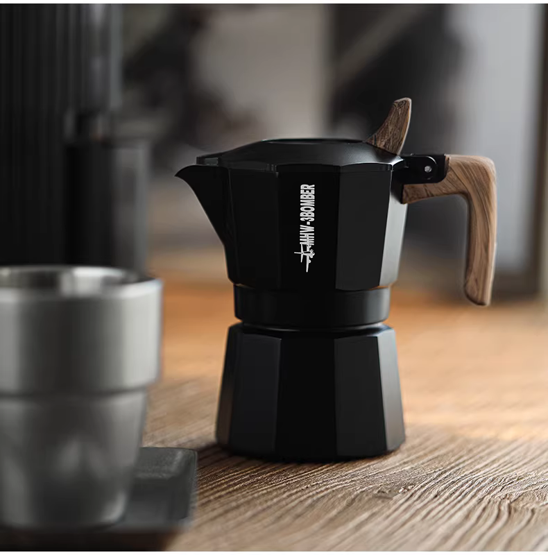 - Máy pha cà phê espresso bằng gốm sứ điện, kiểu Moka pot hai van, thương hiệu Bomber MHW, dùng được trong nhà và ngoài trời, kiểu Bialetti