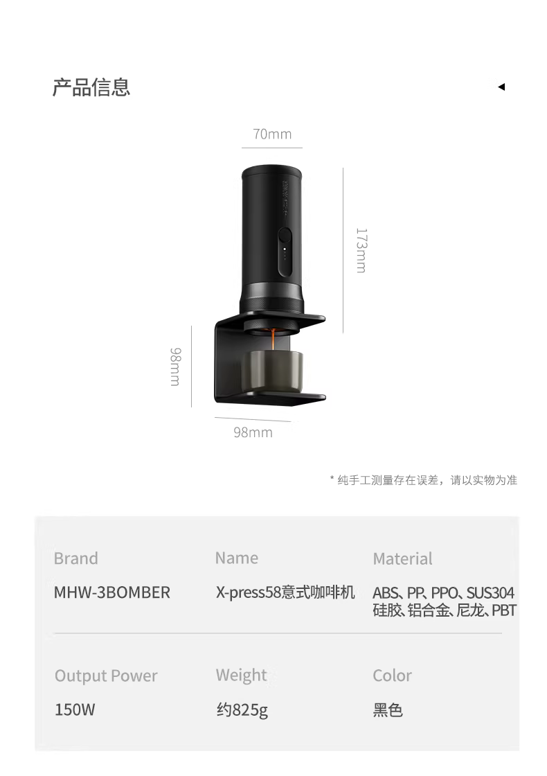 - Máy pha cà phê espresso di động MHW Bomber X-press dùng cho du lịch ngoài trời và sử dụng tại nhà