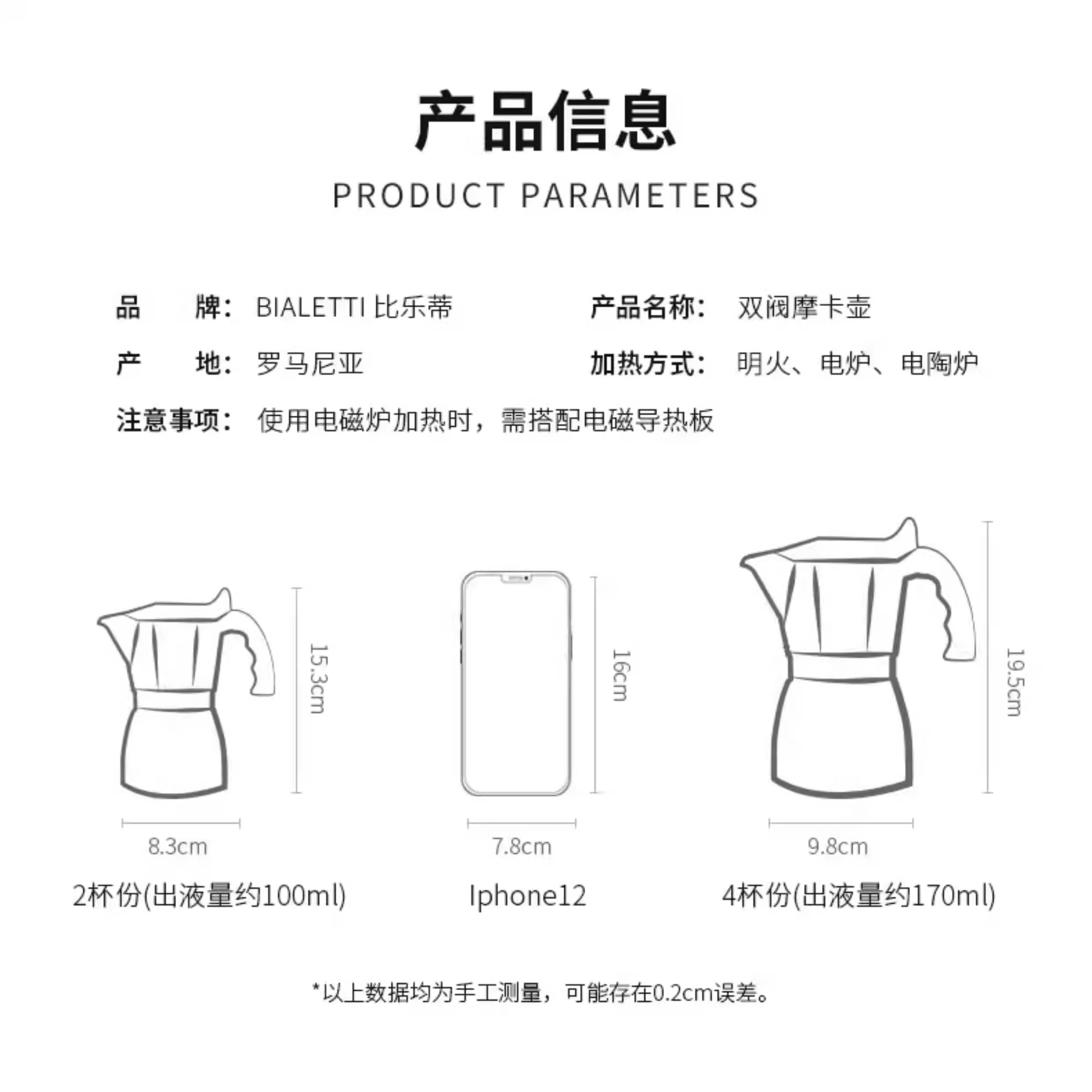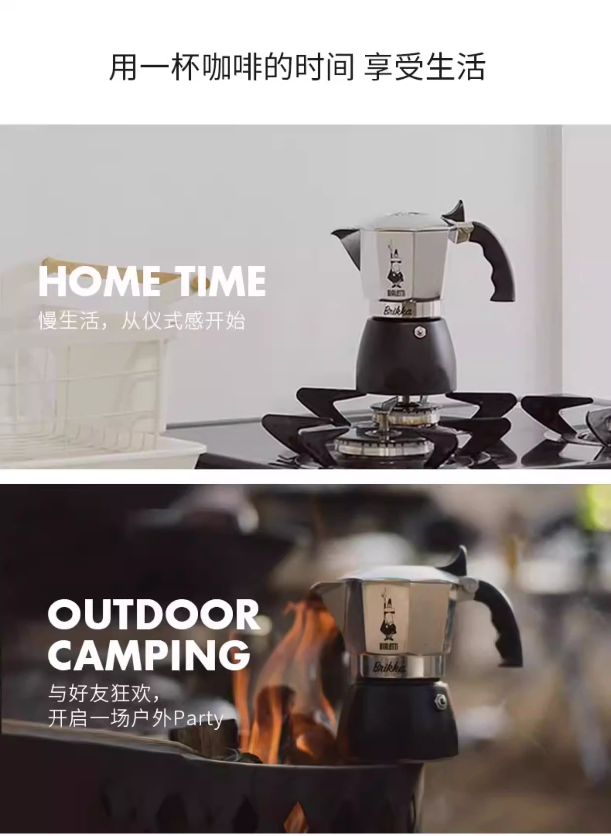 - Máy pha cà phê hai van chính hãng Bialetti dùng cho gia đình, ấm pha cà phê kiểu Ý, có áp suất dùng cho cắm trại.