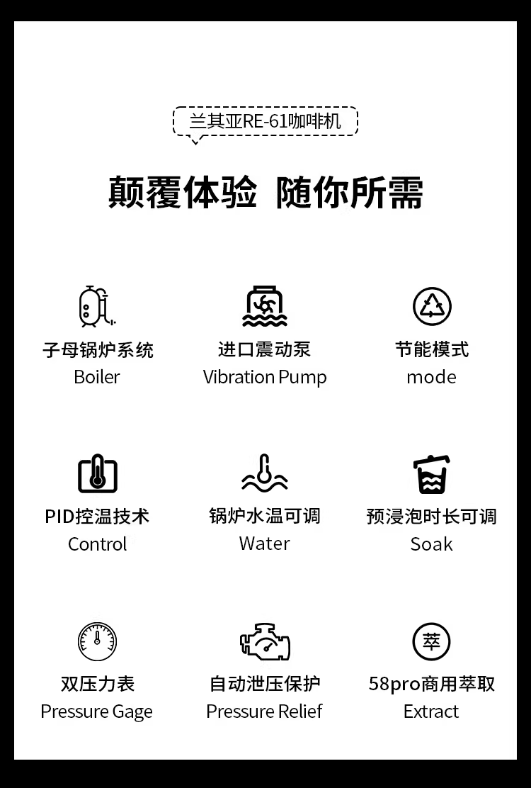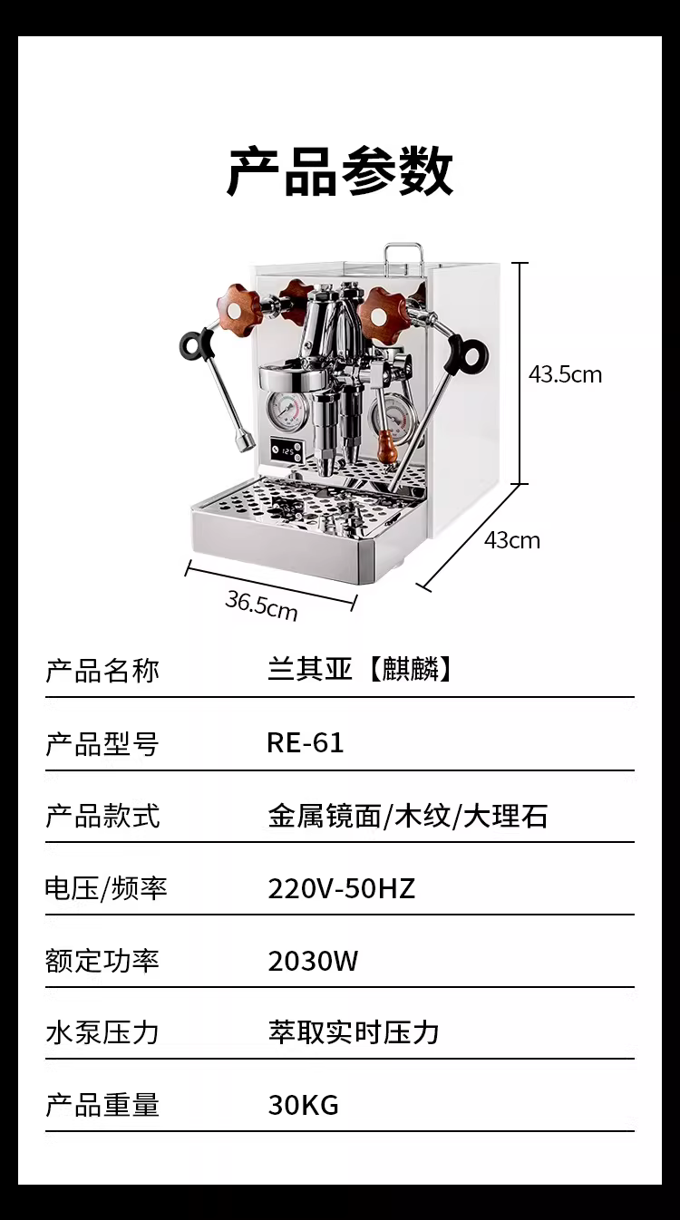 Máy pha cà phê Lancia RE-61 Kirin, đầu pha E61, máy pha cà phê bán tự động dùng cho gia đình, máy pha cà phê espresso nhỏ gọn dùng cho thương mại