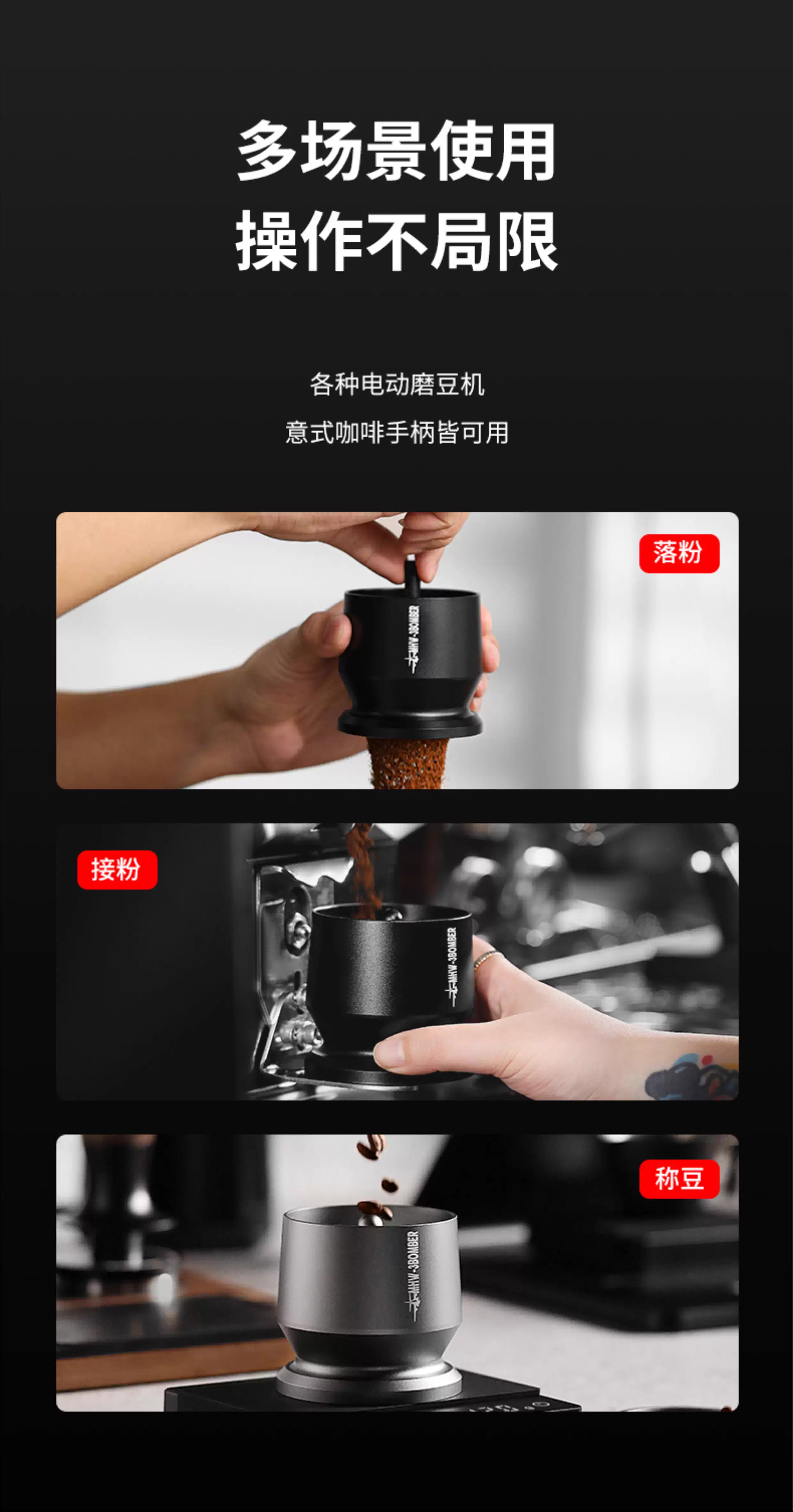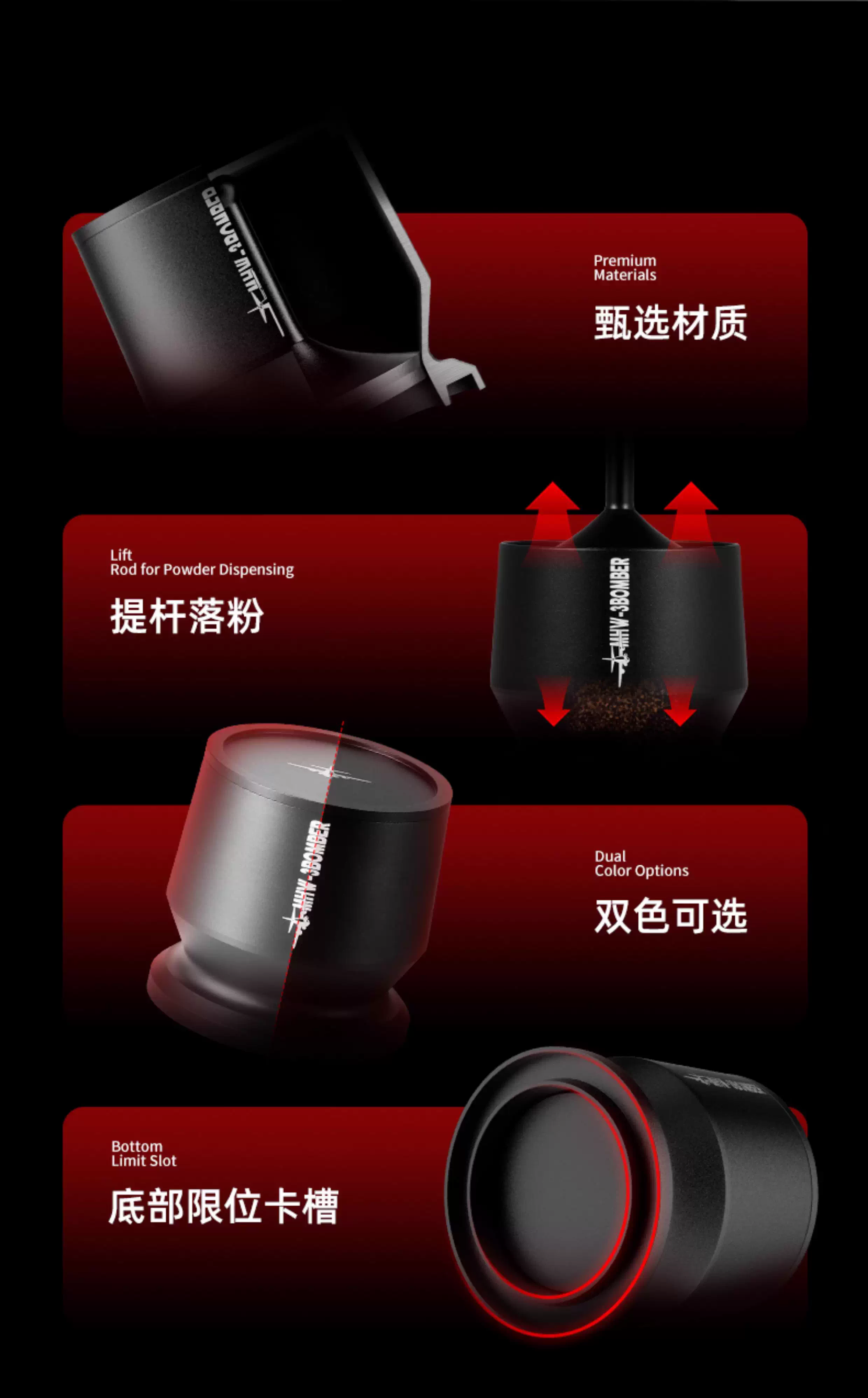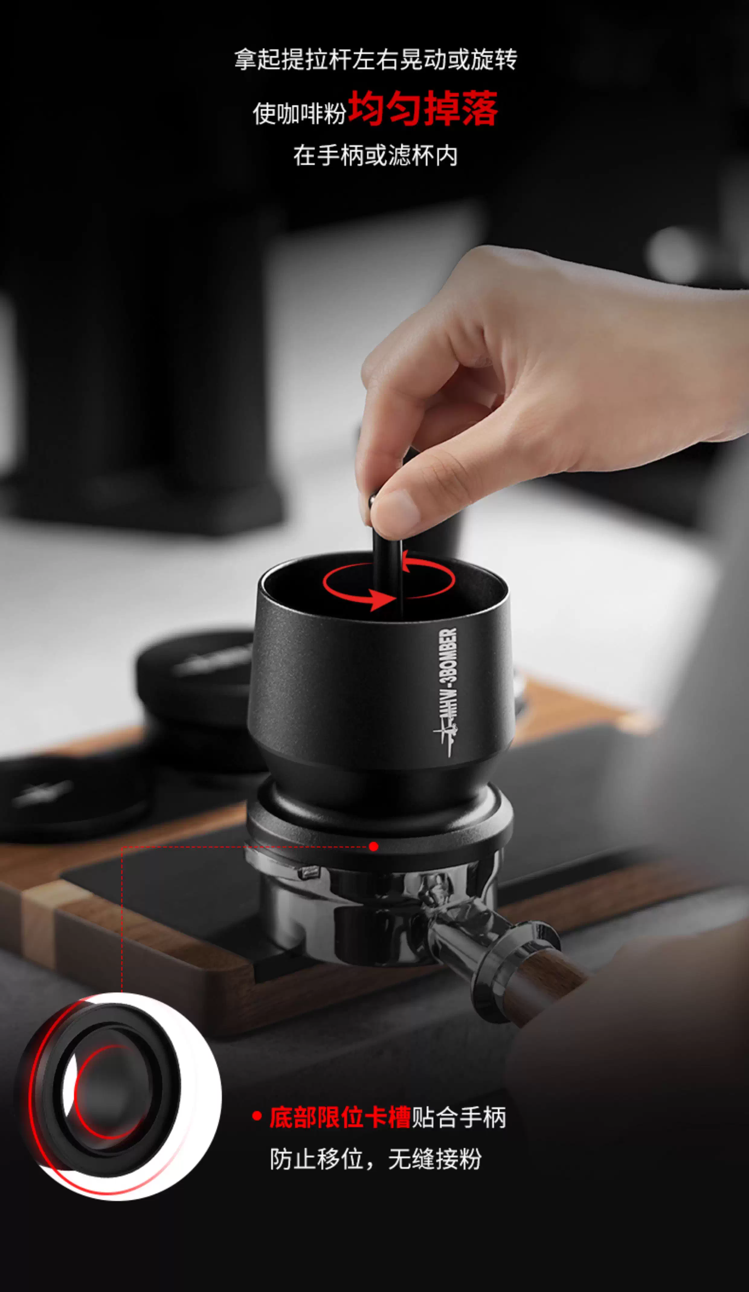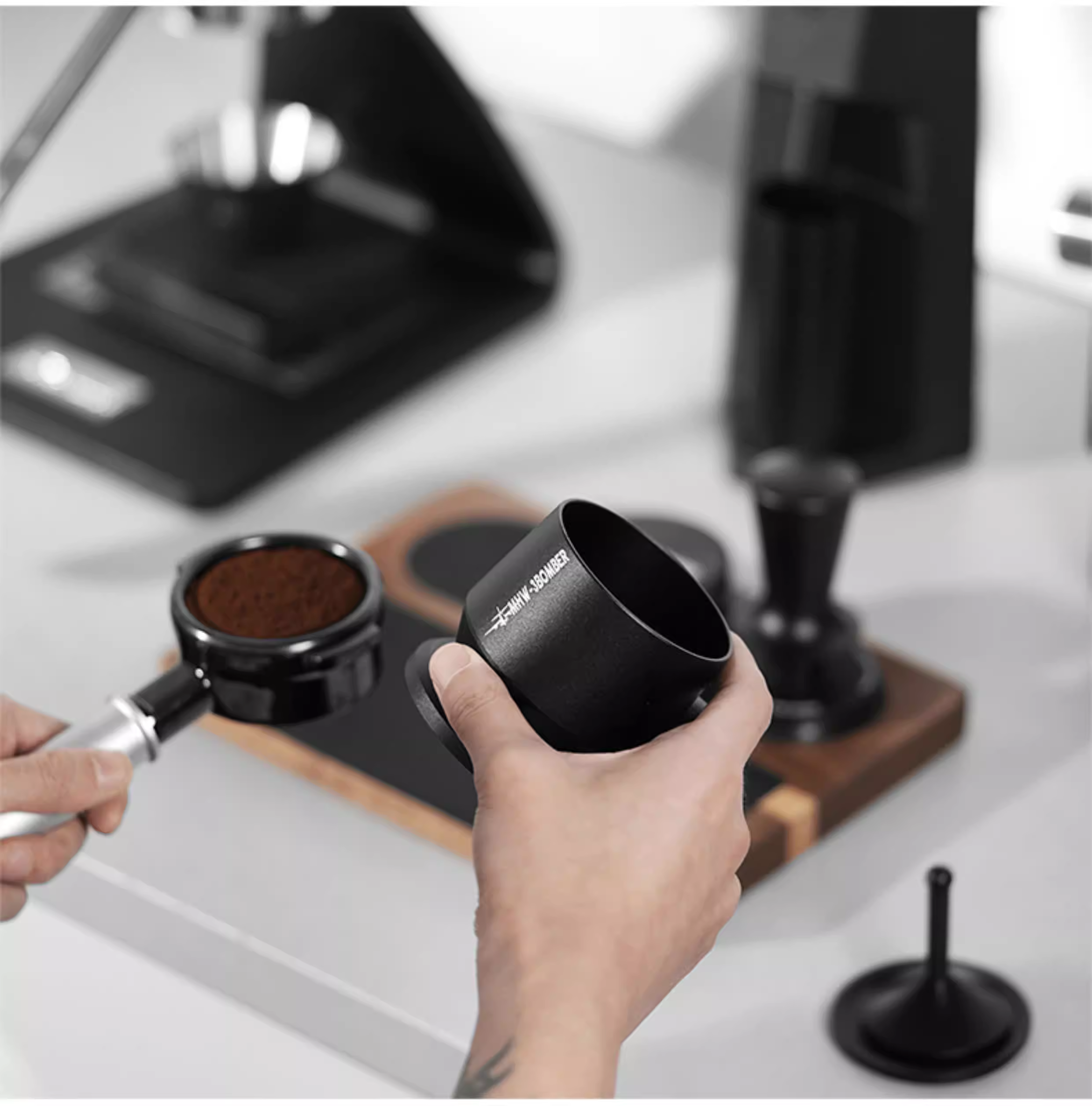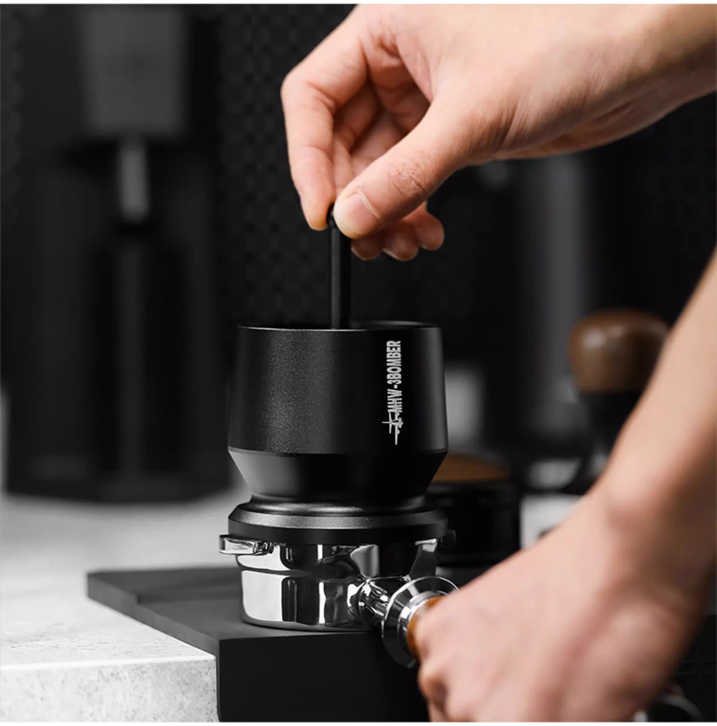 Máy phân phối bột Bomber MHW, máy xay cốc cà phê WBC, pha cà phê bằng tay, phân phối bột đều, chống tràn, chống tĩnh điện 58