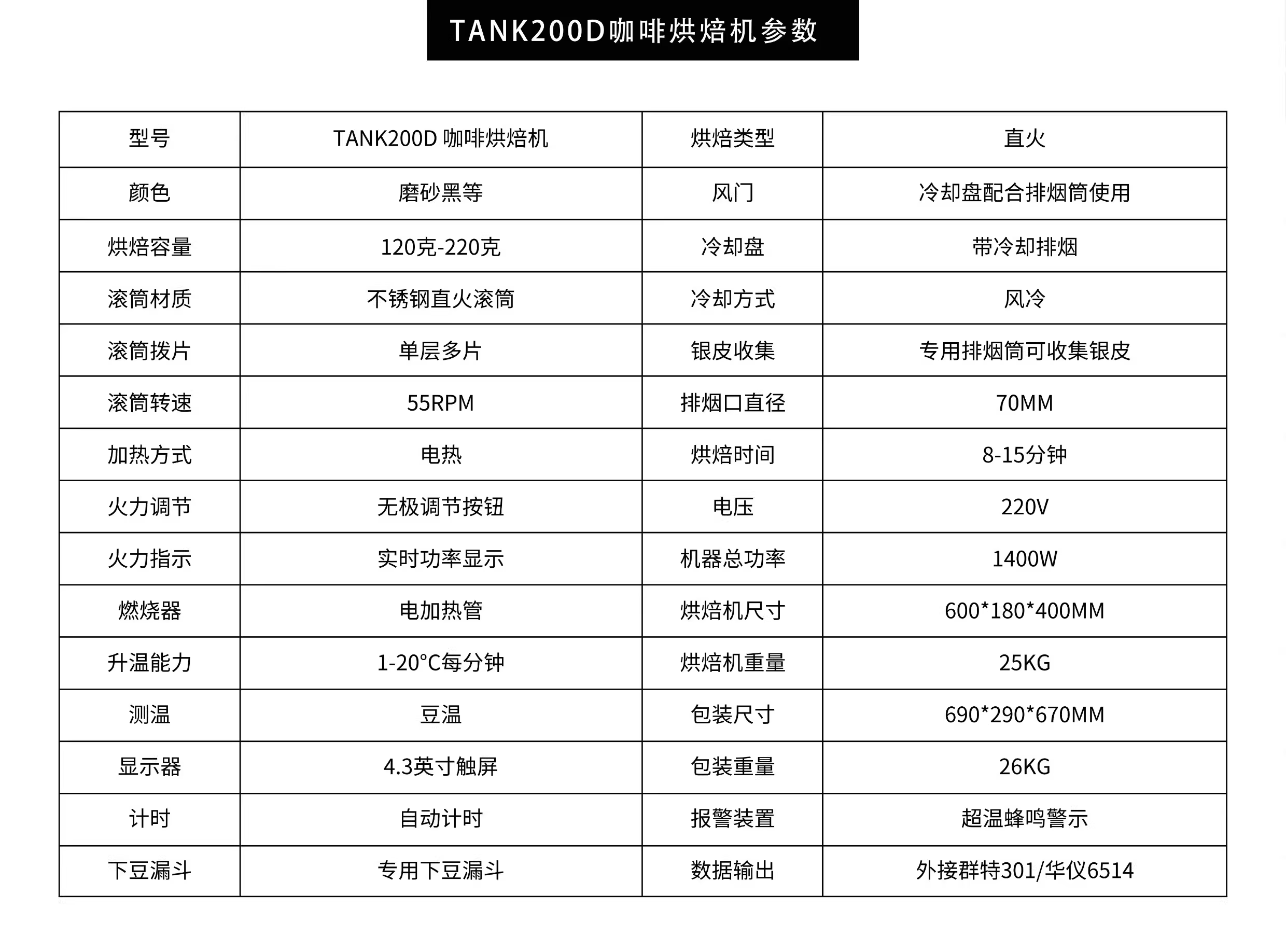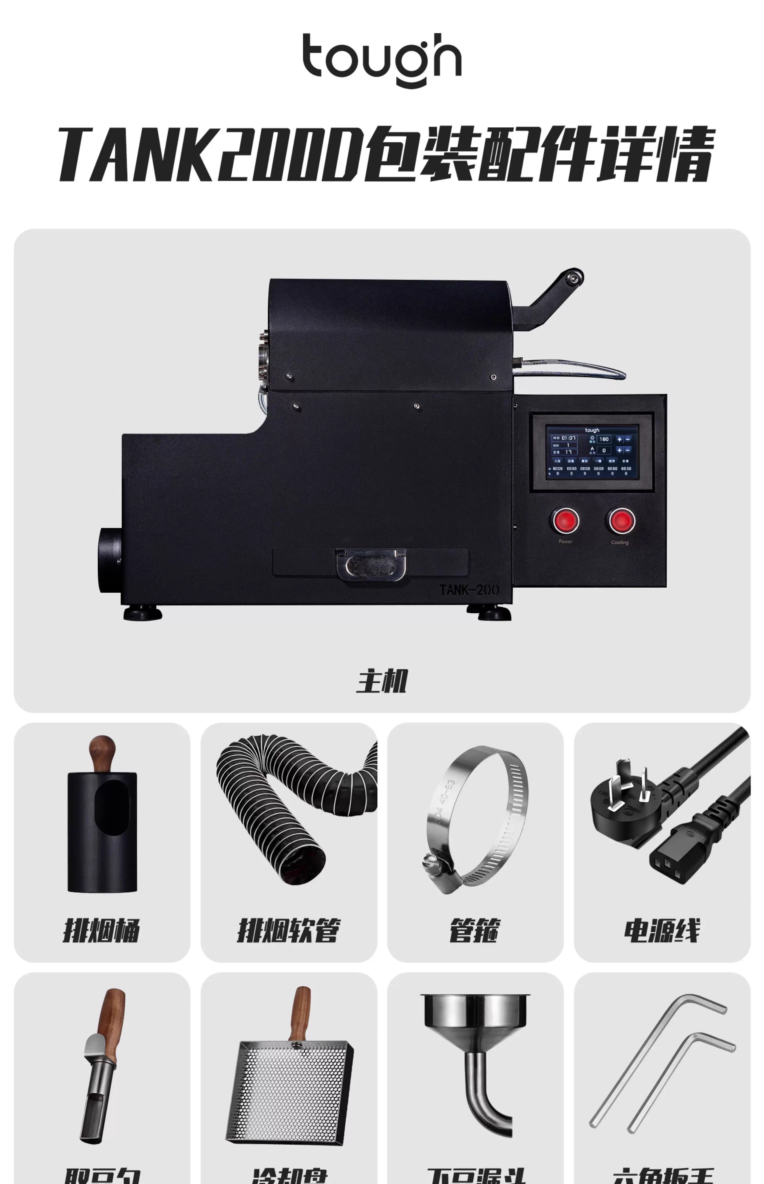 Máy rang cà phê gia đình thương mại nhỏ TANK200D, sử dụng điện, rang bằng bình nhiệt