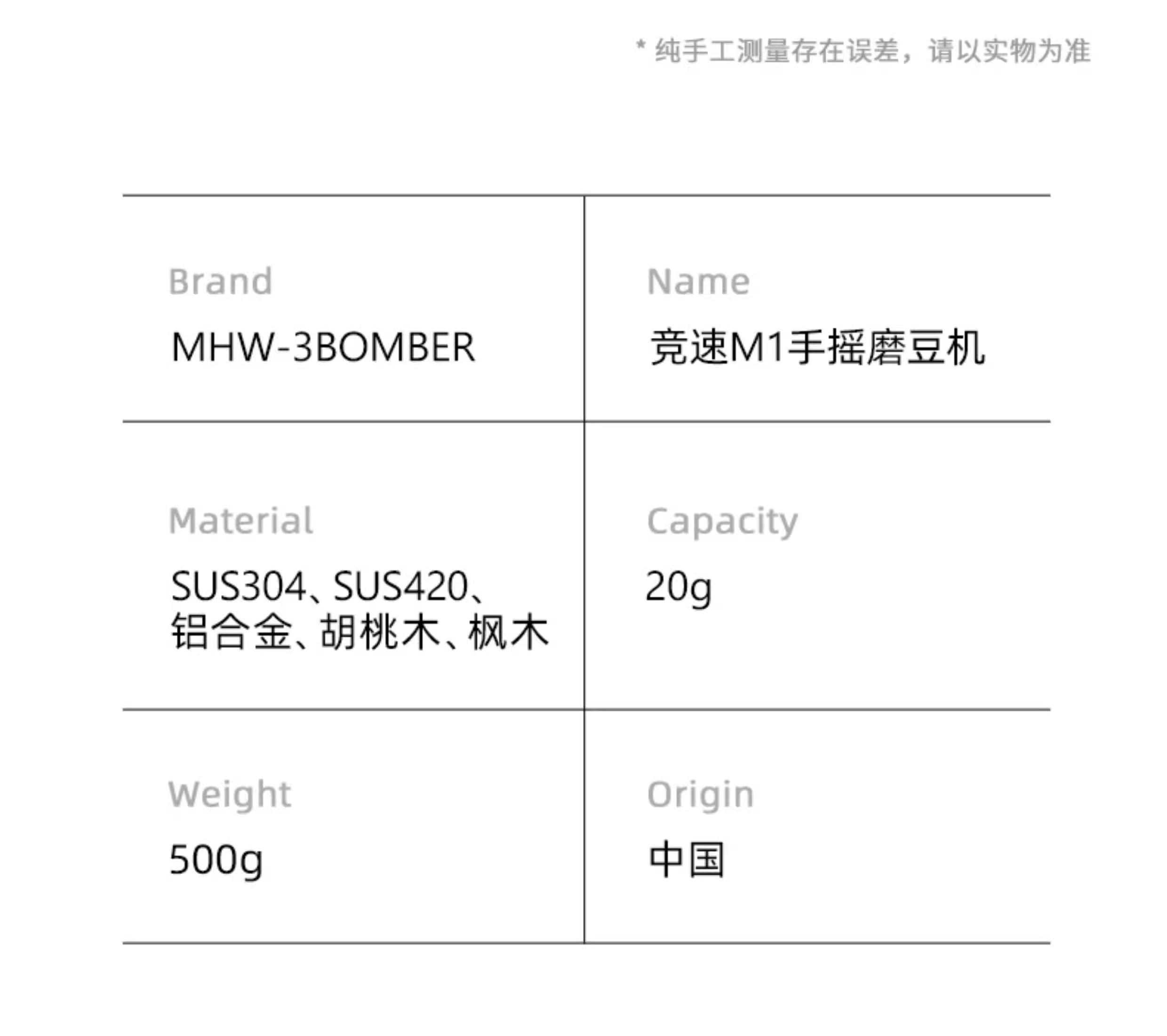 Máy xay cà phê cầm tay Bomber MHW Racing M1 Máy xay cà phê bằng tay Máy xay cà phê espresso cầm tay Di động hạt dẻ C