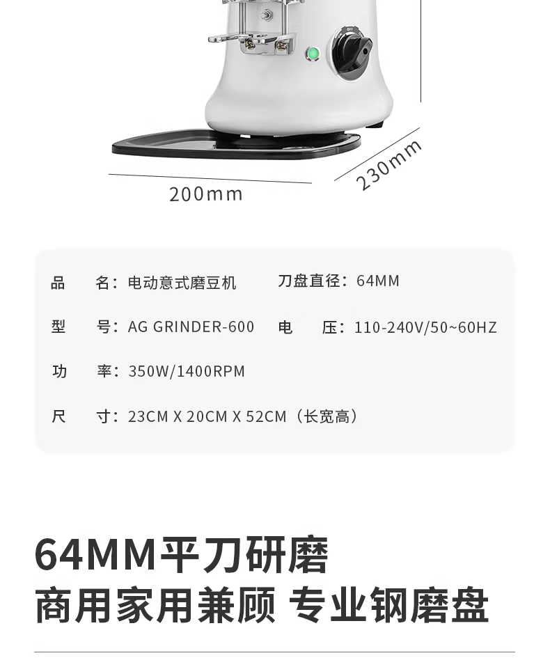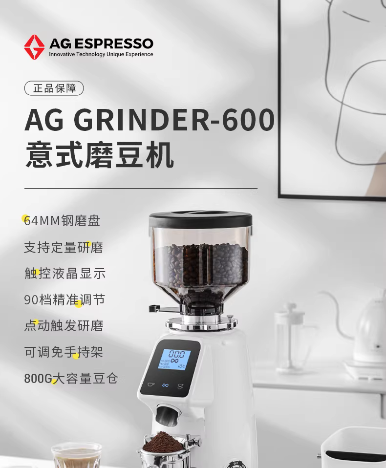 Máy xay cà phê điện kiểu Ý AG GRINDER-600, điều khiển điện tử, xay định lượng, cối xay 64mm, dùng cho thương mại
