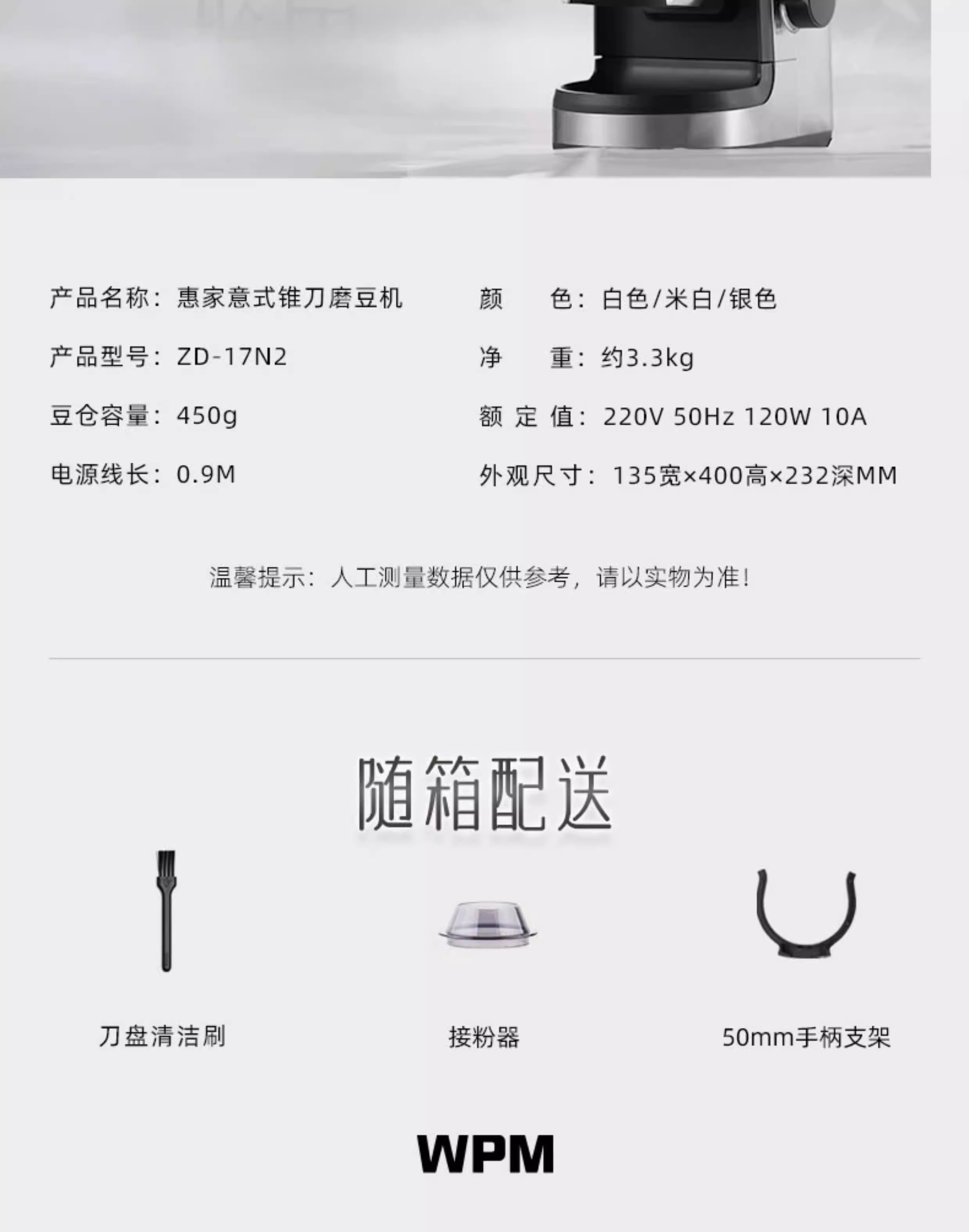 Máy xay cà phê Huijia WPM ZD-17N2 kiểu Ý, điện, dùng cho gia đình và thương mại, hoàn toàn tự động, xay hạt cà phê thủ công thành bột Q18