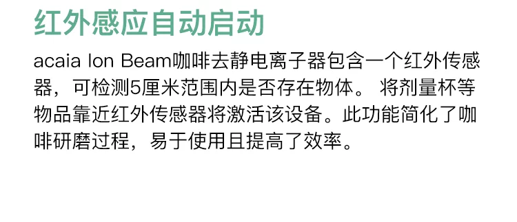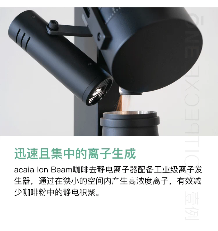 - Máy xay cà phê ion hóa chống tĩnh điện ACAIA lon Beam tạo ra ion dương và ion âm, loại bỏ tĩnh điện và ngăn bột bay.
