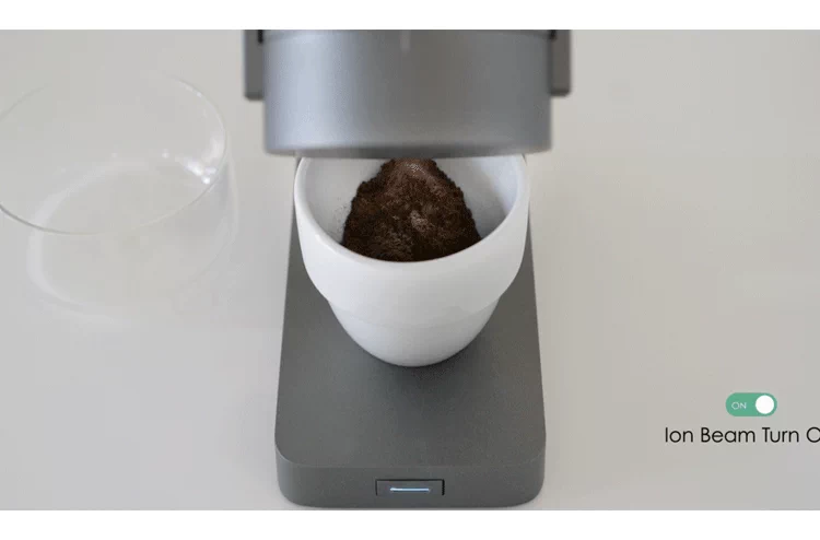Máy xay cà phê ion hóa chống tĩnh điện ACAIA lon Beam tạo ra ion dương và ion âm, loại bỏ tĩnh điện và ngăn bột bay.