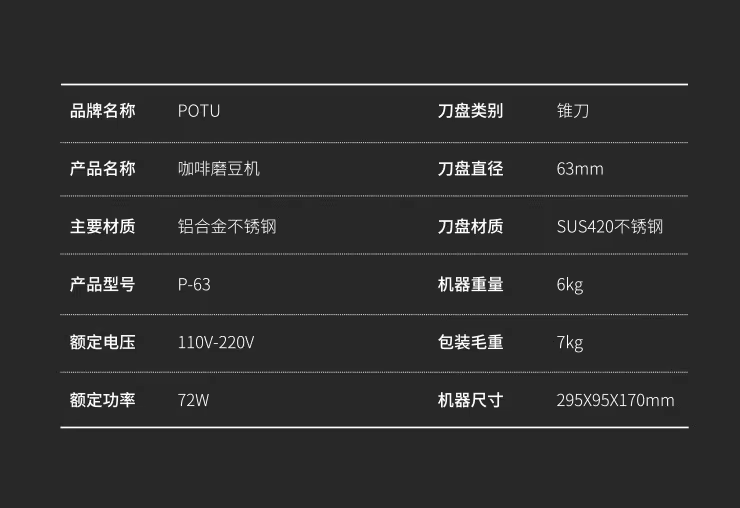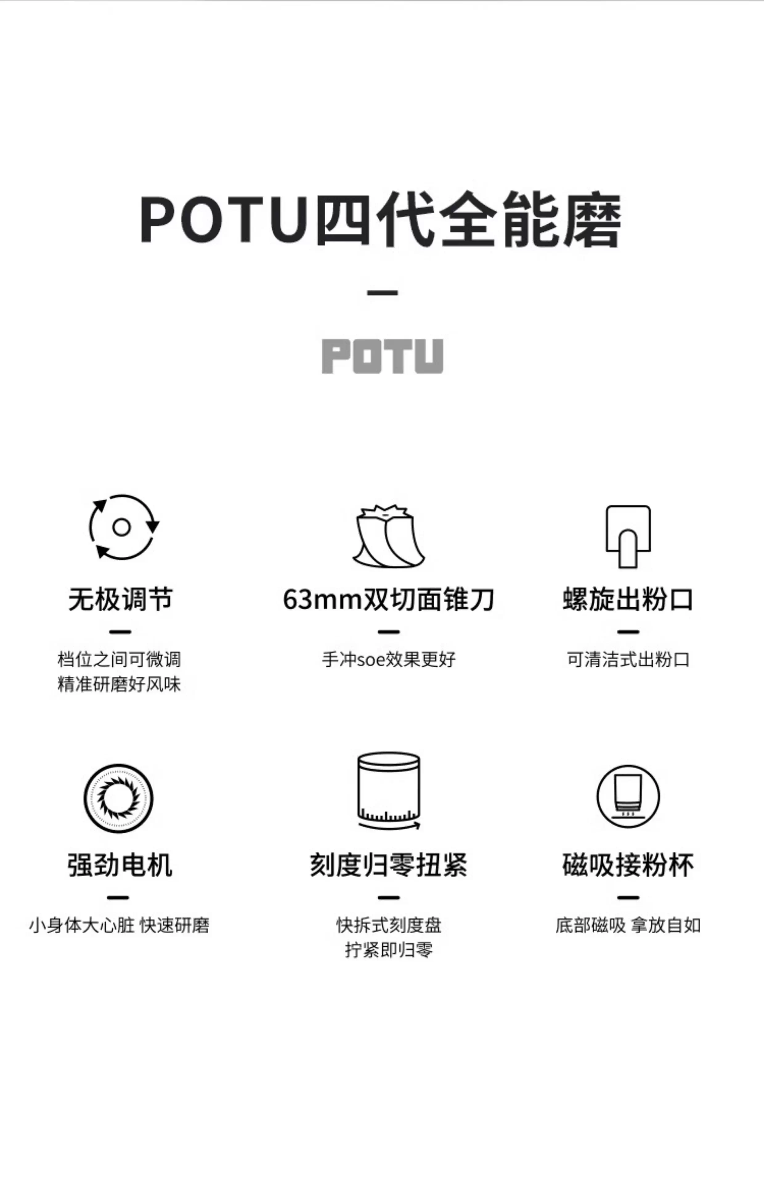 Máy xay cà phê thế hệ thứ 4 Potu dành cho hạt cà phê espresso pha thủ công, máy xay đa năng chạy điện p63 máy xay q18