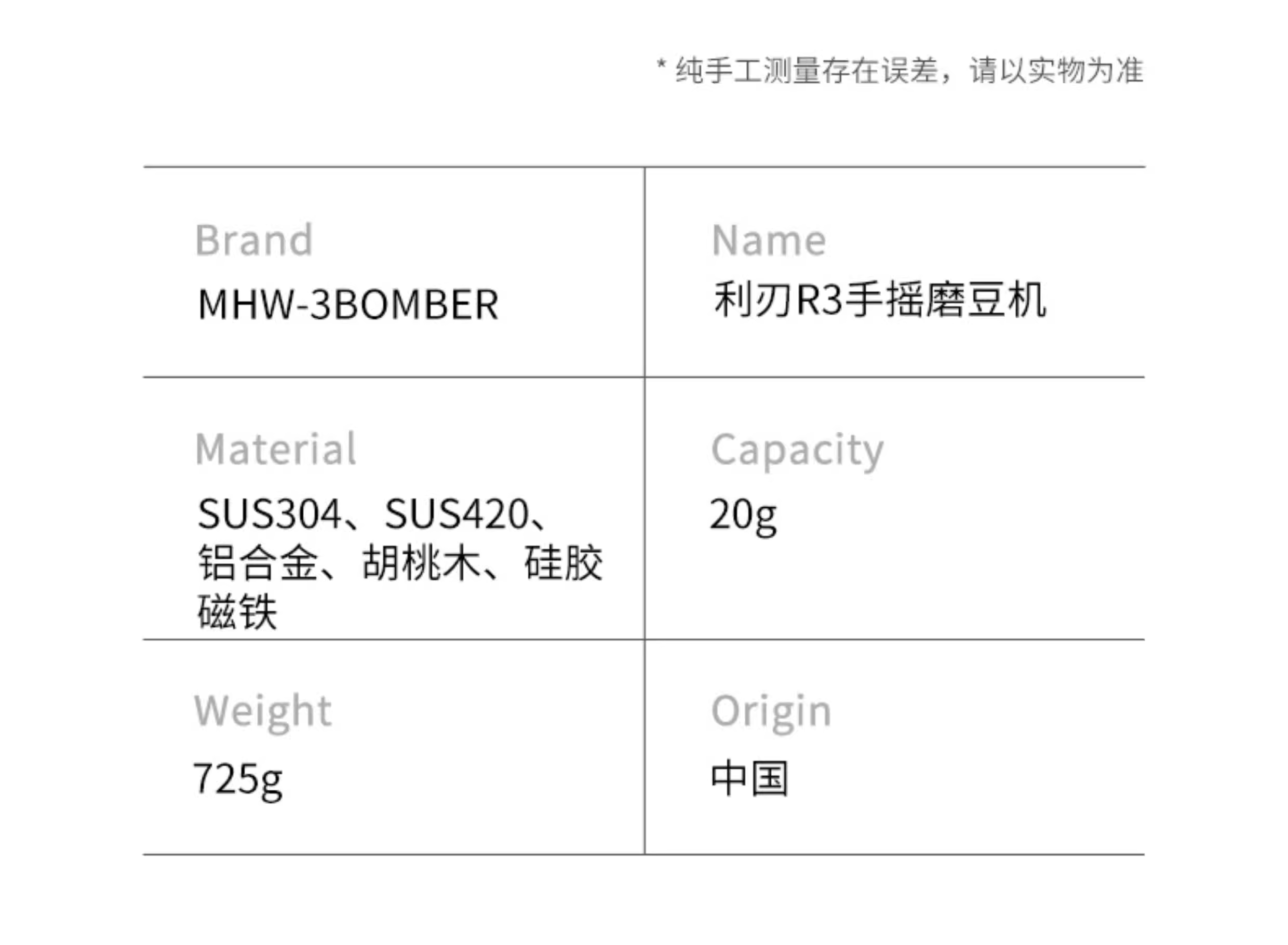 - Máy xay cà phê thủ công Bomber MHW Blade R3 có độ chính xác cao, điều chỉnh bên ngoài, xay cà phê espresso thủ công