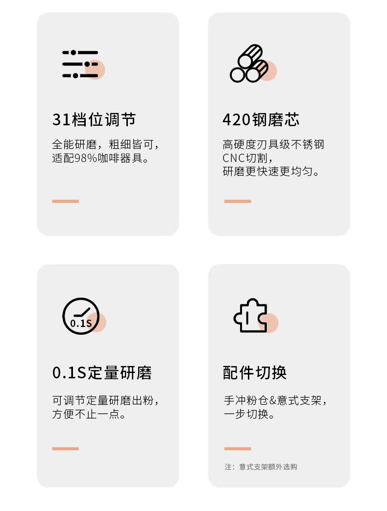 - MOJAE/Mojia Zhiyi Máy xay cà phê điện Máy xay cà phê định lượng Máy xay cà phê pha thủ công kiểu Ý Máy xay Huijia Baicui