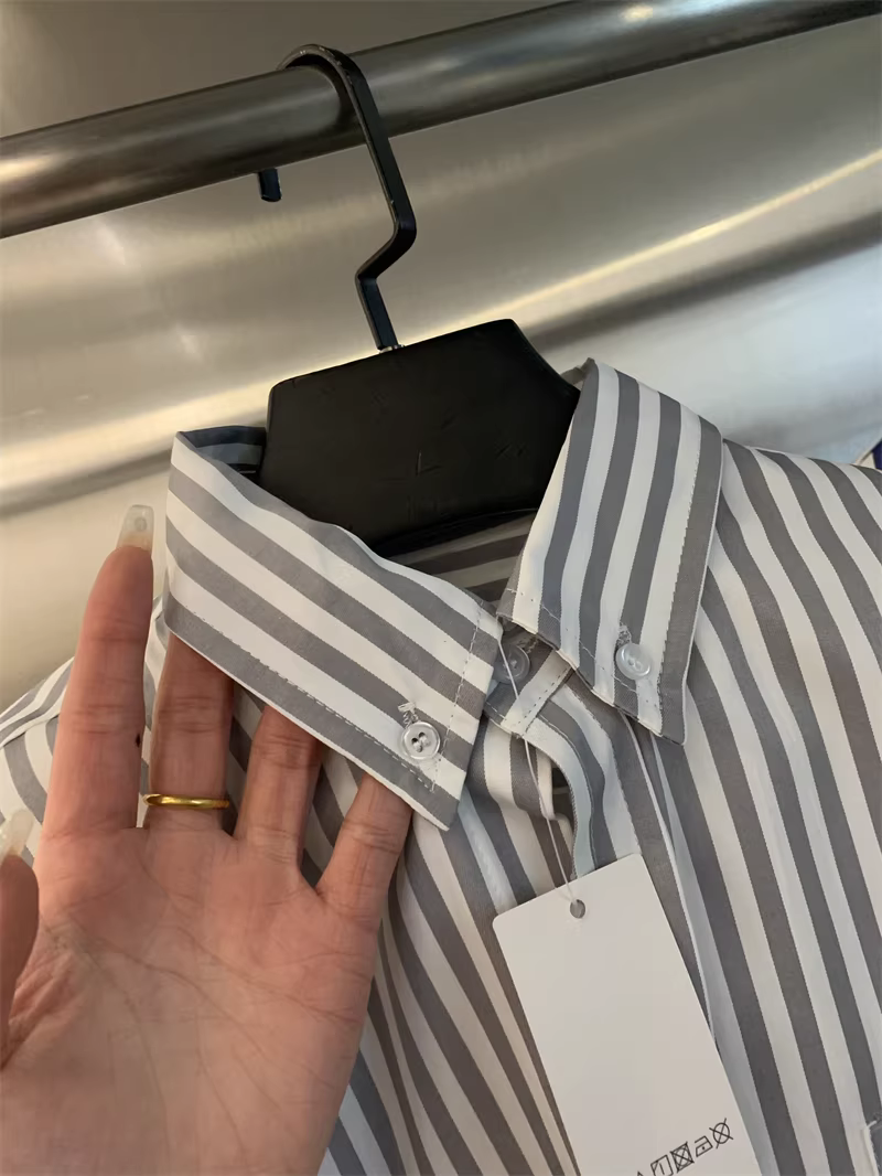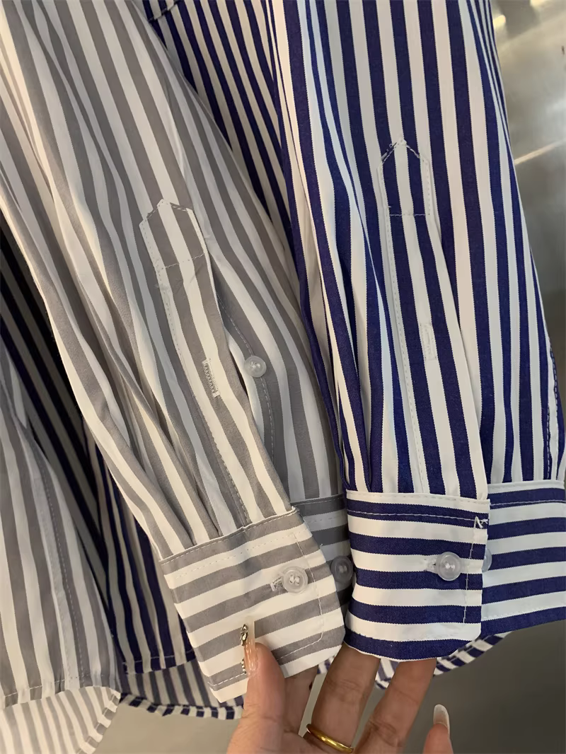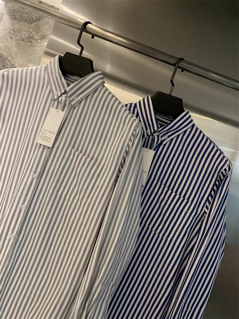 Món đồ không thể thiếu của người yêu thích Don Quixote! Áo sơ mi dài tay có cổ, chất liệu cotton dài sợi, vân sọc dọc, thoáng khí, unisex.