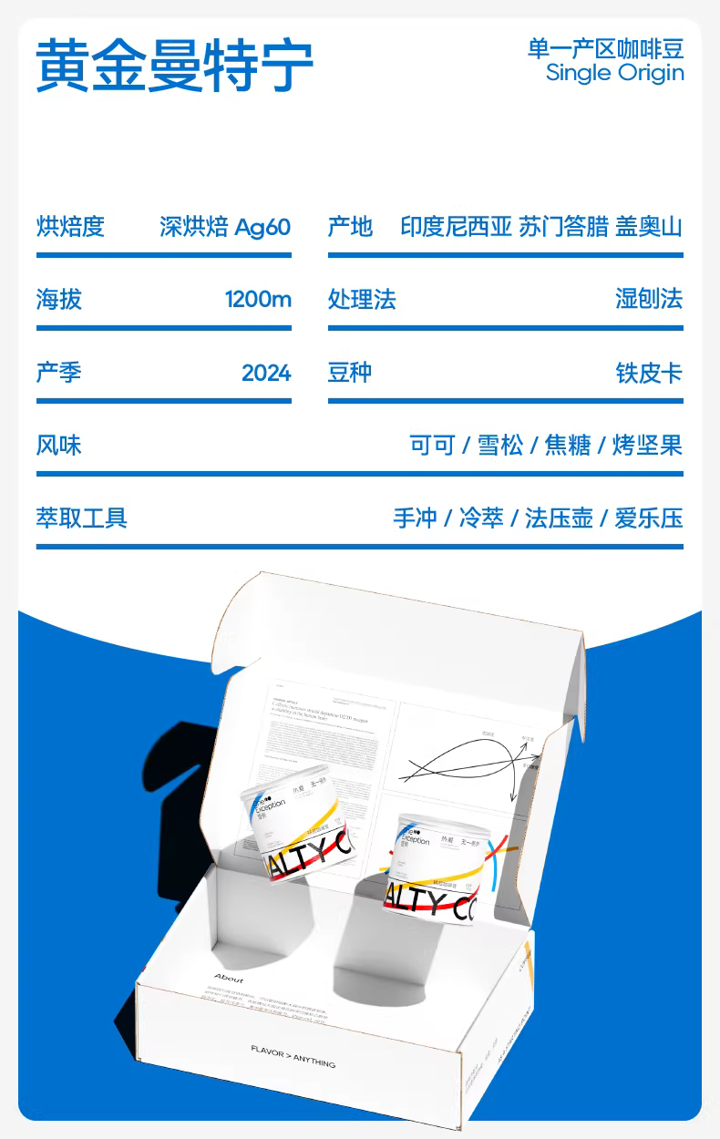 Một ví dụ về hạt cà phê Golden Mandheling 21 mesh, xuất xứ Indonesia, bột cà phê cao cấp 120g