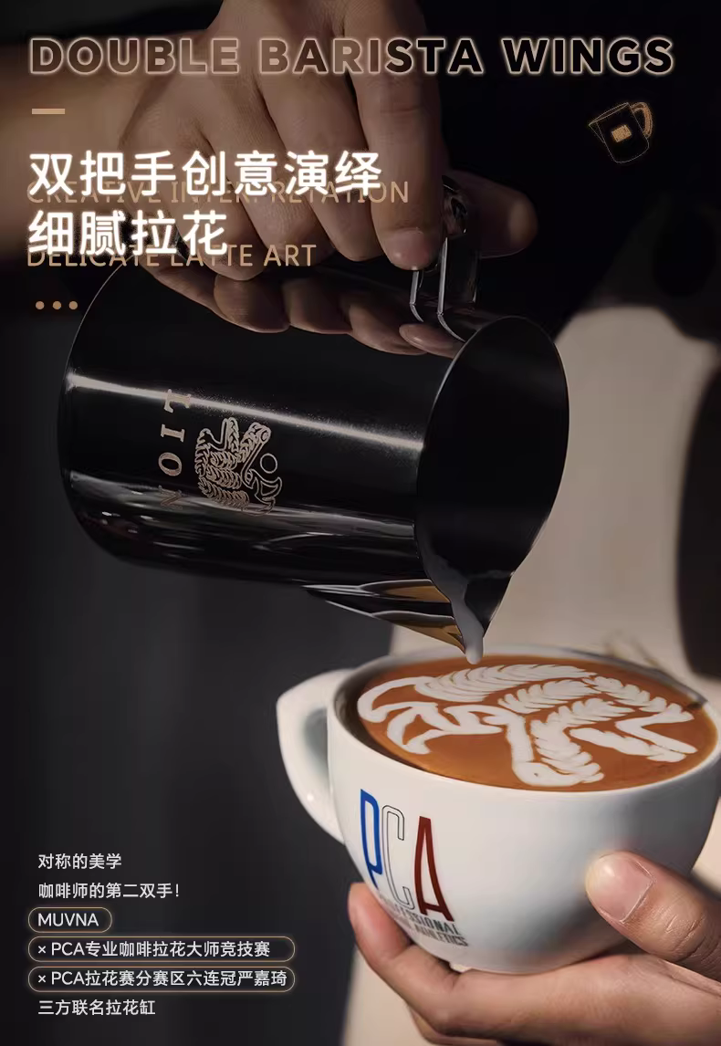 - MUVNA DBW Latte Art Cylinder Double Handle Coffee Embossing Latte Art Milk Frothing Cup PCA Yan Jiaqi Hợp tác