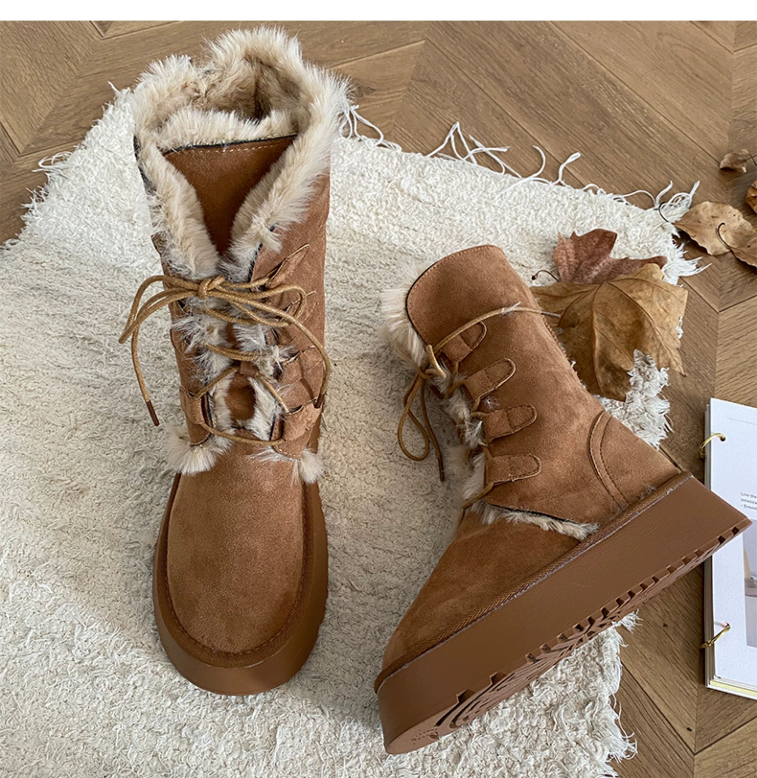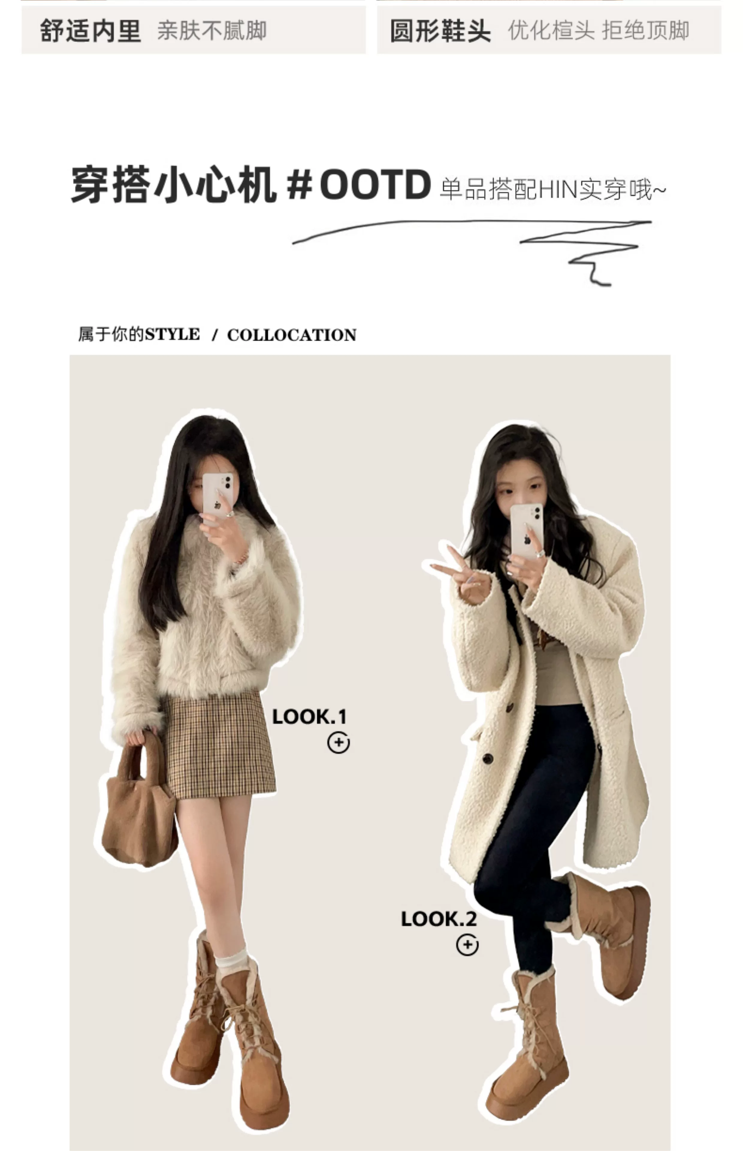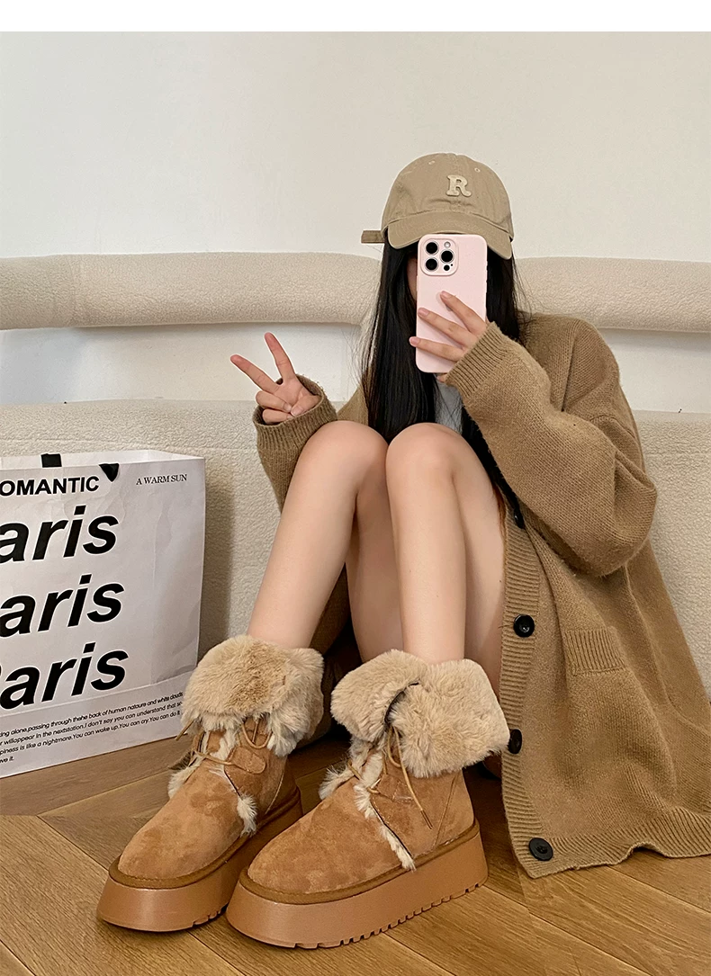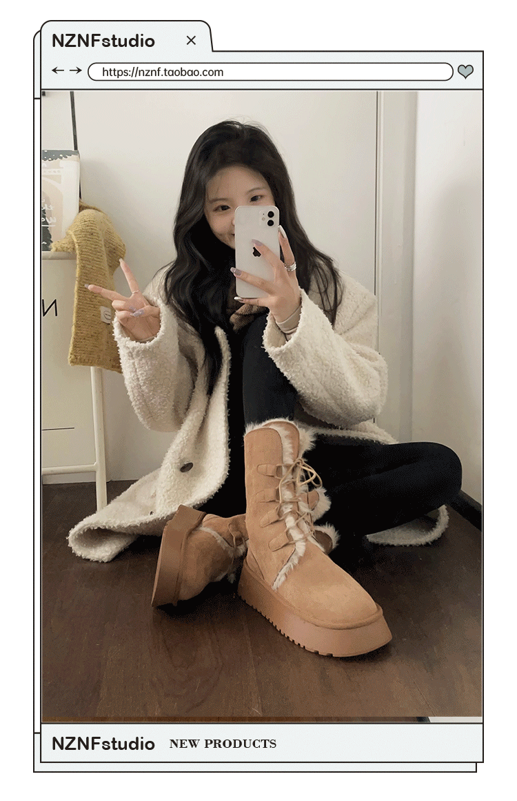 - Nan Zai Nan Fang Giày bốt đi tuyết đế dày ấm áp dành cho nữ, phong cách mới mùa đông 2025, lót lông cừu, dày dặn, giày cotton chống trơn trượt.