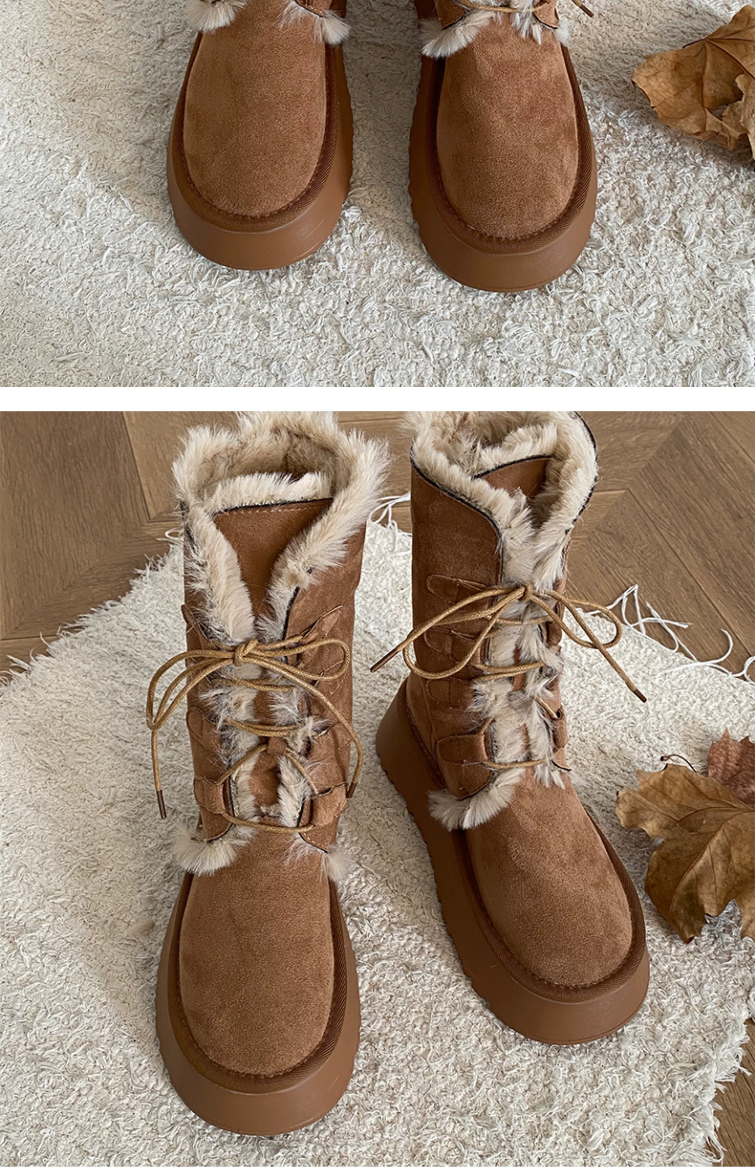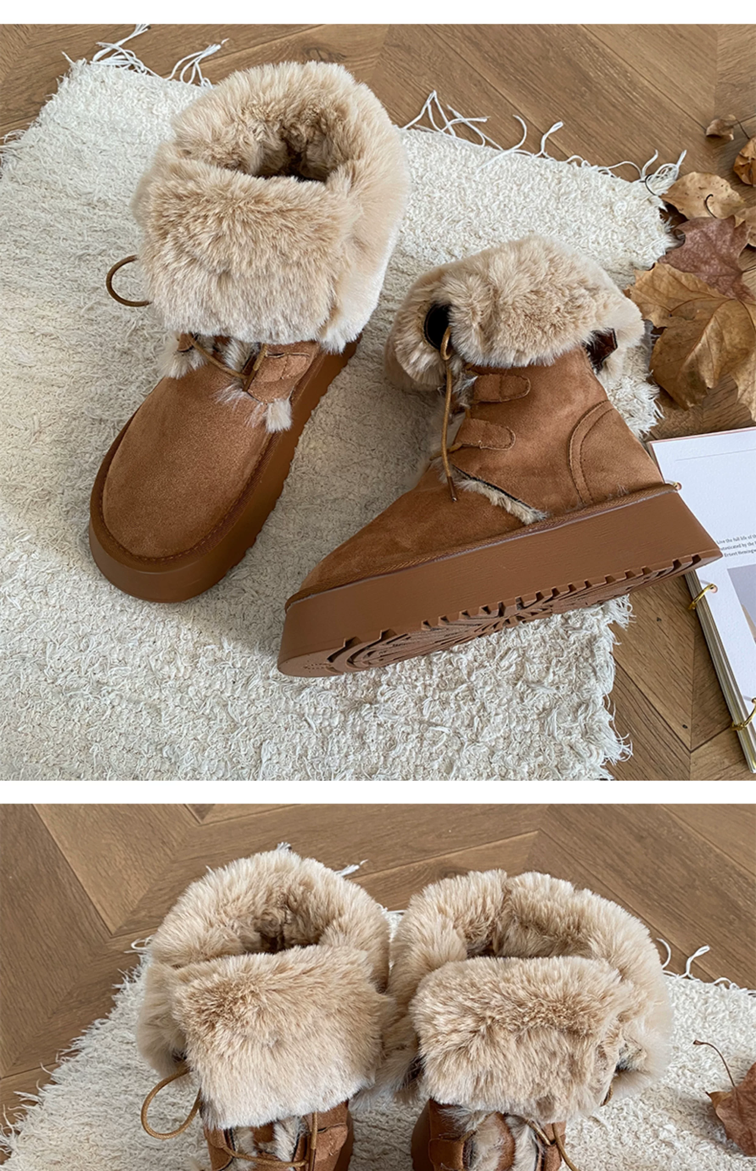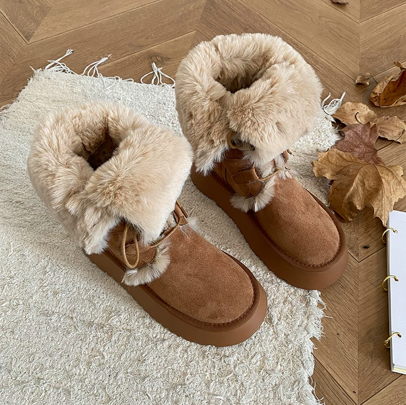 - Nan Zai Nan Fang Giày bốt đi tuyết đế dày ấm áp dành cho nữ, phong cách mới mùa đông 2025, lót lông cừu, dày dặn, giày cotton chống trơn trượt.