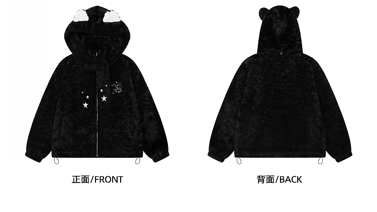 - Ngộ Không có sẵn mũ tai mèo dễ thương có thể tháo rời, áo khoác len cừu cotton cho nữ, áo khoác lông mềm phong cách mùa đông thoải mái.