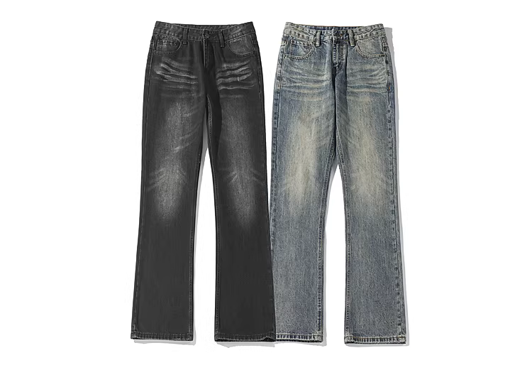 Ngộ Không có sẵn quần jean nam kiểu Mỹ, dáng cleanfit, xước, phai màu, ống loe, phong cách vintage, rộng rãi, hợp thời trang, đa năng.