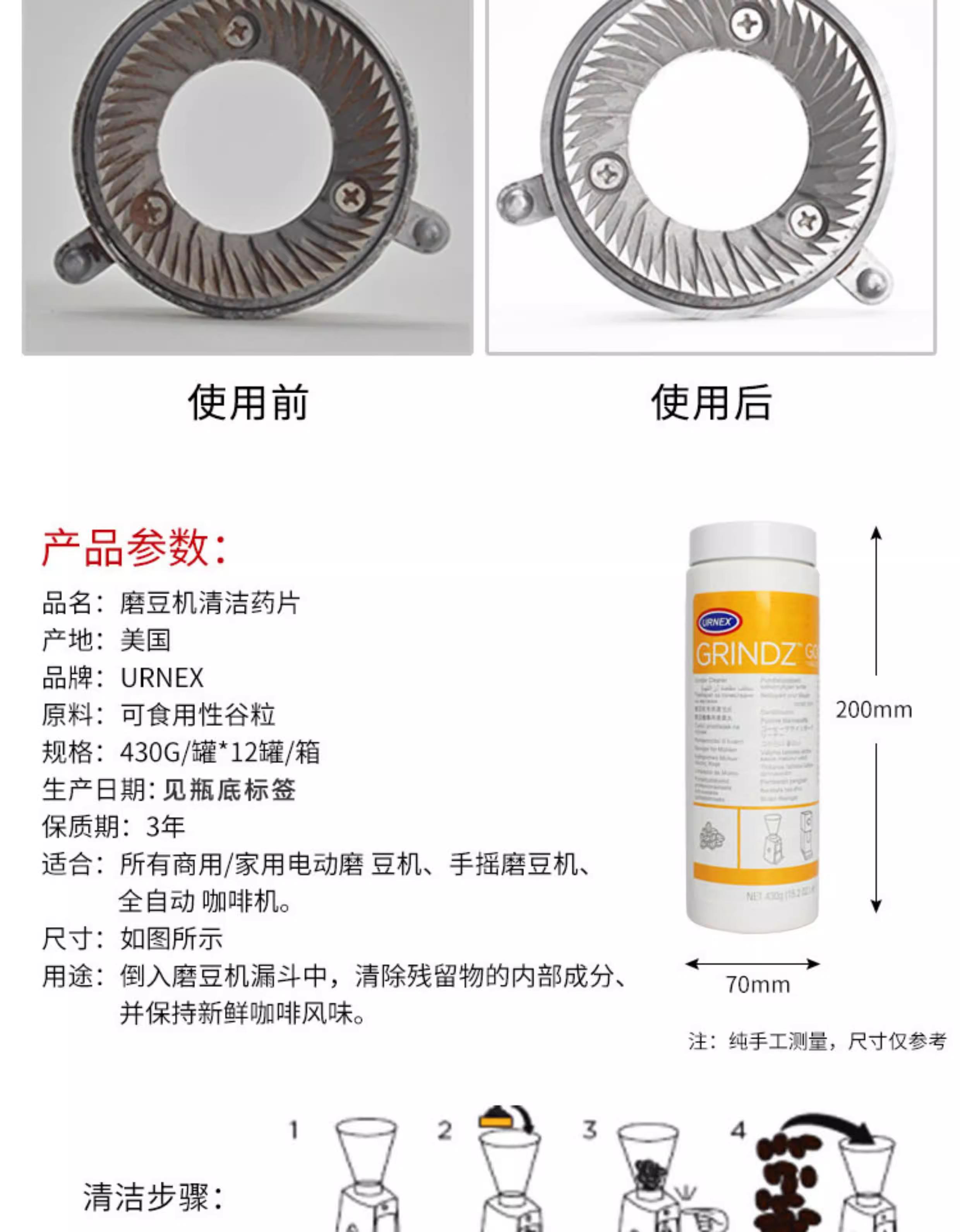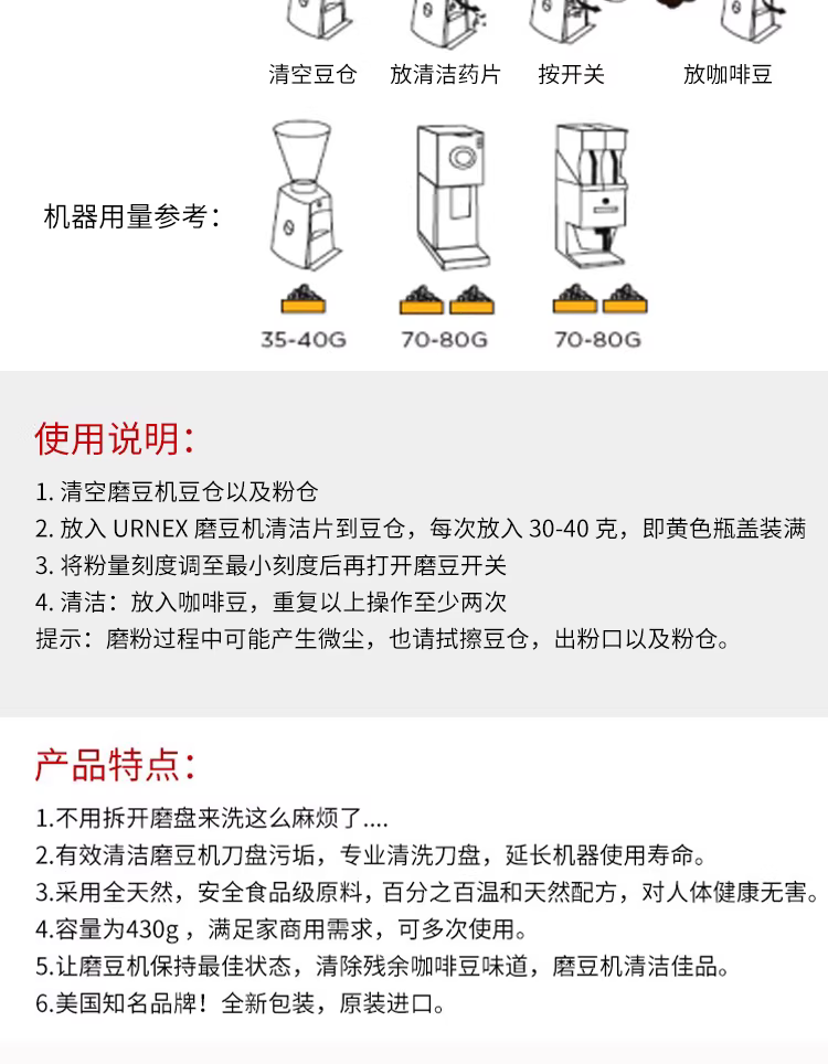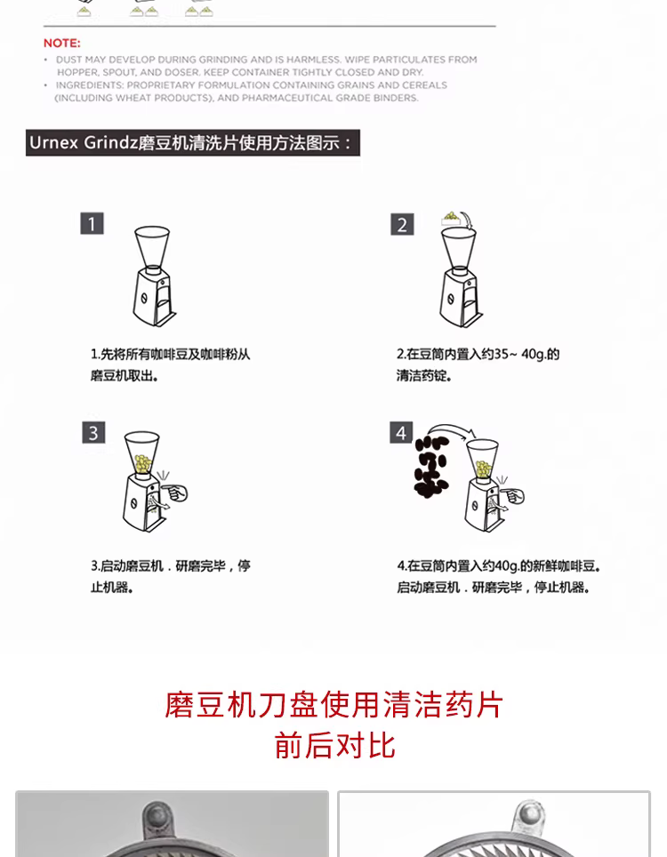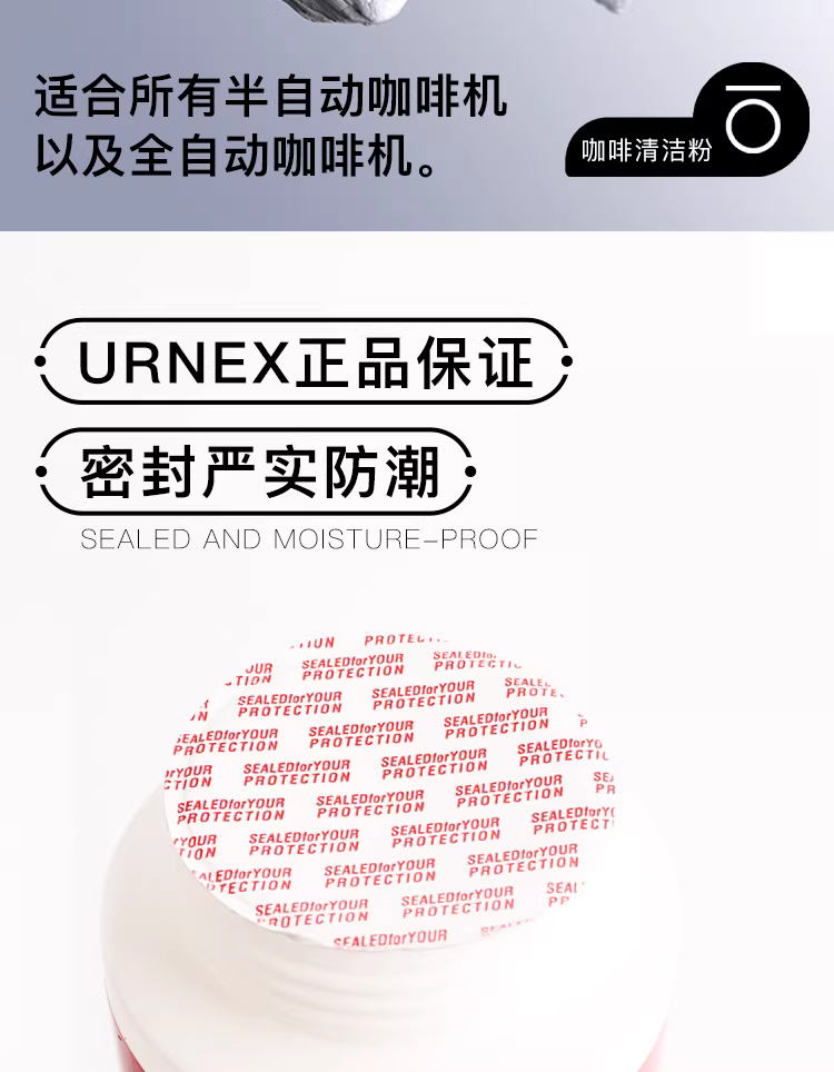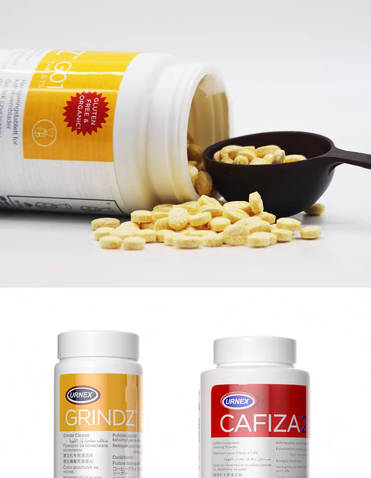 Nhập khẩu từ Hoa Kỳ, máy pha cà phê URNEX, đầu pha cà phê, bột tẩy cặn, chất tẩy rửa, máy xay cà phê, viên vệ sinh máy xay cà phê