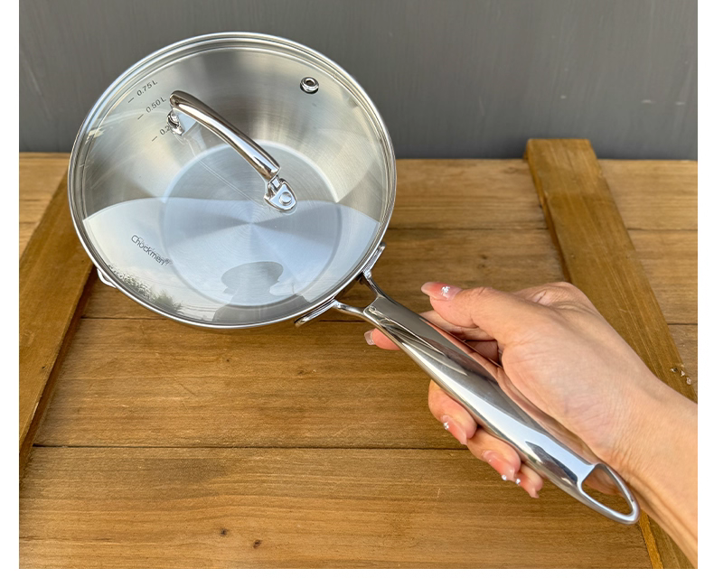 Nồi sữa bằng thép không gỉ 18/10 dành cho một người, chảo rán nhỏ một tay cầm, chảo Yukihira không tráng phủ, chảo đa năng để chiên, nấu ăn và luộc, 16cm