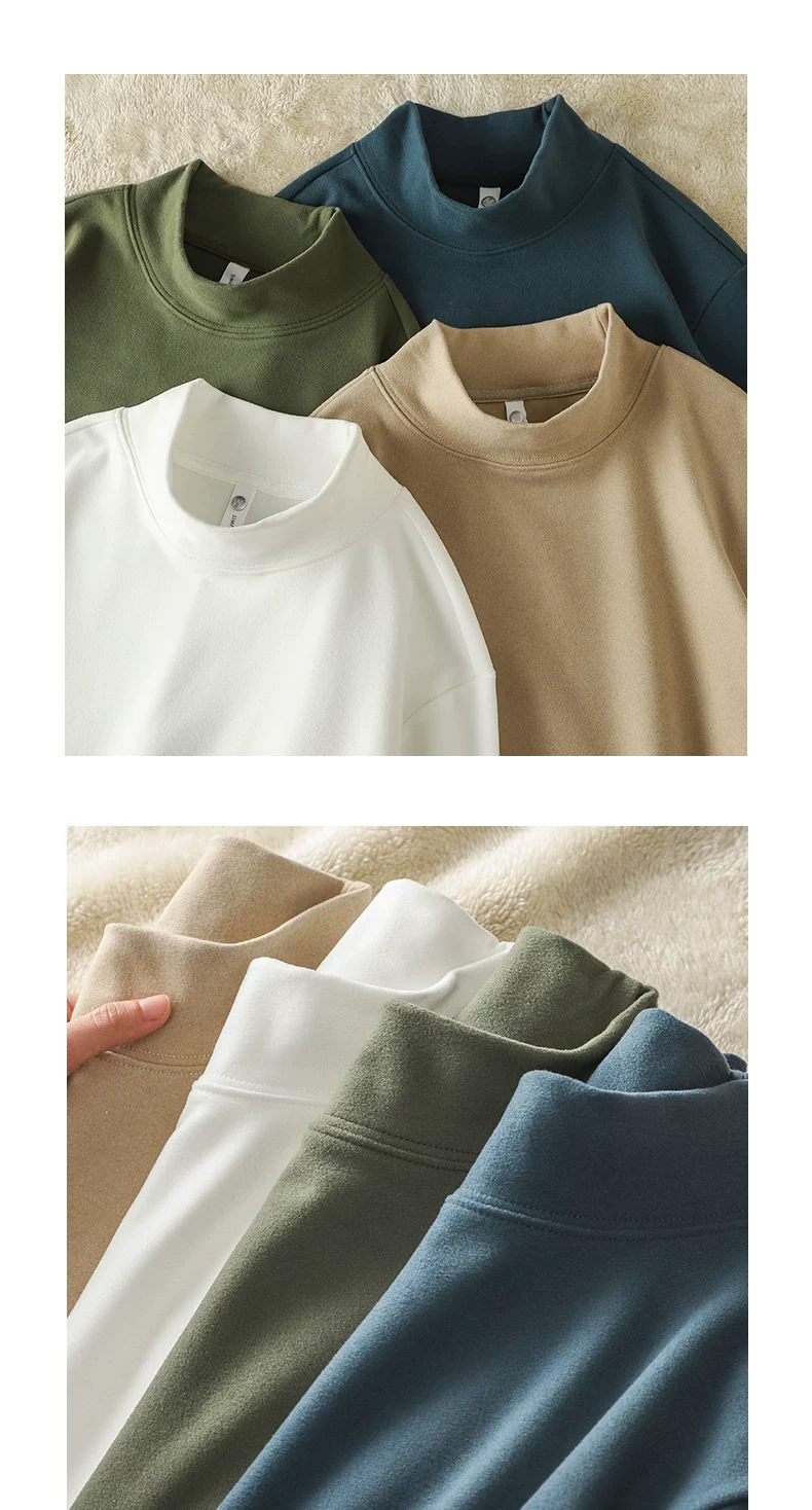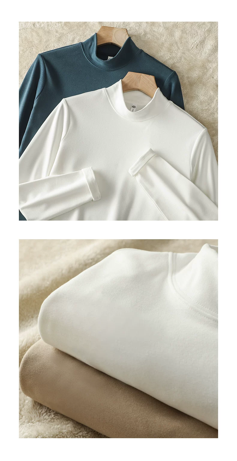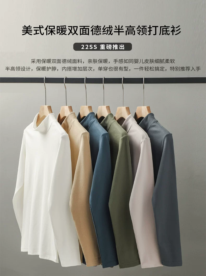 - OMZM Áo giữ nhiệt hai mặt kiểu Mỹ cổ cao nửa cổ lớp lót giữ nhiệt nam mùa đông Áo thun dày dặn lót lông cừu
