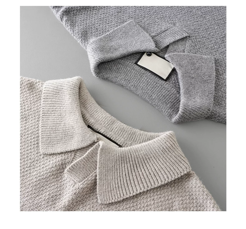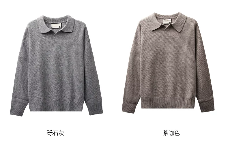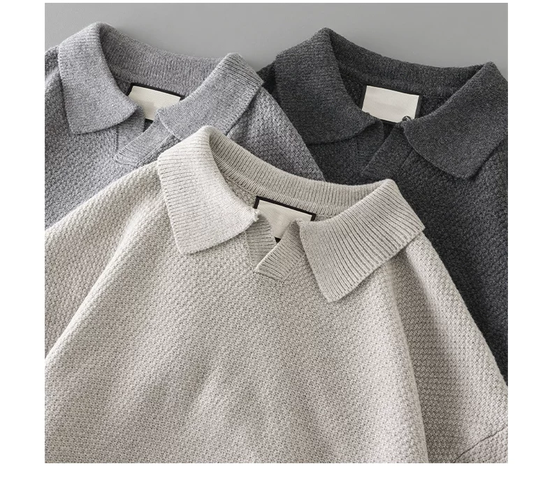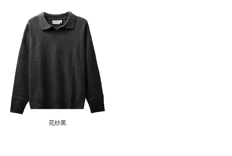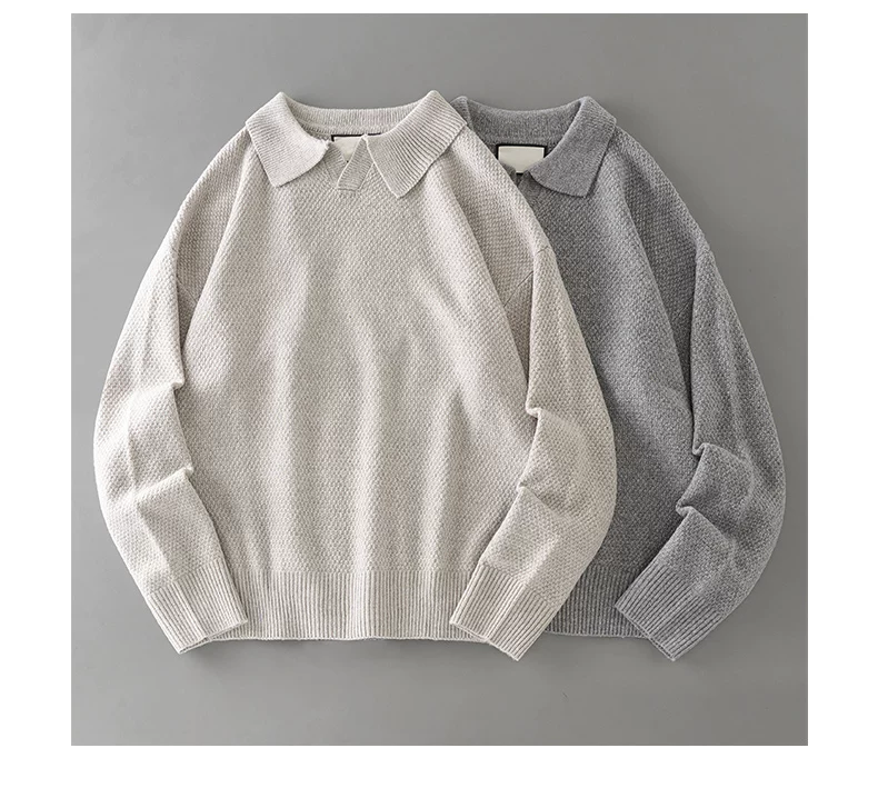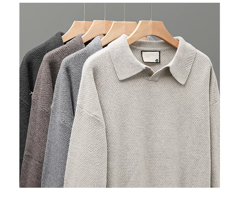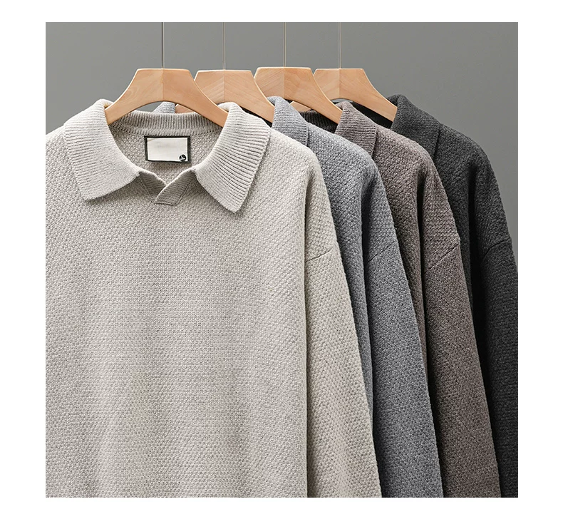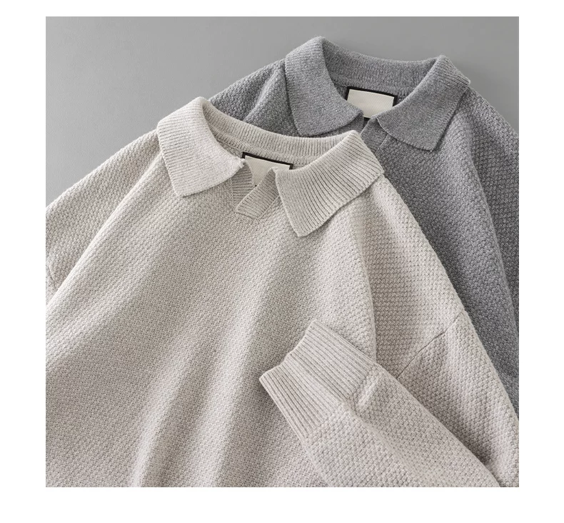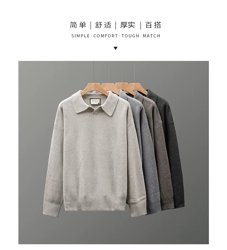 OMZM Áo len cổ POLO hạng nặng 700G phong cách Mỹ dành cho nam giới, phong cách lười biếng mùa thu, áo len dáng rộng giản dị, áo len cổ điển