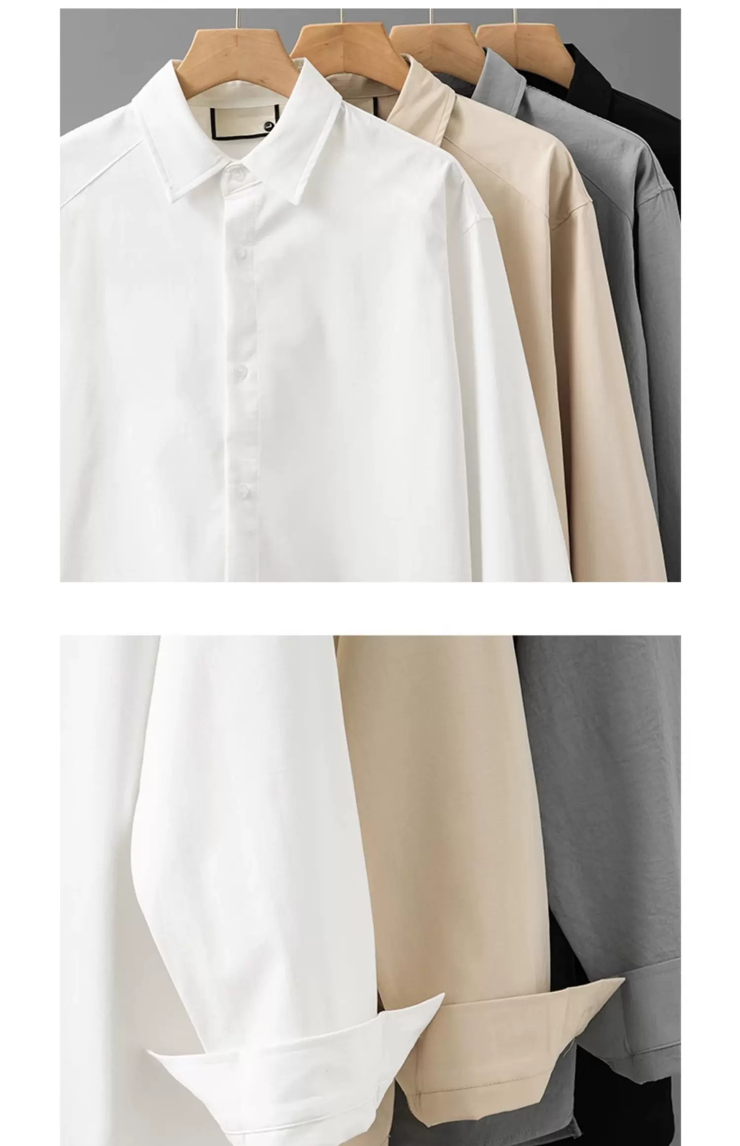 - OMZM Áo sơ mi nam không nhăn kiểu Mỹ, áo sơ mi trắng dài tay mùa xuân, áo sơ mi công sở cao cấp, áo khoác thường ngày