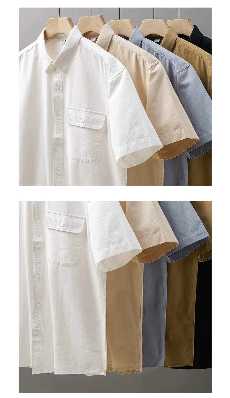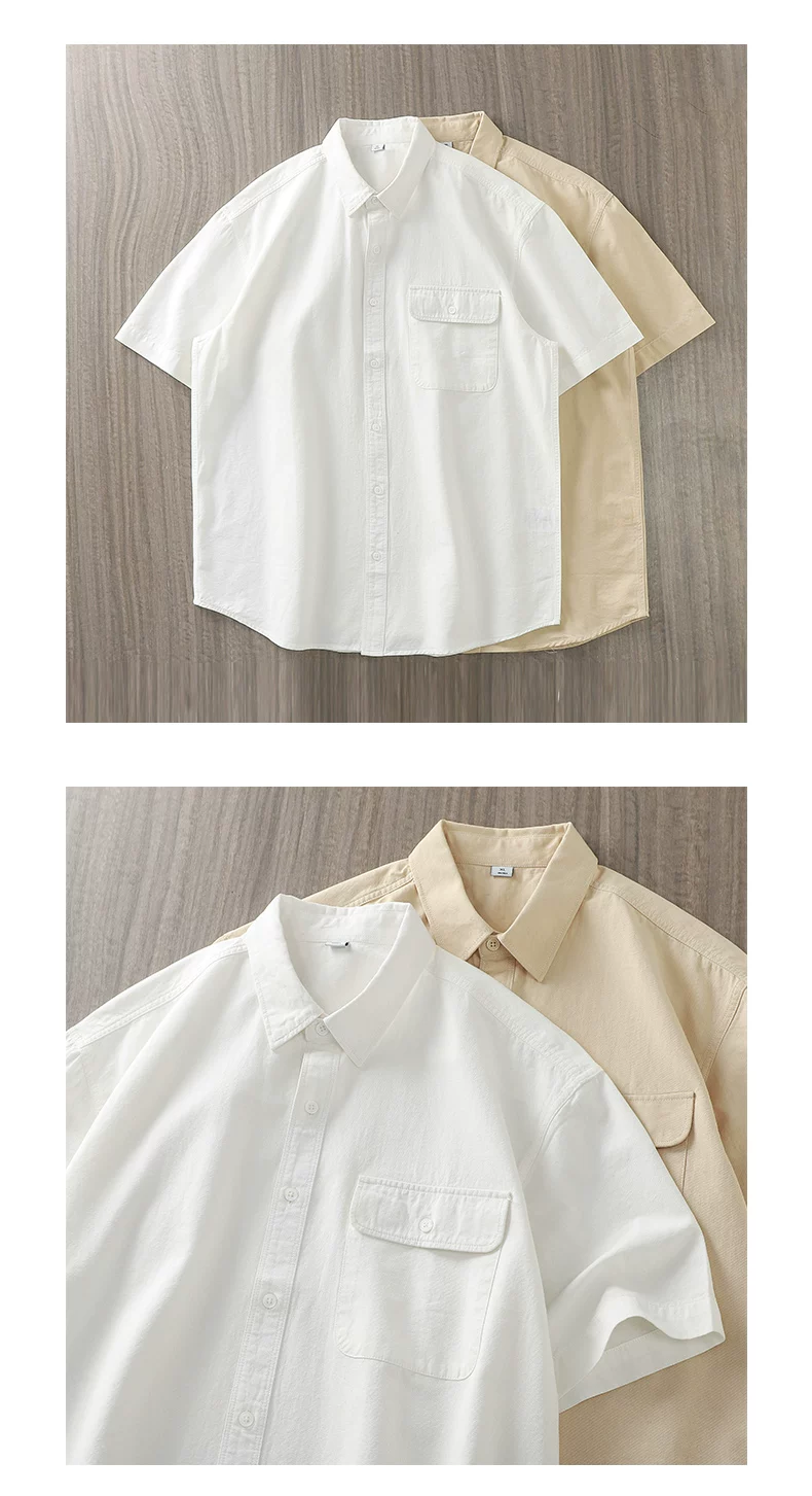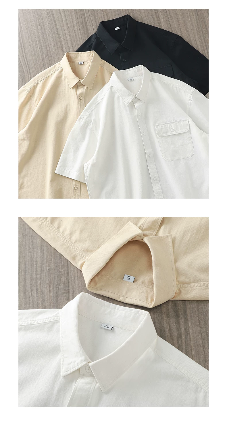 - OMZM Áo sơ mi ngắn tay bằng cotton nguyên chất hạng nặng kiểu Mỹ dành cho nam, thương hiệu hợp thời trang mùa hè, trang phục công sở cao cấp, áo sơ mi trắng giản dị kiểu Nhật