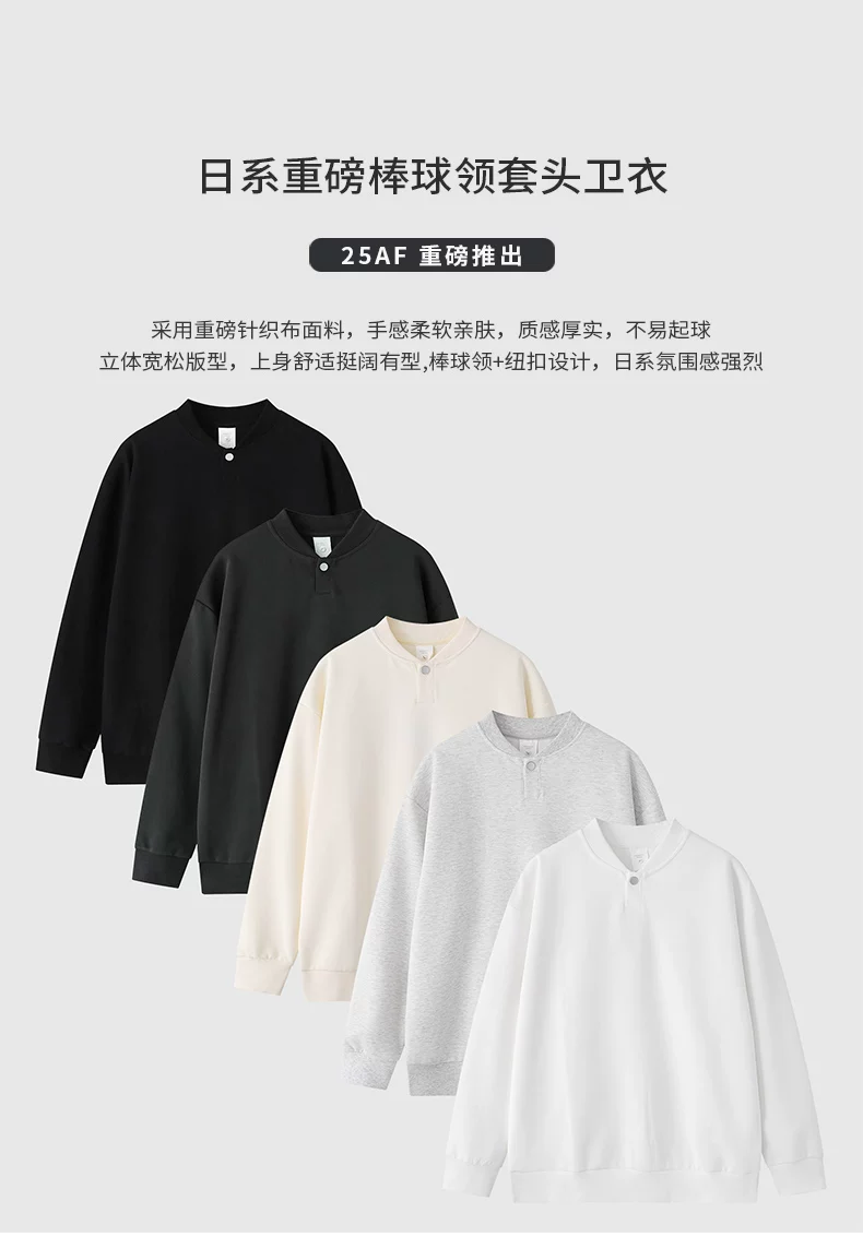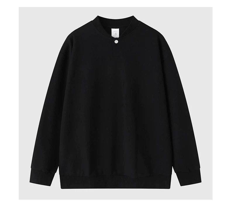 OMZM Áo thun nam tay dài cổ lọ kiểu Nhật Bản, áo thun nam dài tay màu trơn có thiết kế cài nút ở cổ áo
