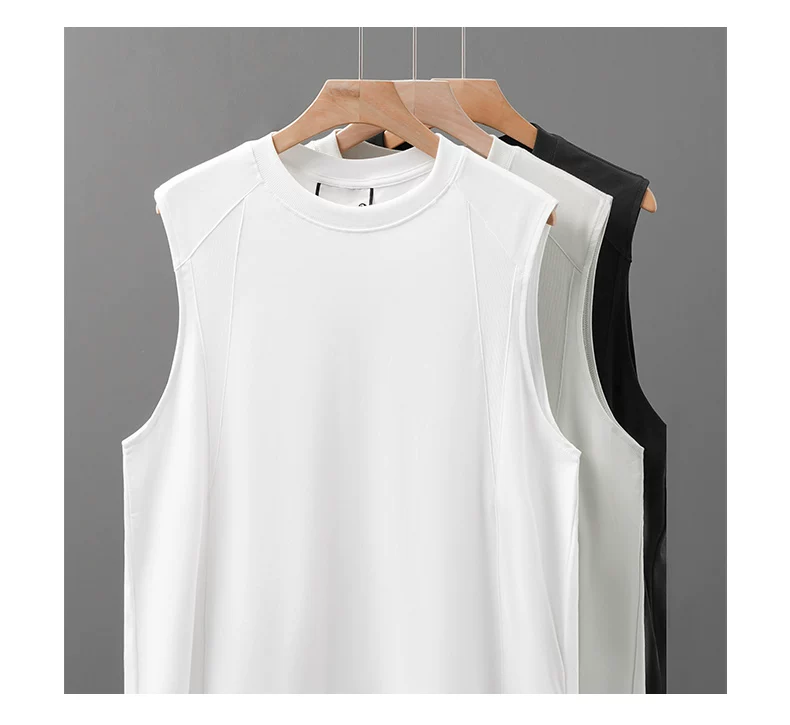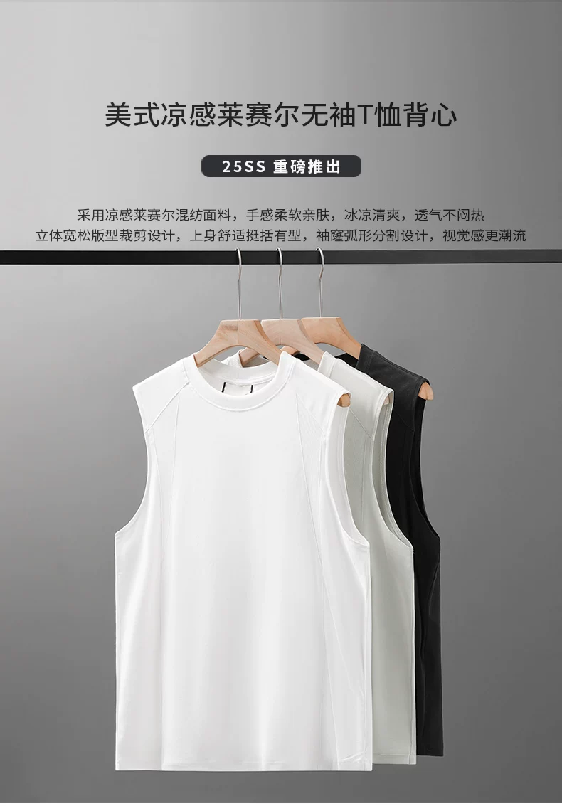 OMZM Áo vest mát mẻ Lyocell dành cho nam mùa hè Phong cách Mỹ Ice Silk Nhanh khô Áo thể thao không tay Áo lót thể thao màu trơn Áo thun không tay