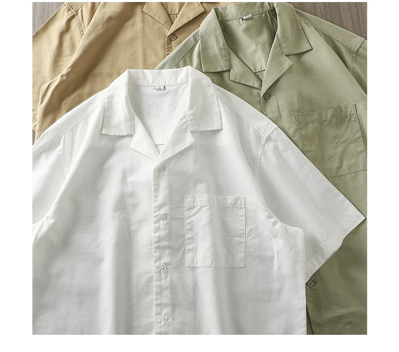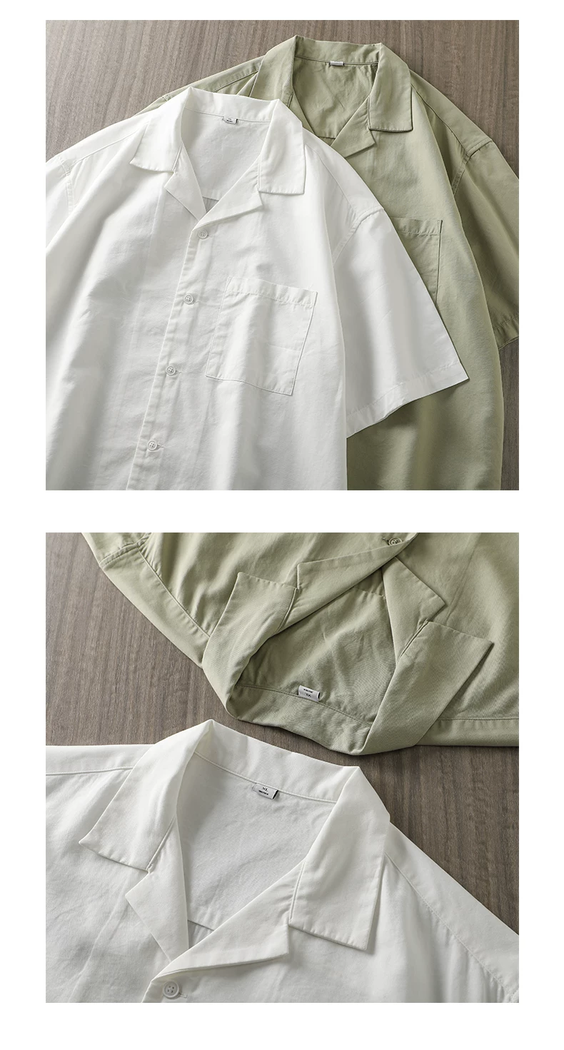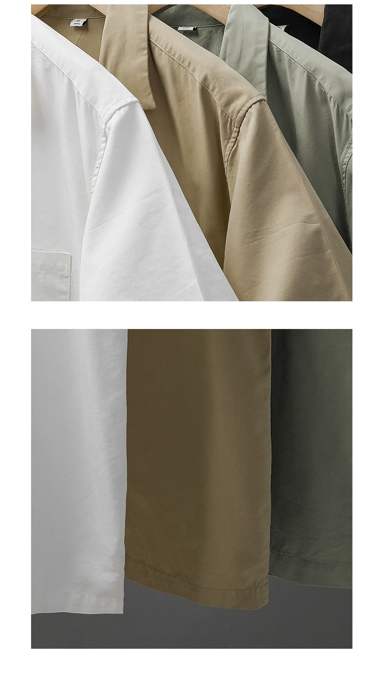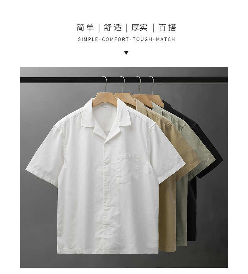 OMZM Celar Tencel Áo sơ mi ngắn tay cổ Cuba dành cho nam và nữ, áo khoác sơ mi trắng không cần ủi chống nhăn mùa hè