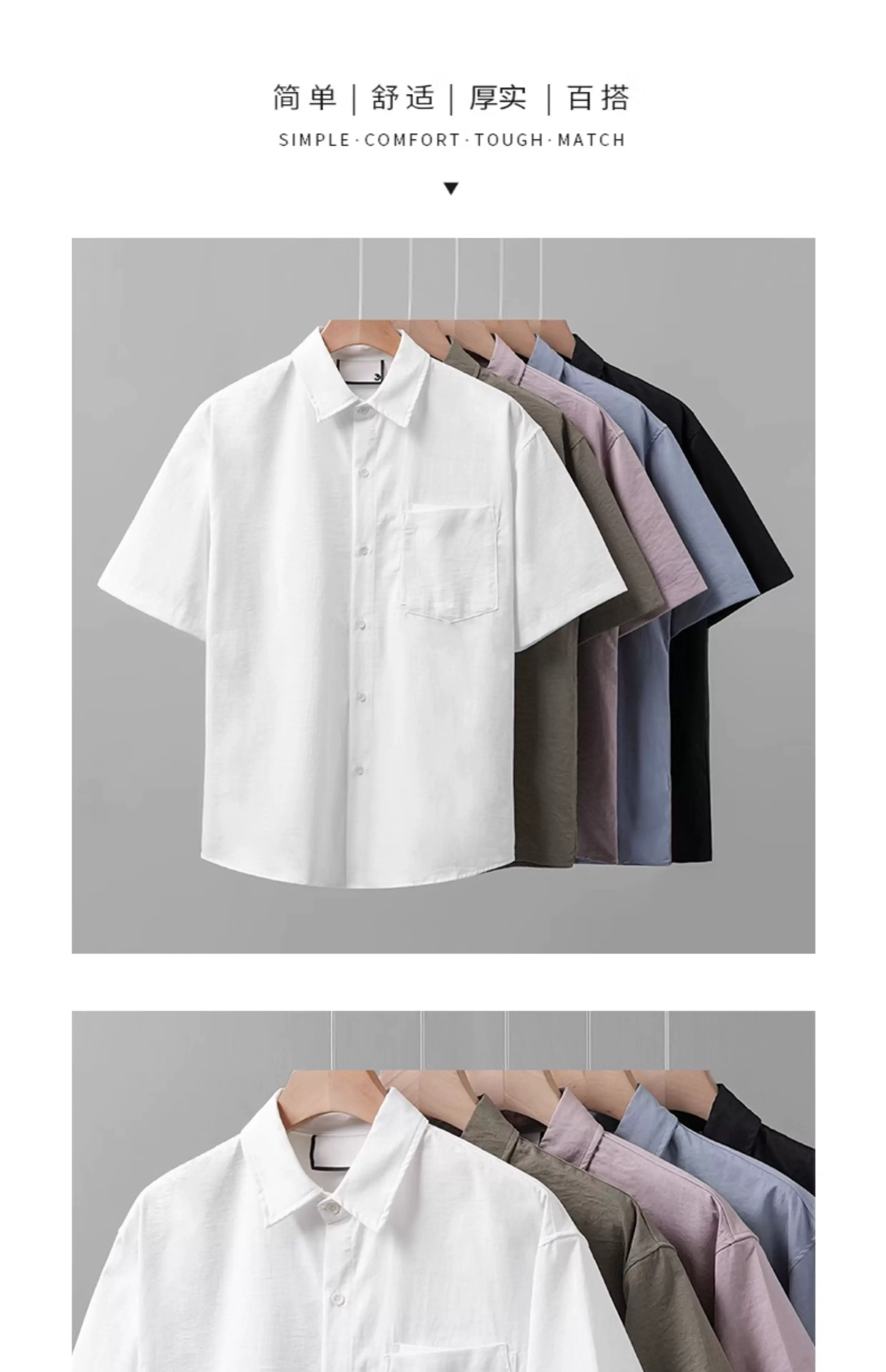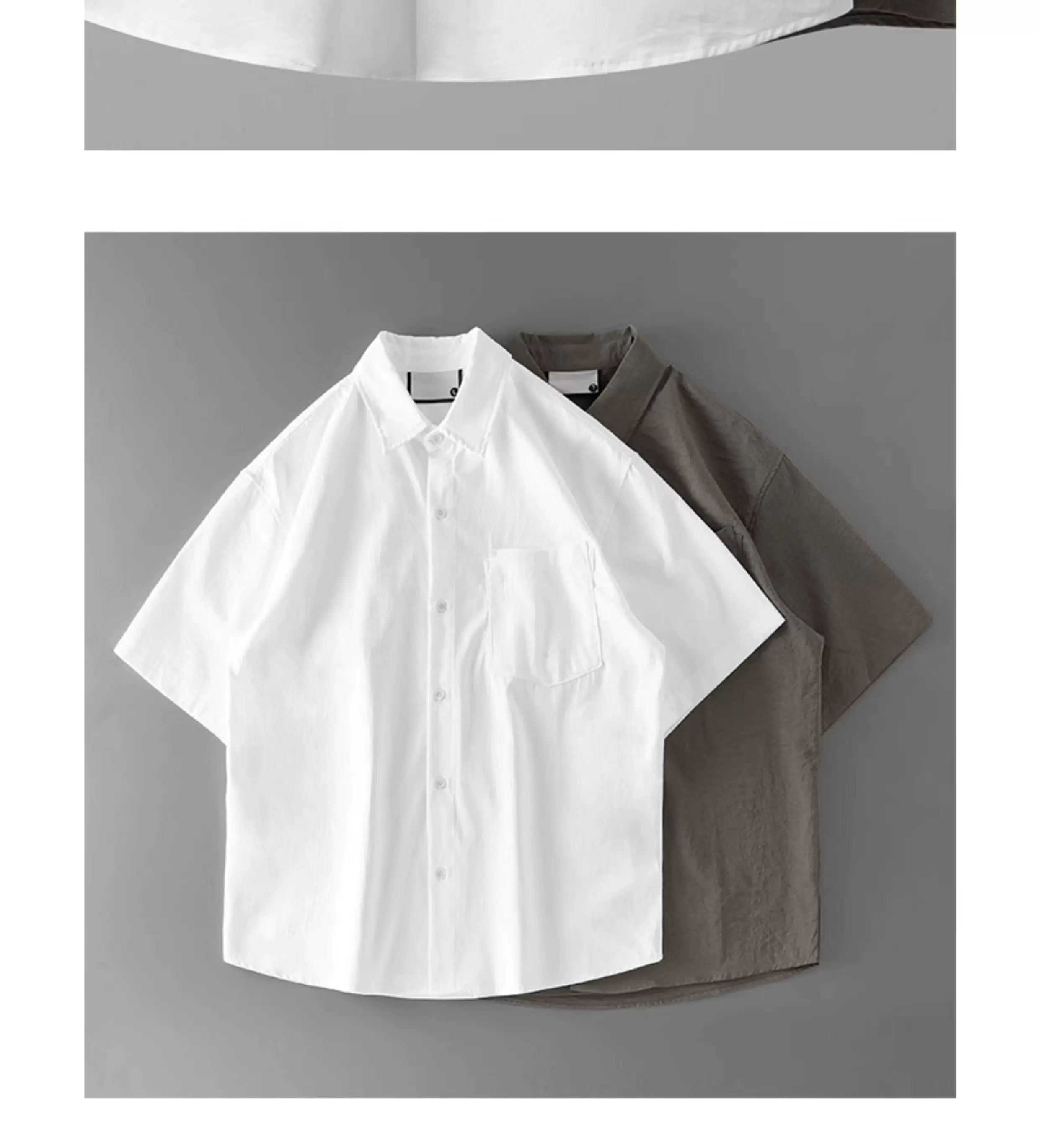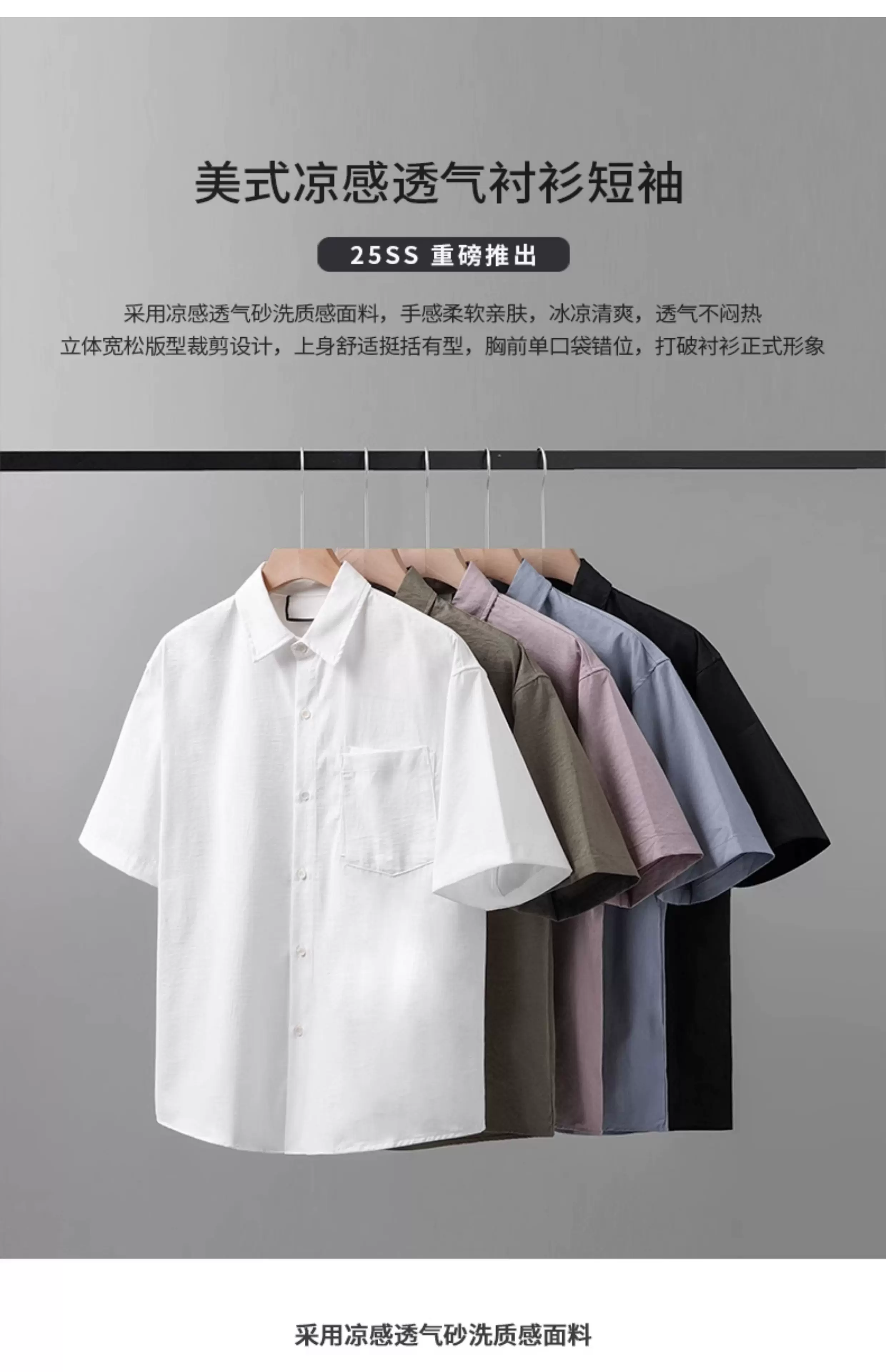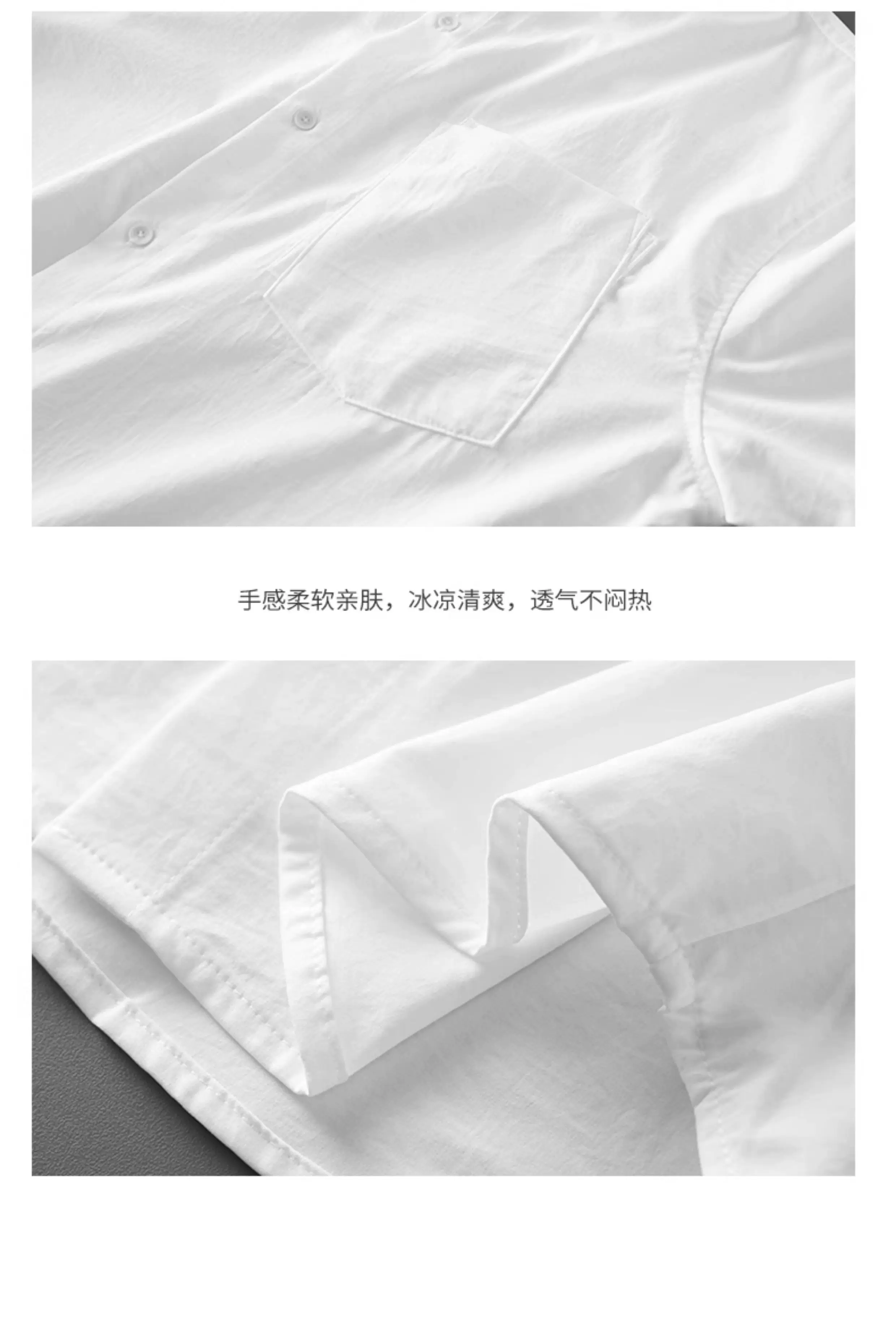 - OMZM lụa băng mát mẻ áo sơ mi ngắn tay nam mùa hè nhẹ nhanh khô áo sơ mi Mỹ quần áo bảo hộ lao động áo sơ mi trắng giản dị