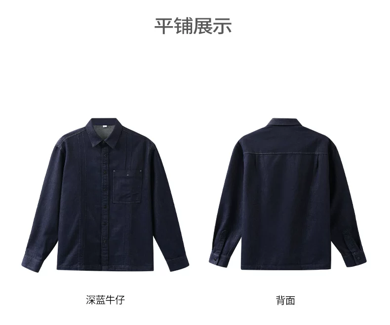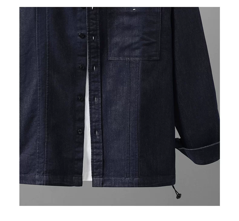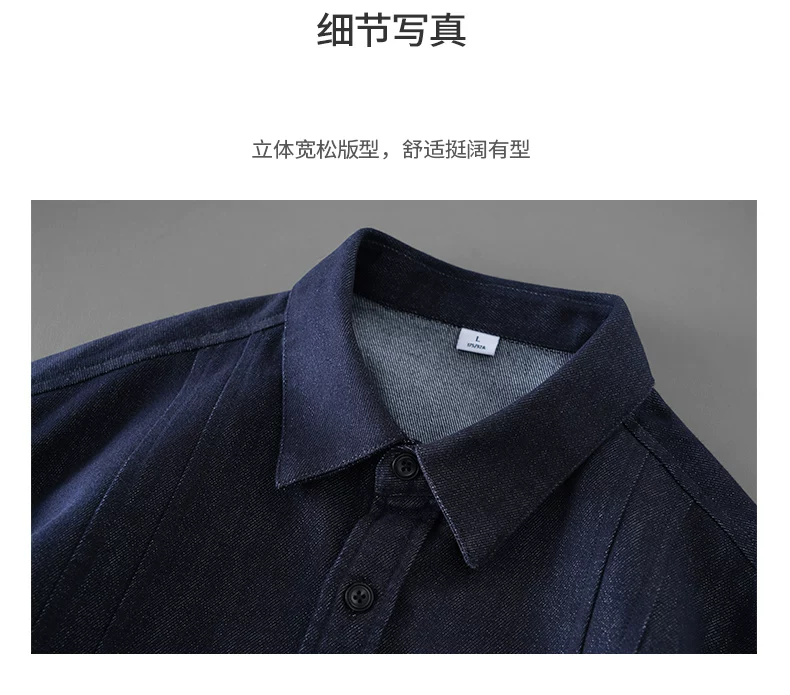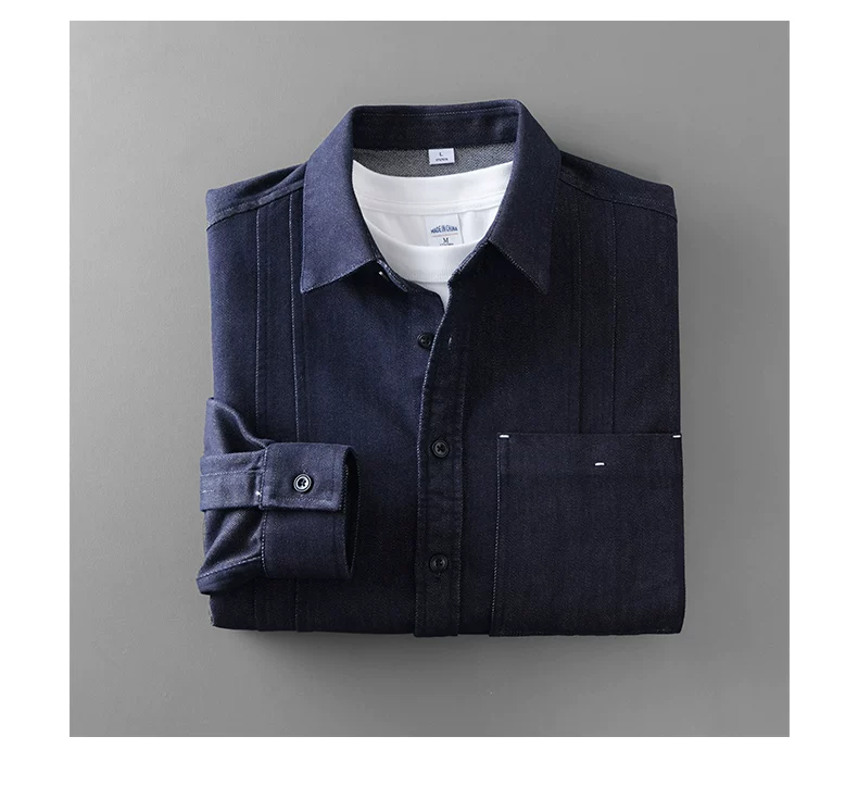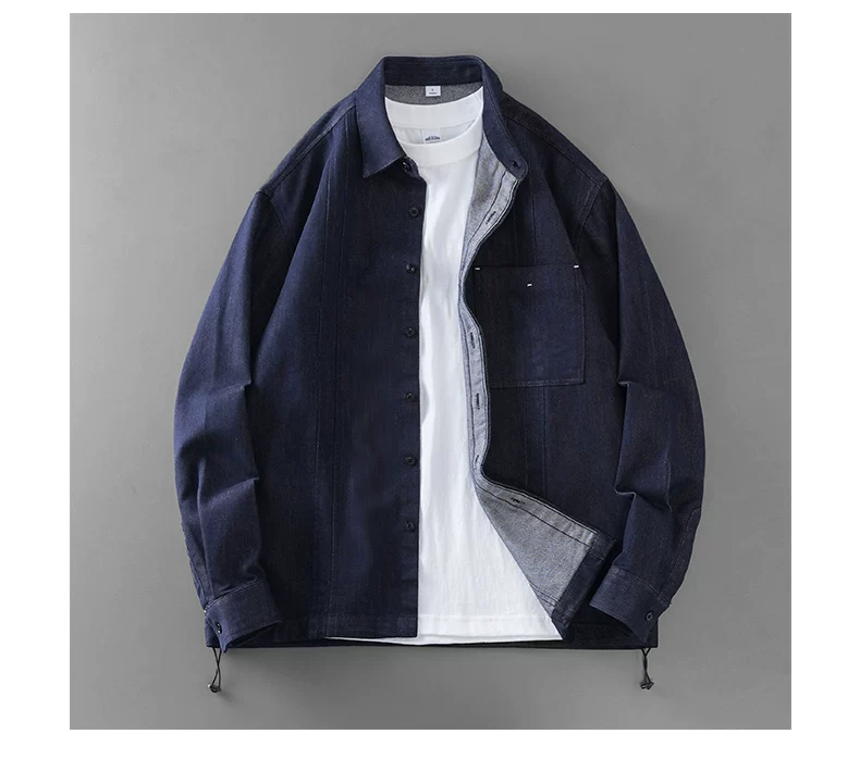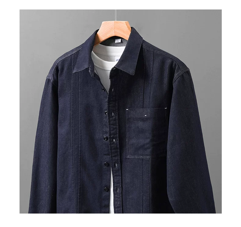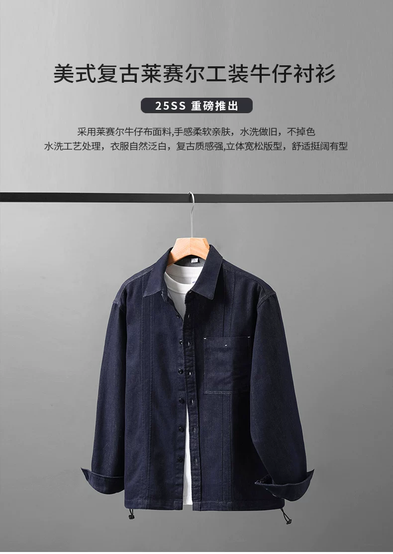 - OMZM Lyocell Áo sơ mi denim nam dài tay mùa thu Mỹ retro đau khổ áo sơ mi có cổ áo khoác bảo hộ lao động dáng rộng