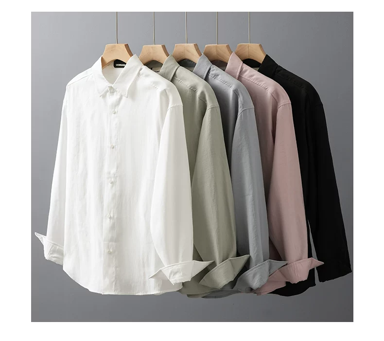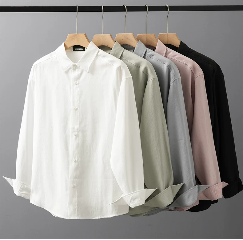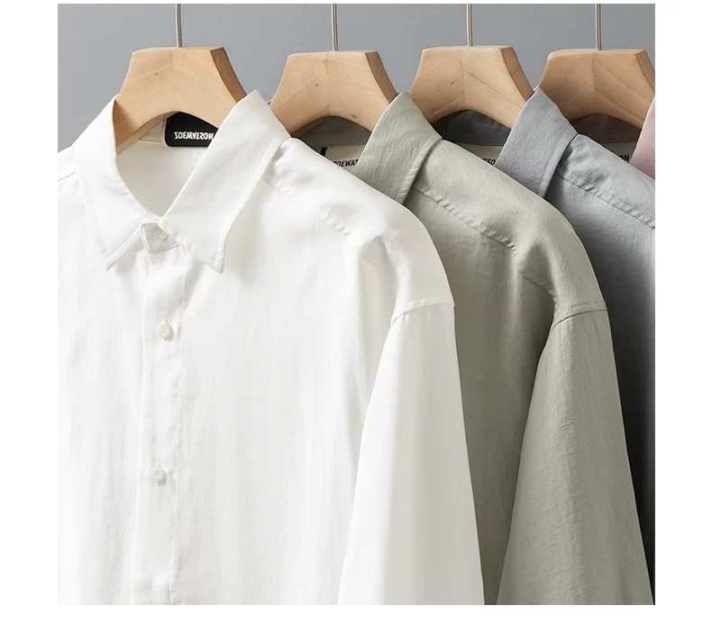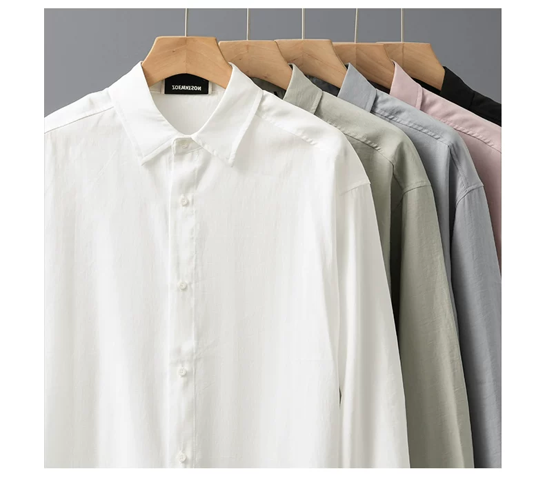 - OMZM Lyocell Tencel áo sơ mi nam dài tay mùa xuân thu cao cấp áo sơ mi trắng chống nhăn áo khoác thường ngày