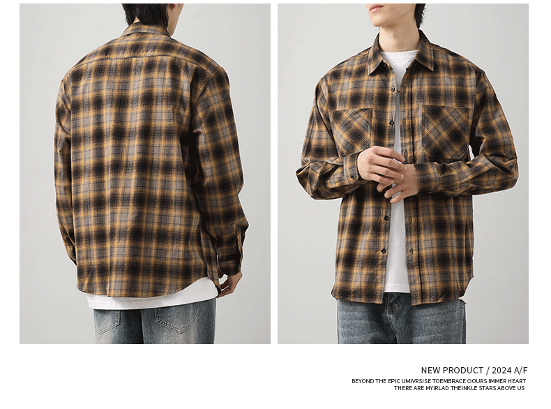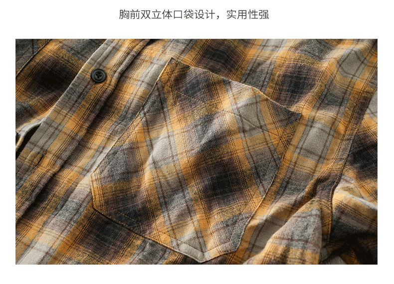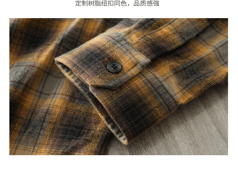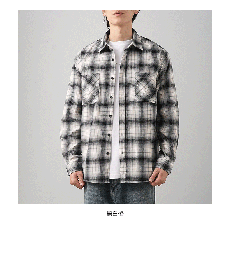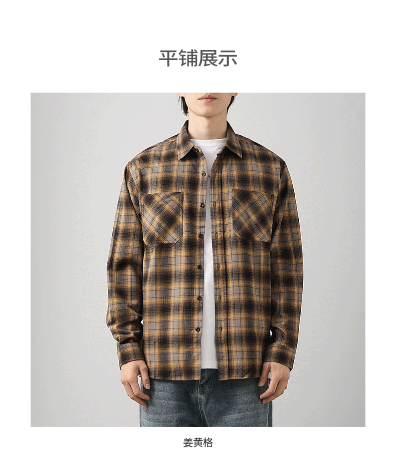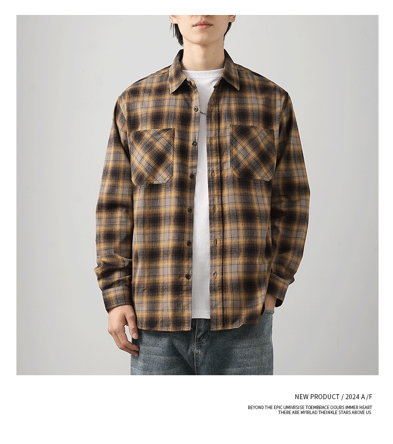 - OMZM Mỹ áo sơ mi nỉ dày dặn nam dài tay mùa thu áo sơ mi kẻ sọc cổ điển dáng rộng áo khoác bảo hộ lao động thông thường