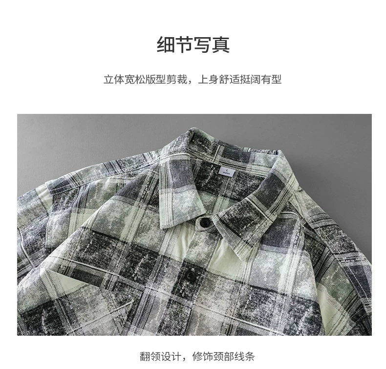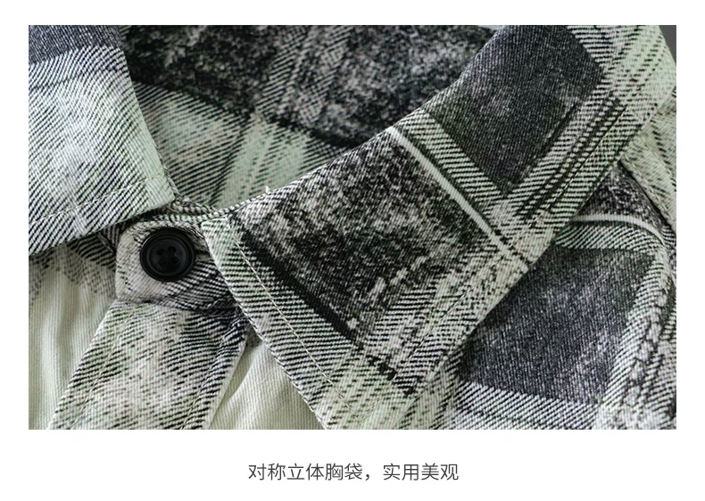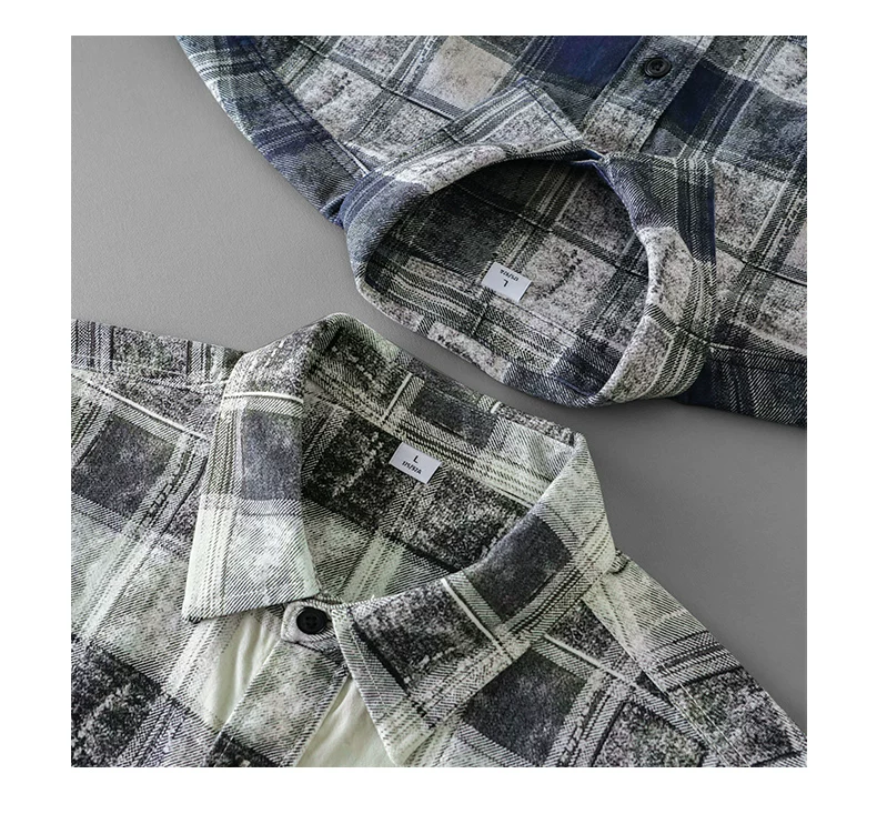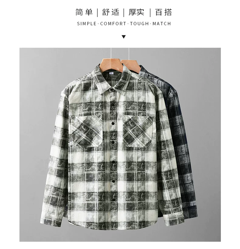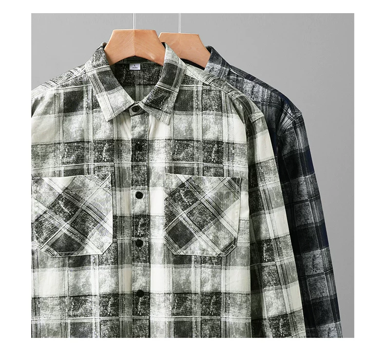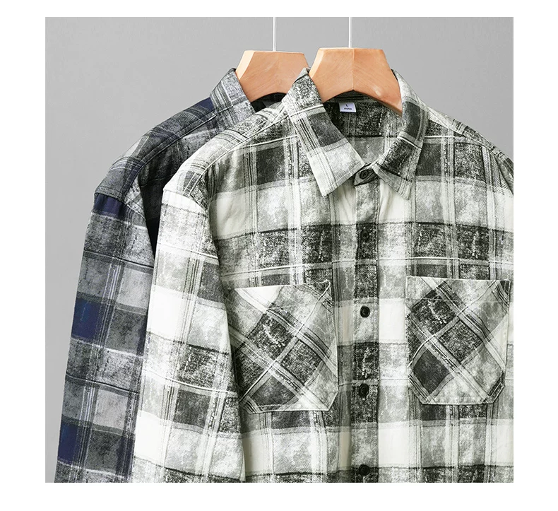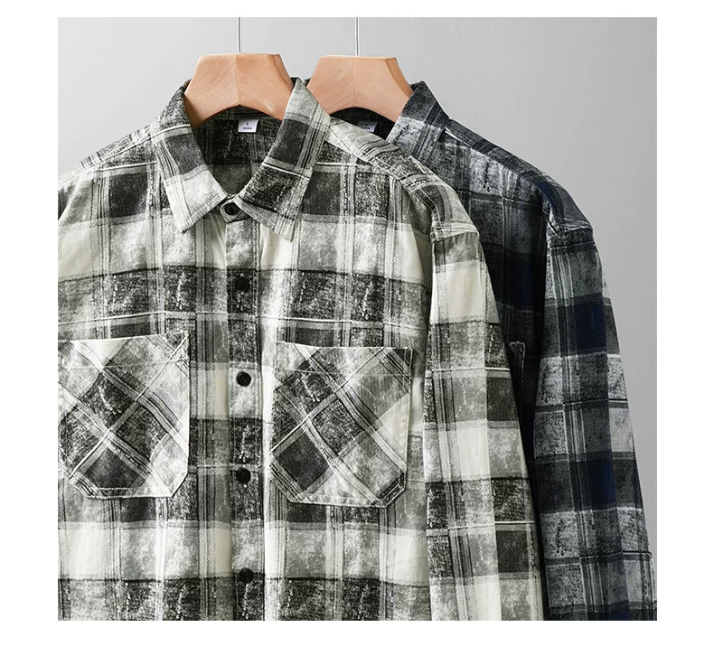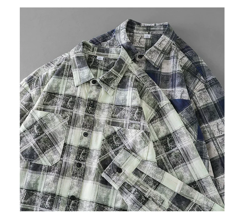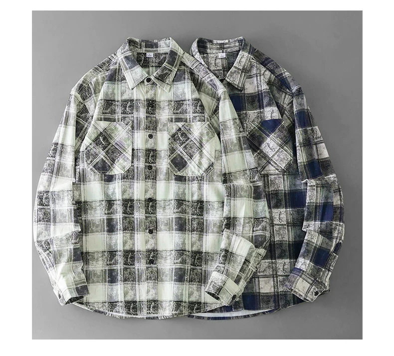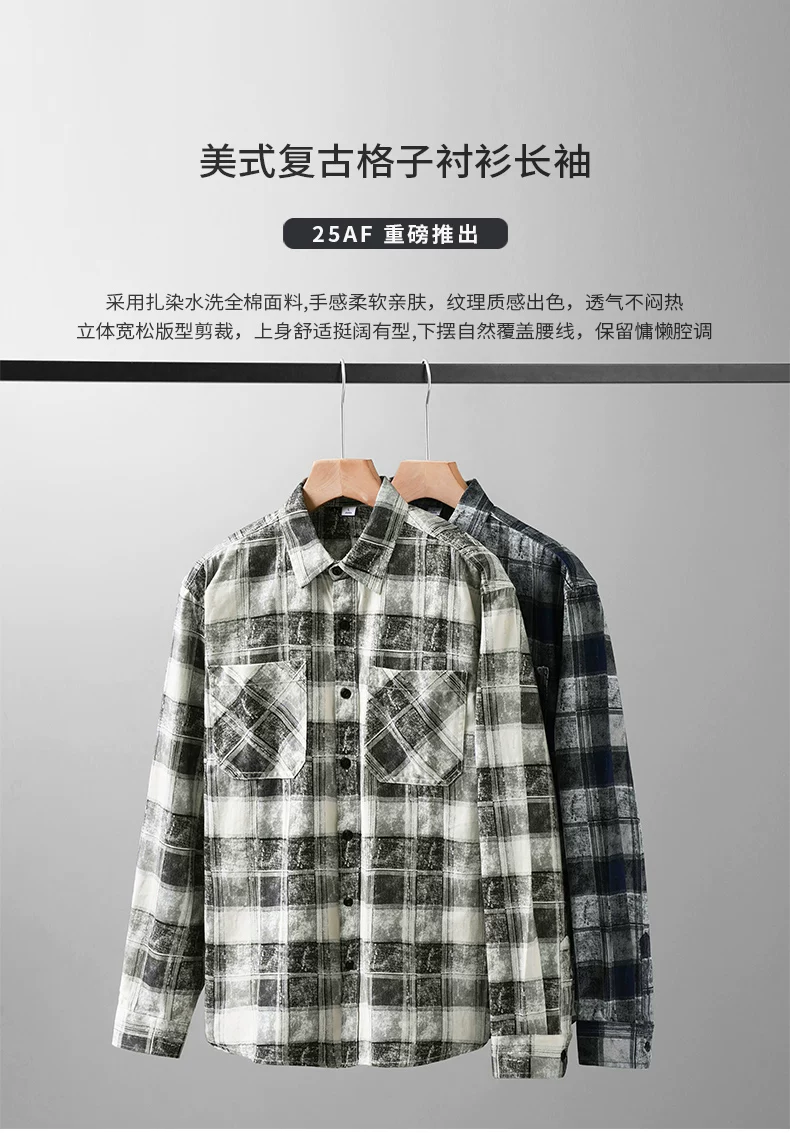 - OMZM nguyên chất cotton kẻ sọc áo sơ mi nam mùa thu Mỹ retro dài tay nhuộm màu dáng rộng ve áo mỏng cao cấp áo khoác